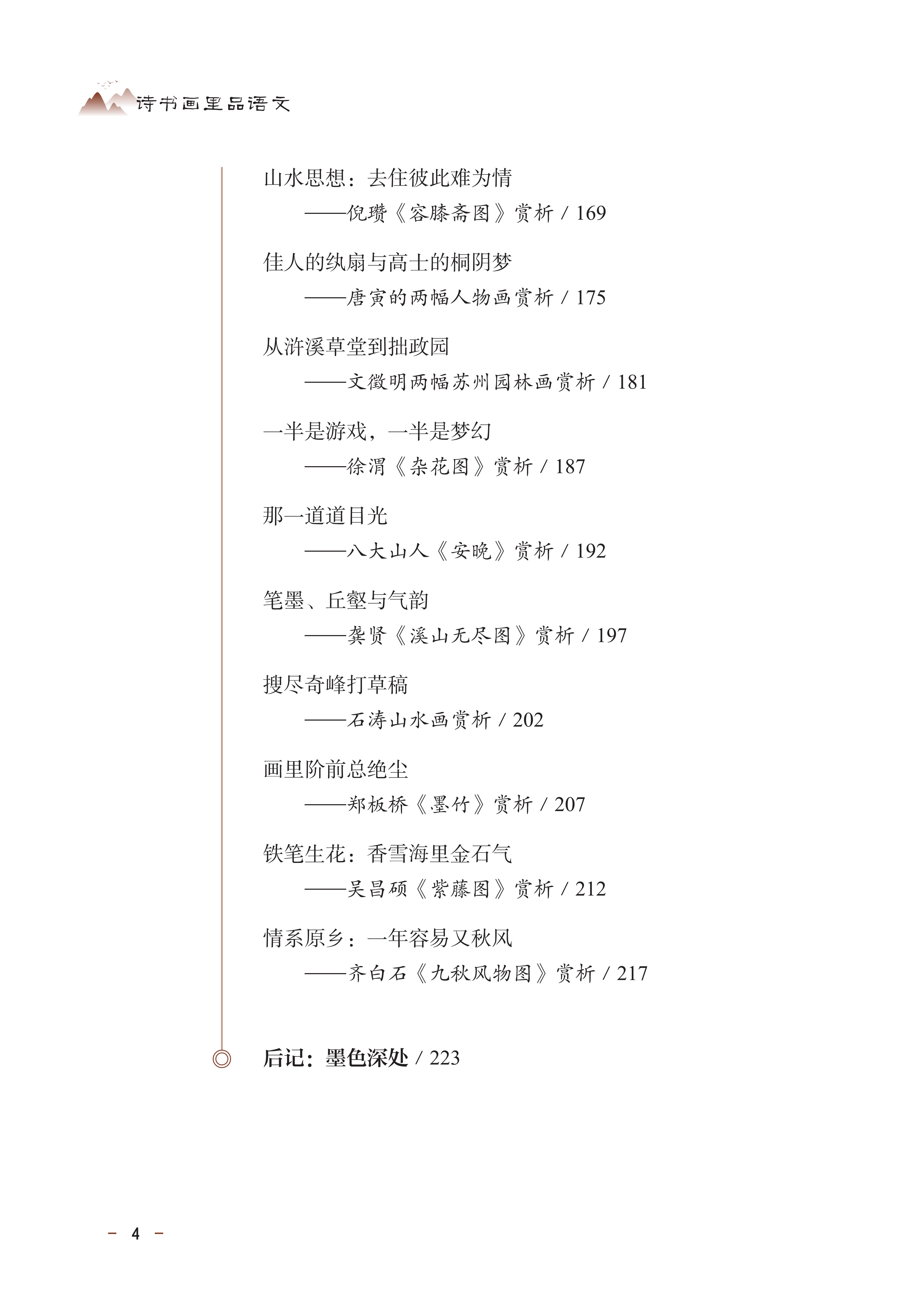 这是一本介绍中国文学艺术的散文集。书里,不仅有诗书画常识,也有艺术鉴赏的真知灼见。本书按照“诗话”“书道”“画语”三章编排,揭示语言之美和艺术之美。