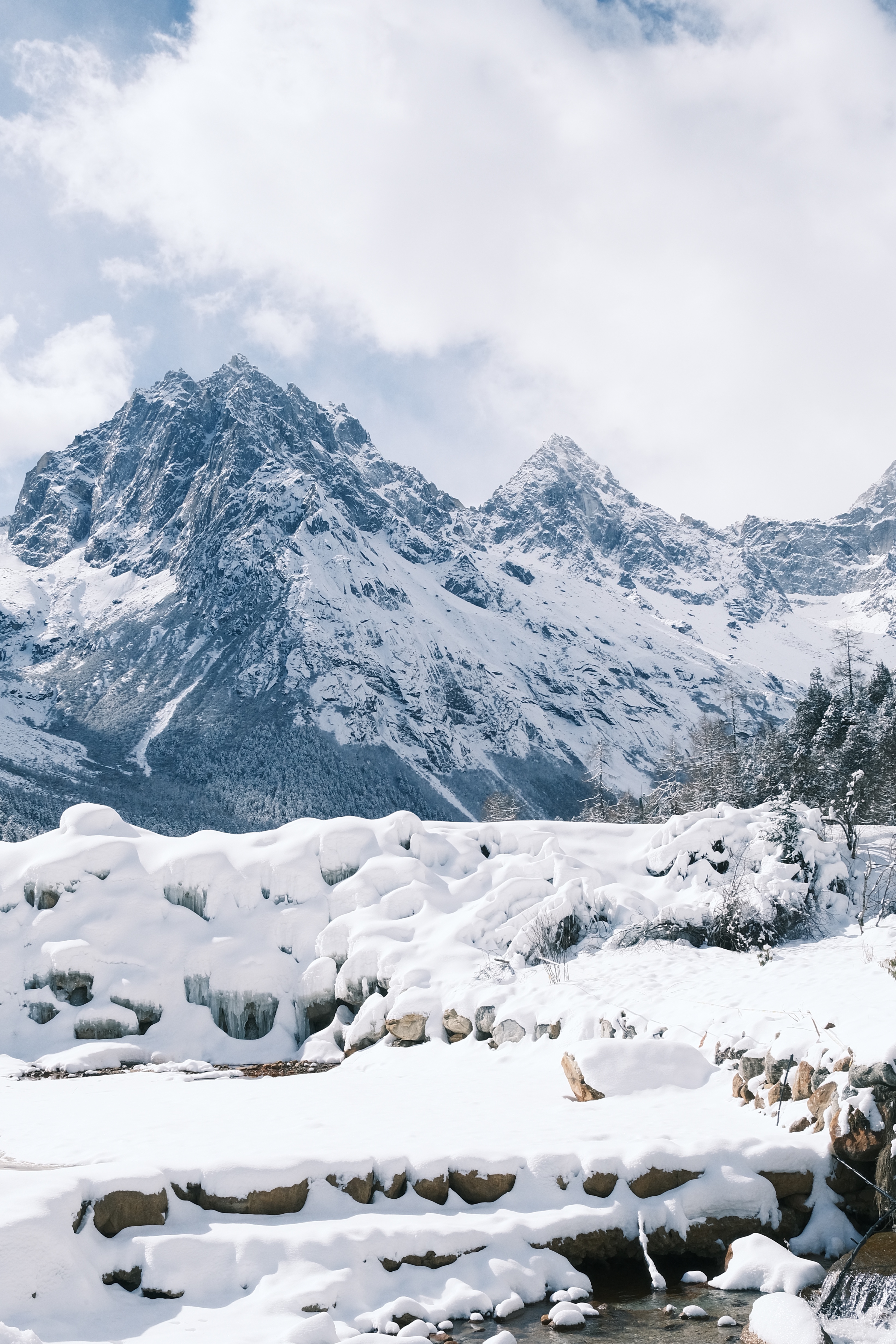 这里拥有金字塔般的雪山群,终年积雪的山峰在阳光下熠熠生辉;翡翠般的高山海子如龙王海、磐羊湖,倒映着雪山森林,宛若仙境;先到达龙王海,湖面上结了层薄冰,冰下的水还泛着翡翠色,岸边的树把影子印在冰上,像幅没干的水墨画。
