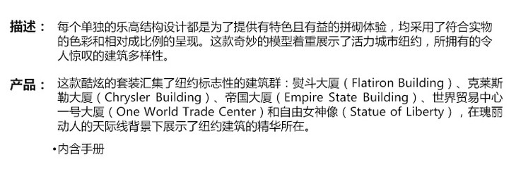 乐高 LEGO 纽约 LEGC21028 Architecture 适用年龄10Y-14Y 拼插积木益智玩具