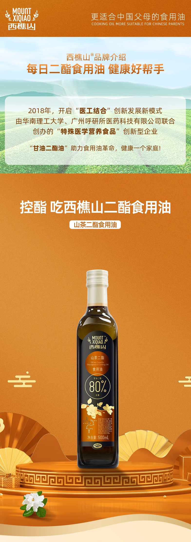 【月满家和】西樵山山茶二酯食用油 500ml/瓶 (二脂油含量80%)(包邮直发)(ZB)
