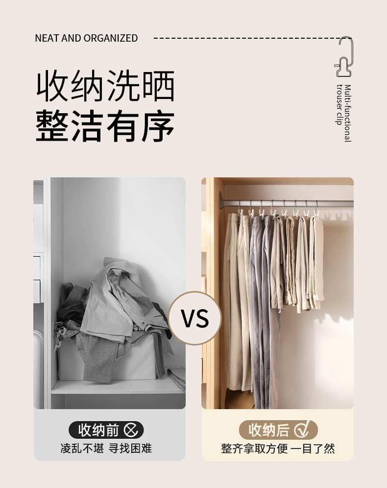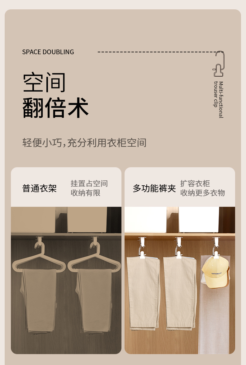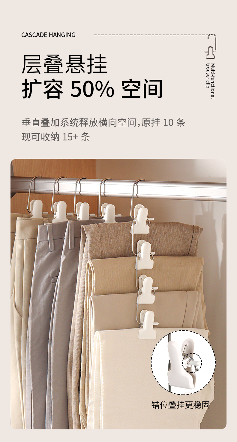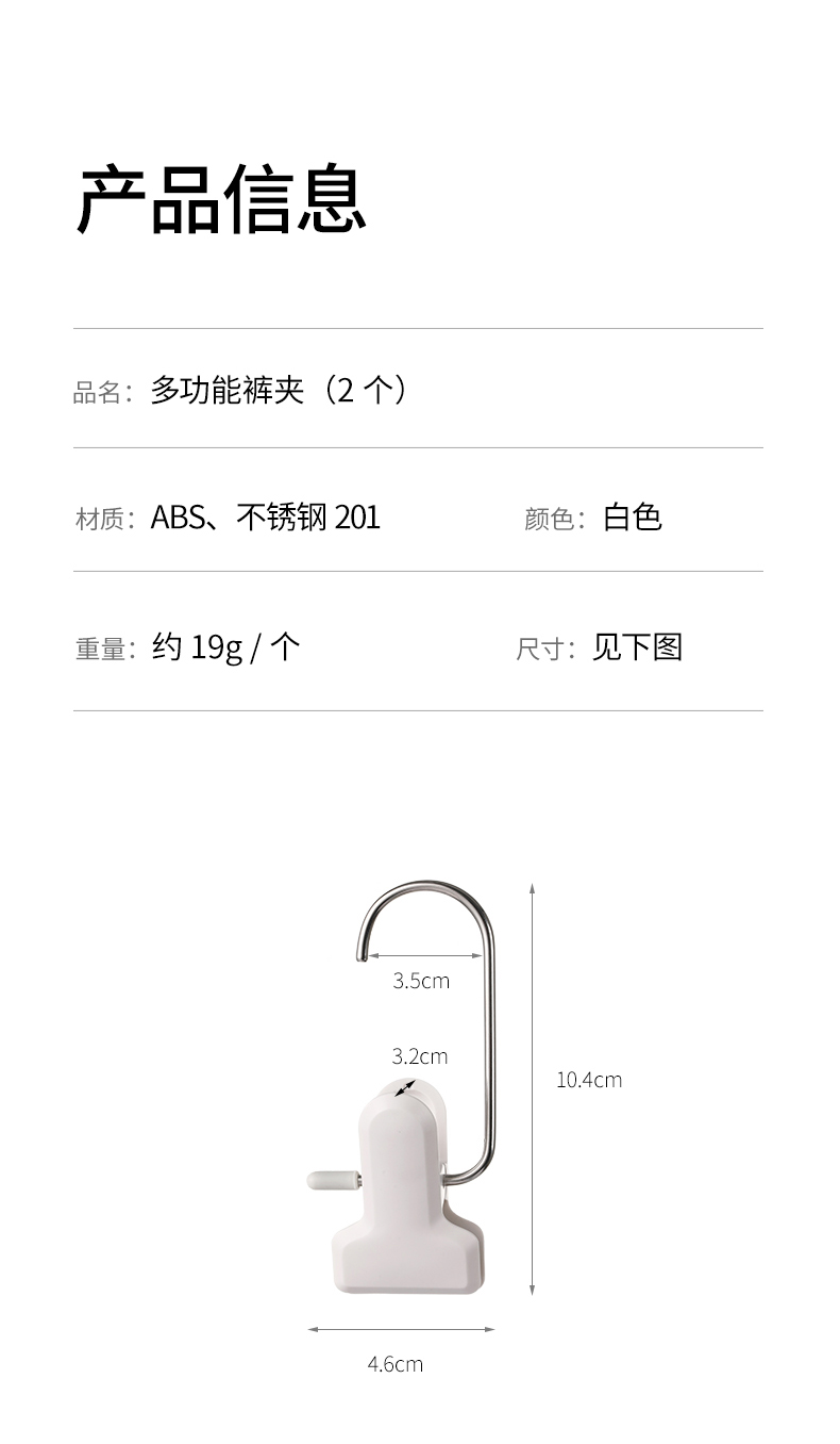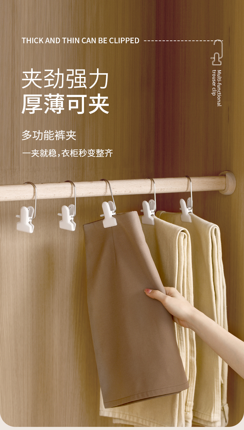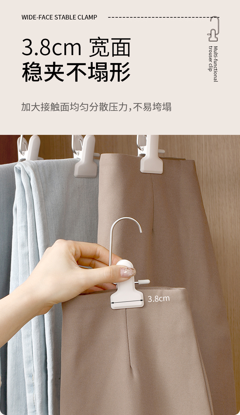 FaSoLa多功能带挂钩夹子家用无痕裤架不锈钢裤子晾晒夹便携裤夹