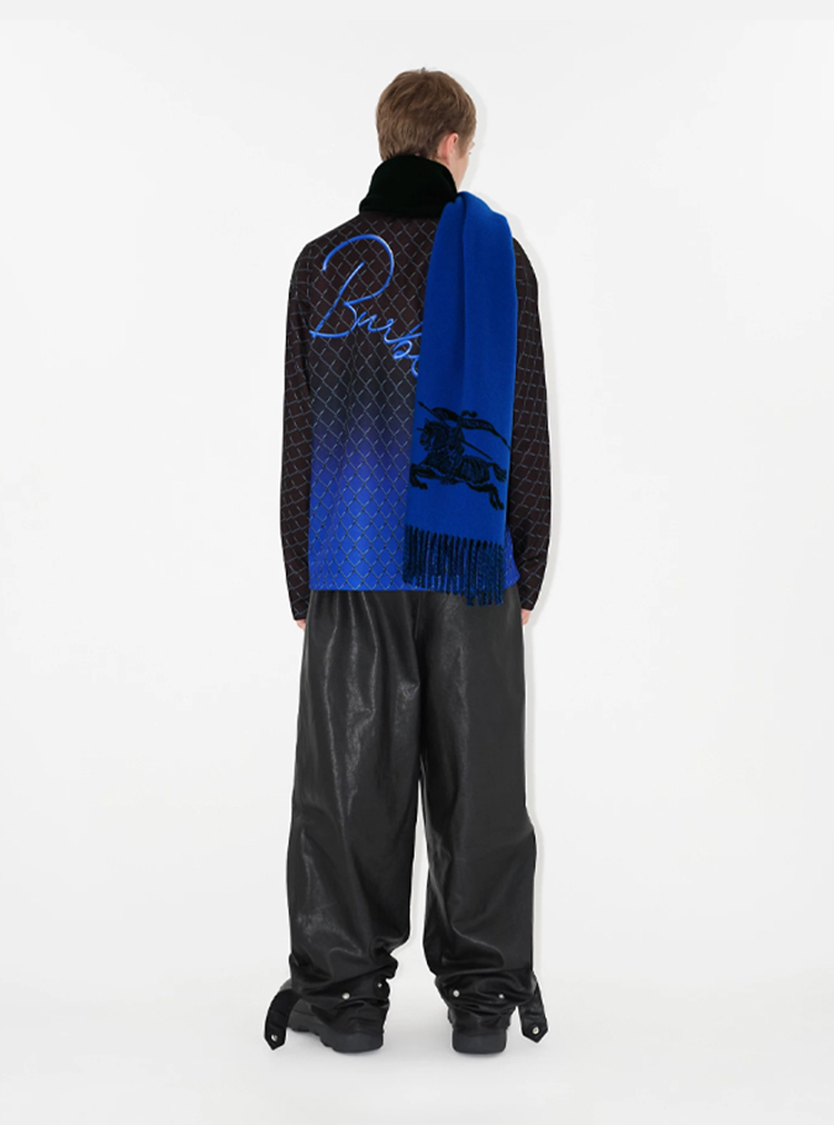 BURBERRY 巴宝莉 男女通用双面两用马术骑士徽标羊绒围巾 蓝色 8078785 B7320