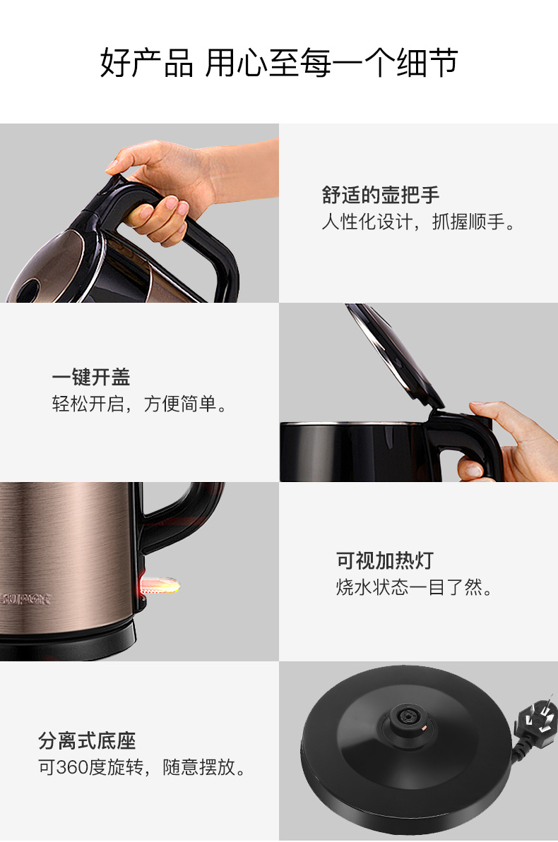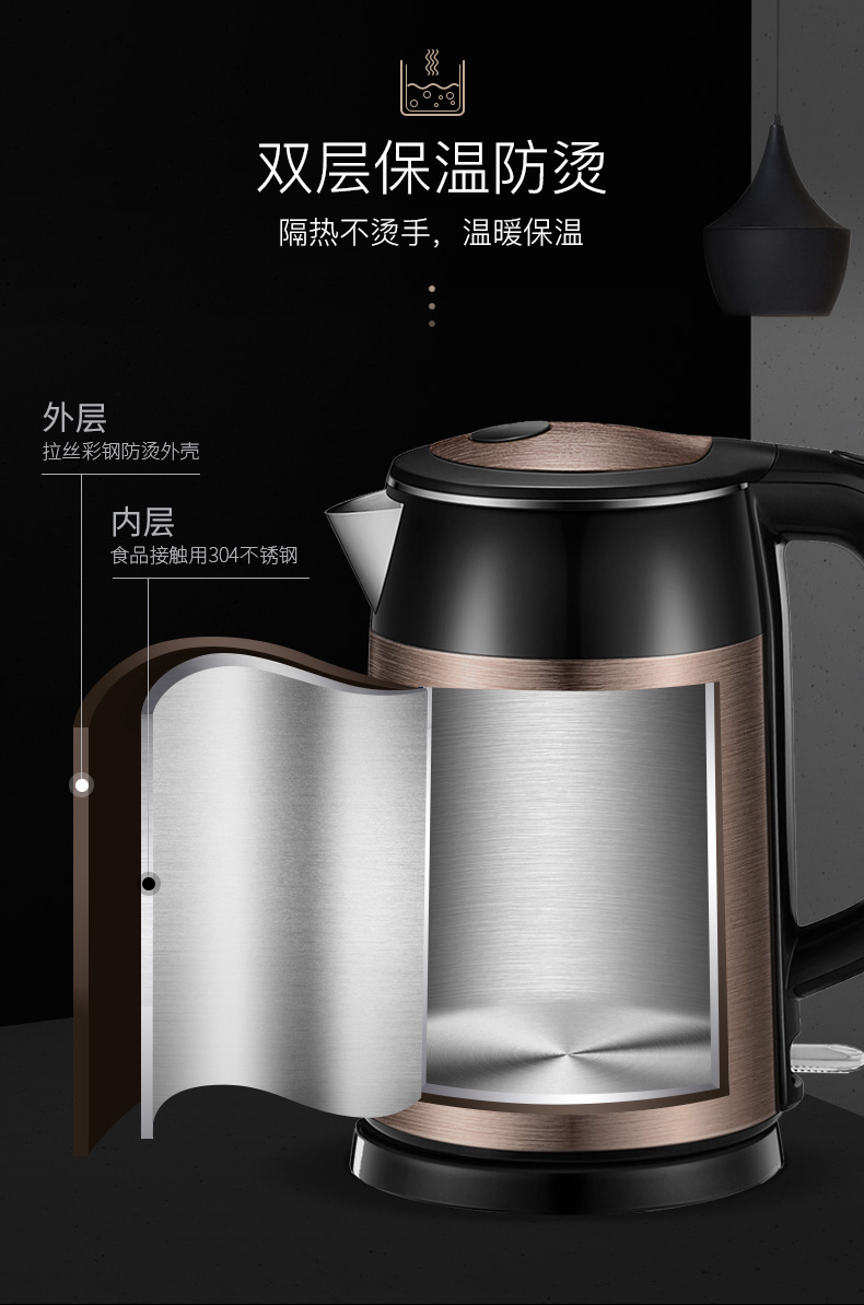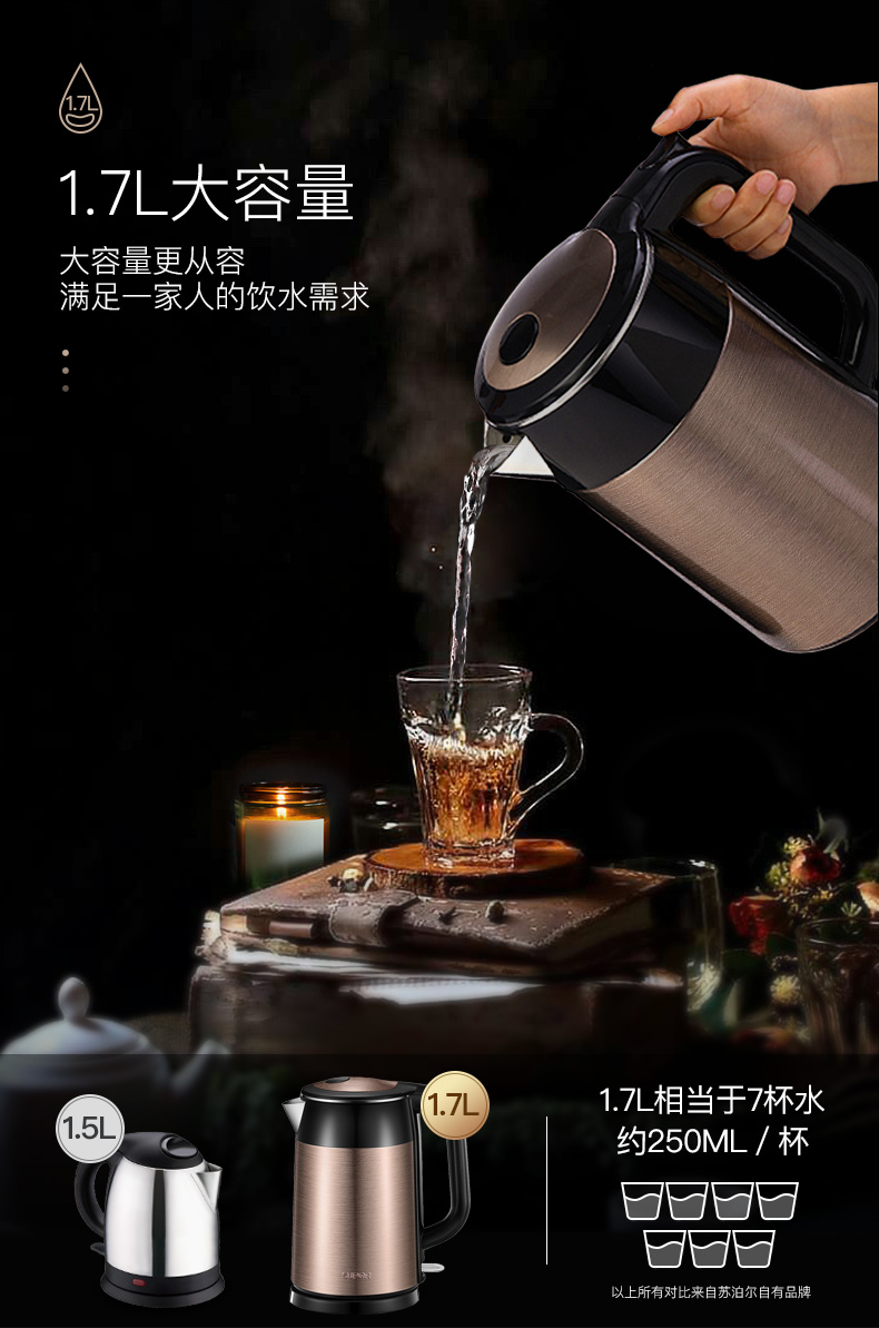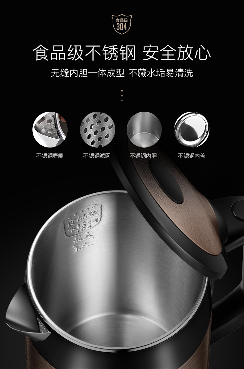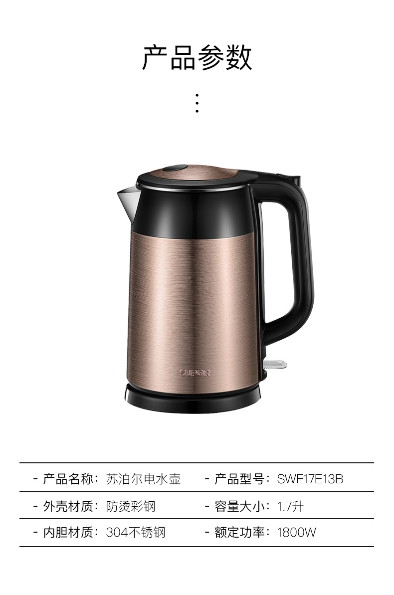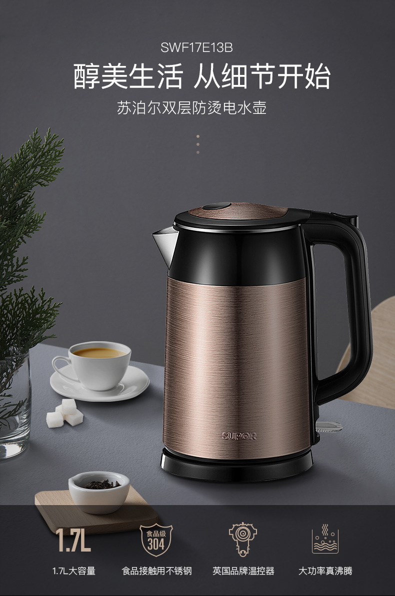 苏泊尔(SUPOR)电水壶热水壶 1.7L全钢无缝双层防烫电热水壶 304不锈钢烧水壶 SWF17E13B