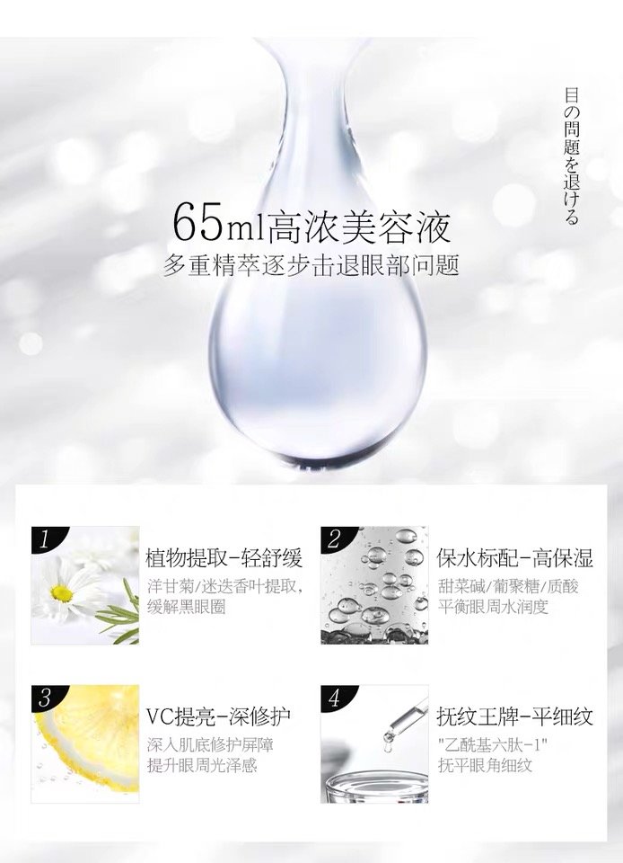 3、功效:可以和眼部肌肤360°无死角贴合,就算用到最后一片,它整片还是满腹精华!15-15分钟后眼膜会发白!精华会被皮肤完全吸收!