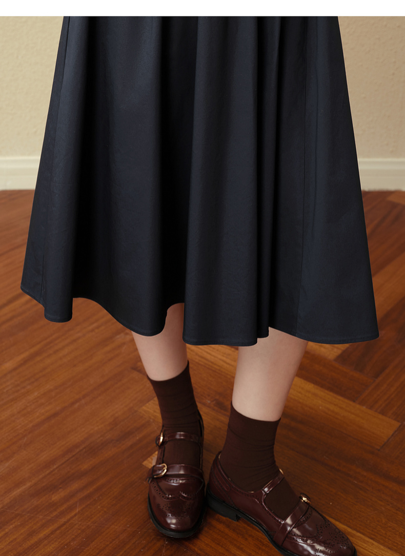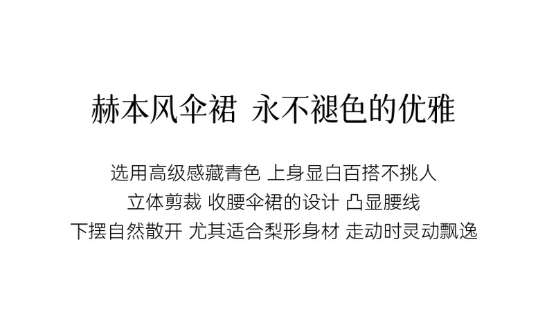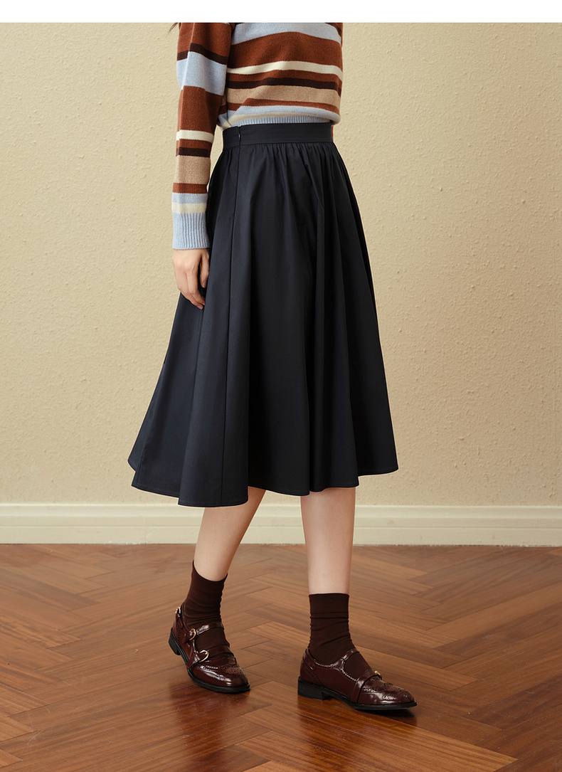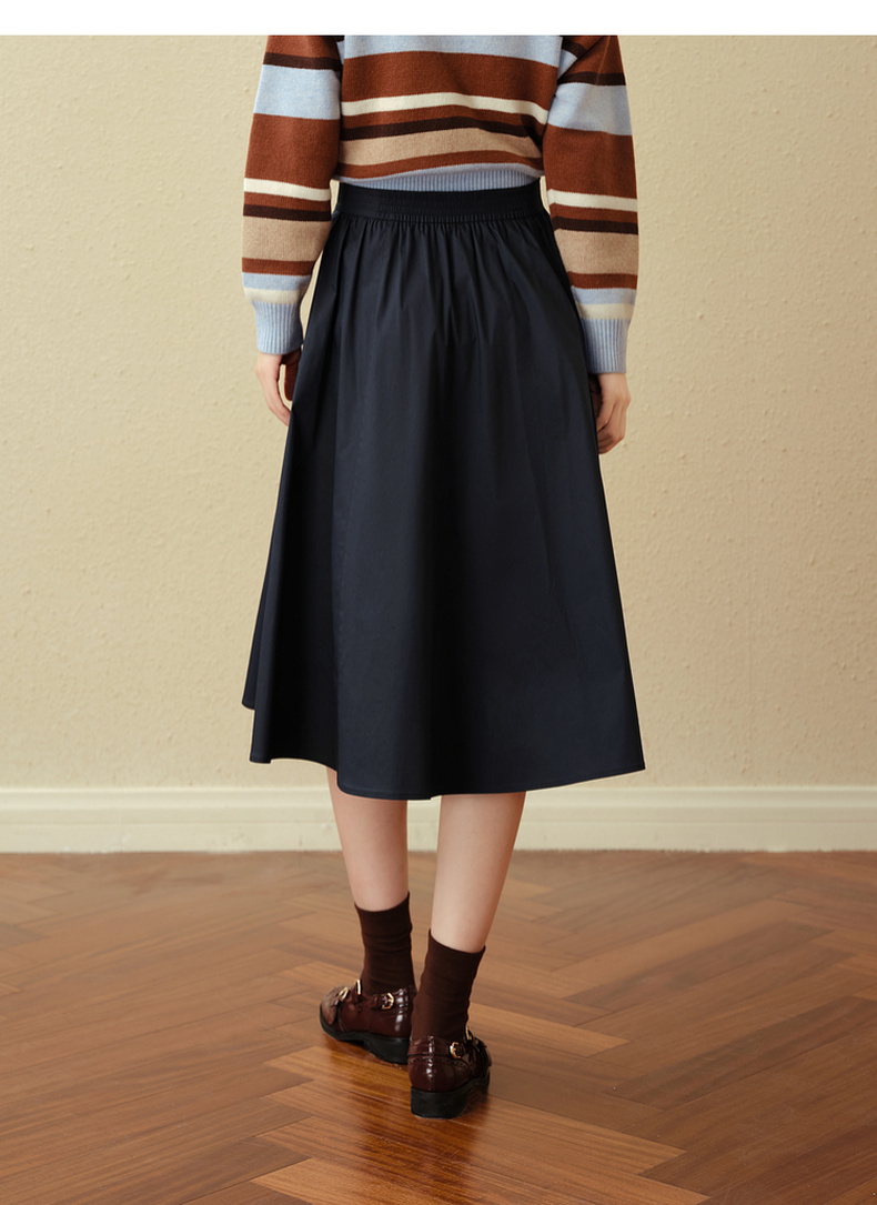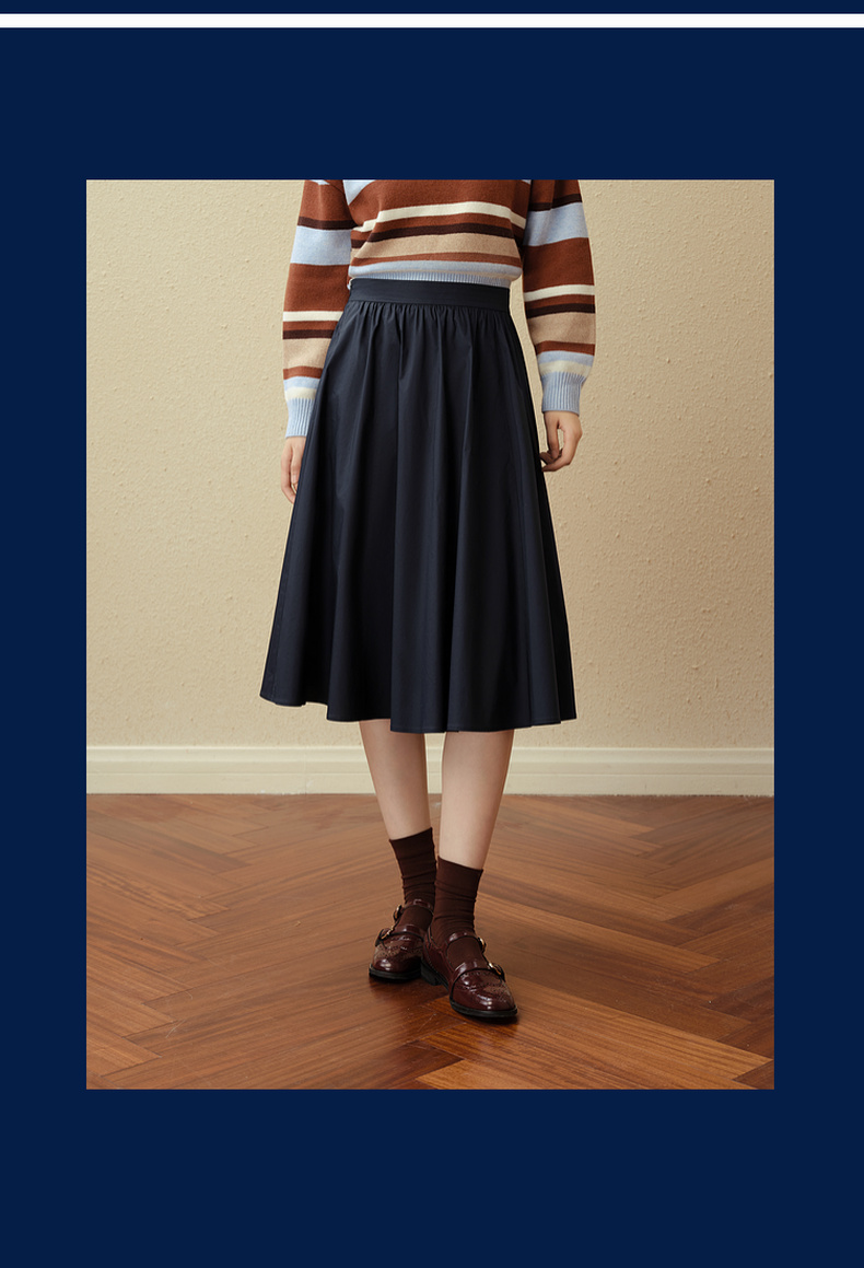 【严选】诗凡黎藏青高腰A字半身裙2025秋新款赫本风气质通勤显瘦百搭伞裙7G8140501