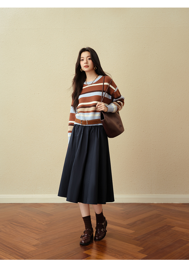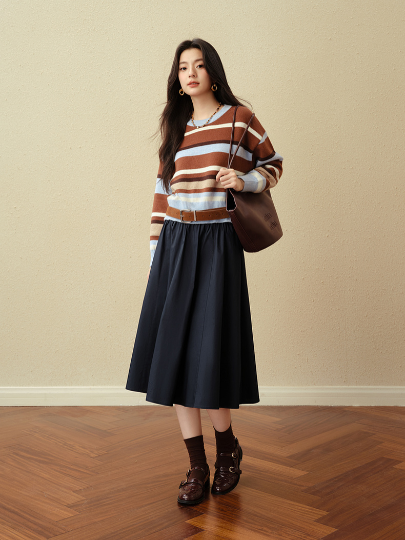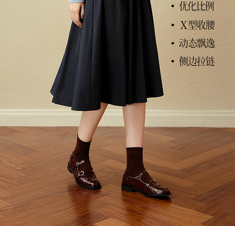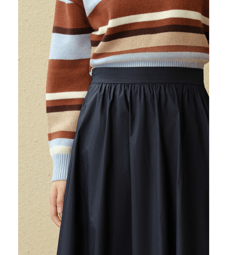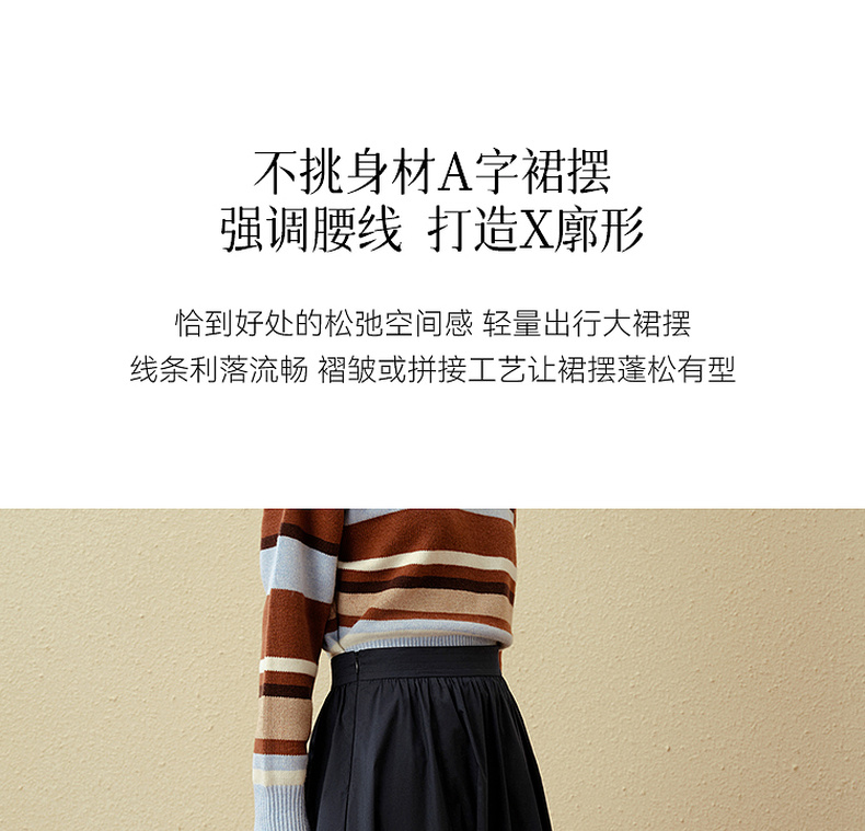 【严选】诗凡黎藏青高腰A字半身裙2025秋新款赫本风气质通勤显瘦百搭伞裙7G8140501