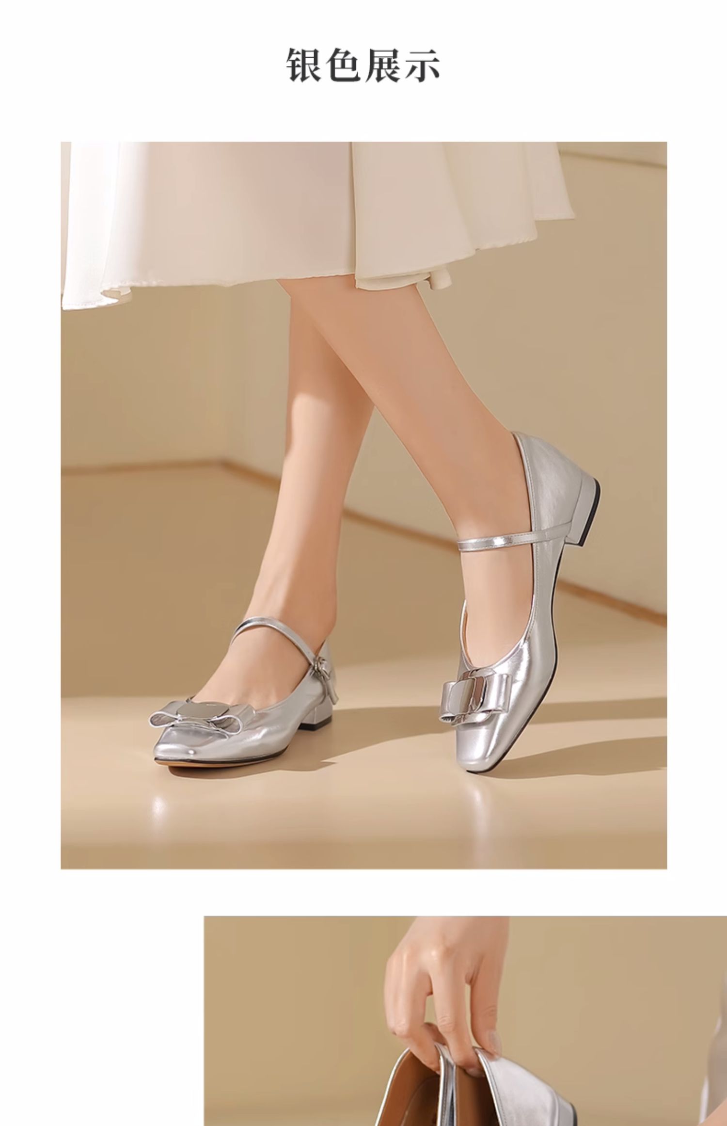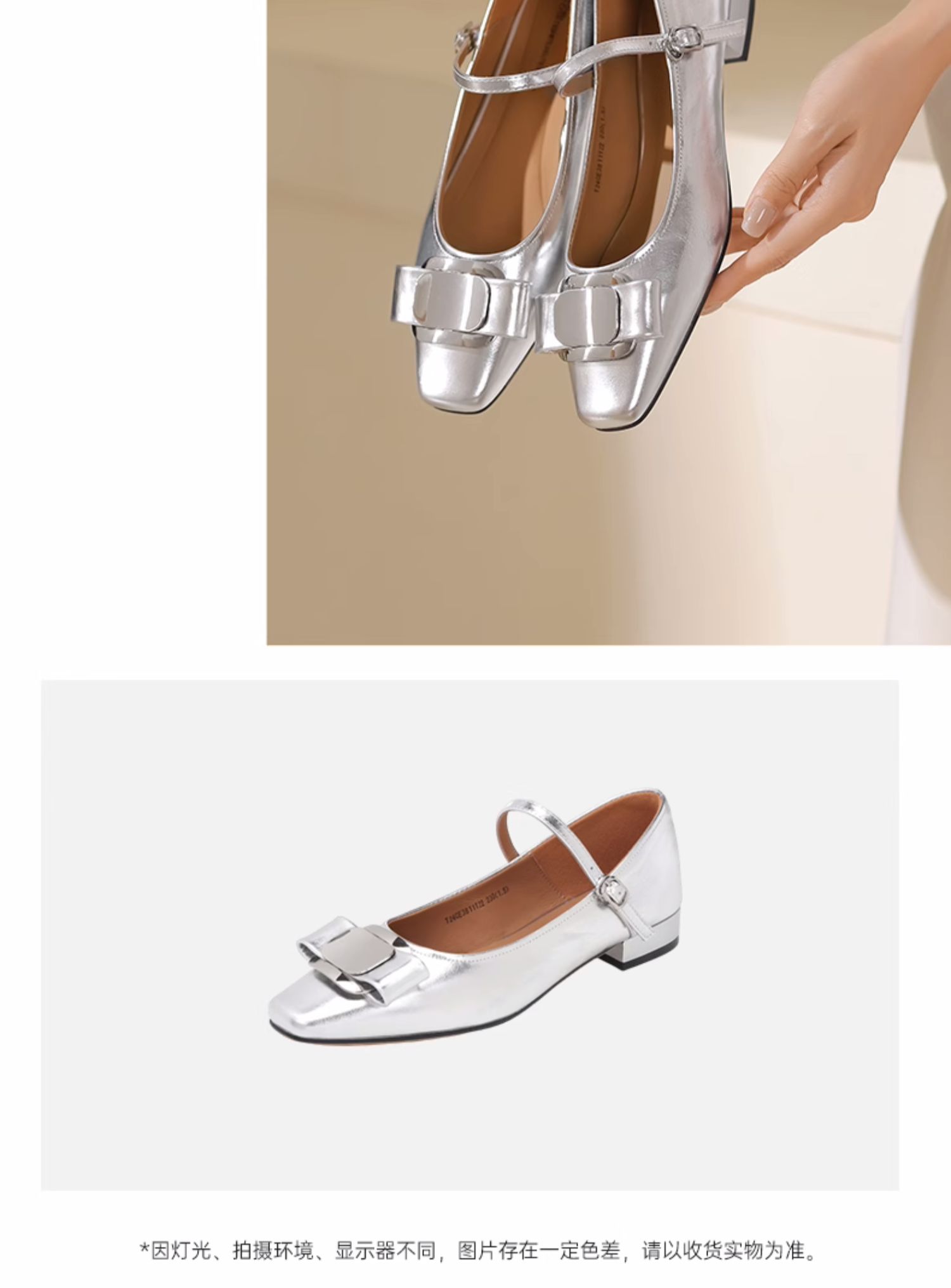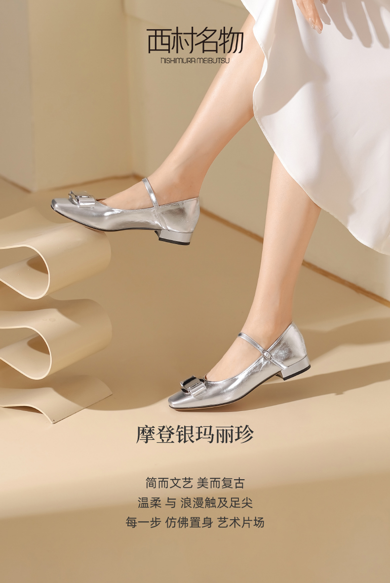 西村名物2024夏季新品真皮法式复古银色单鞋女玛丽珍鞋配裙子日常T24CE38111