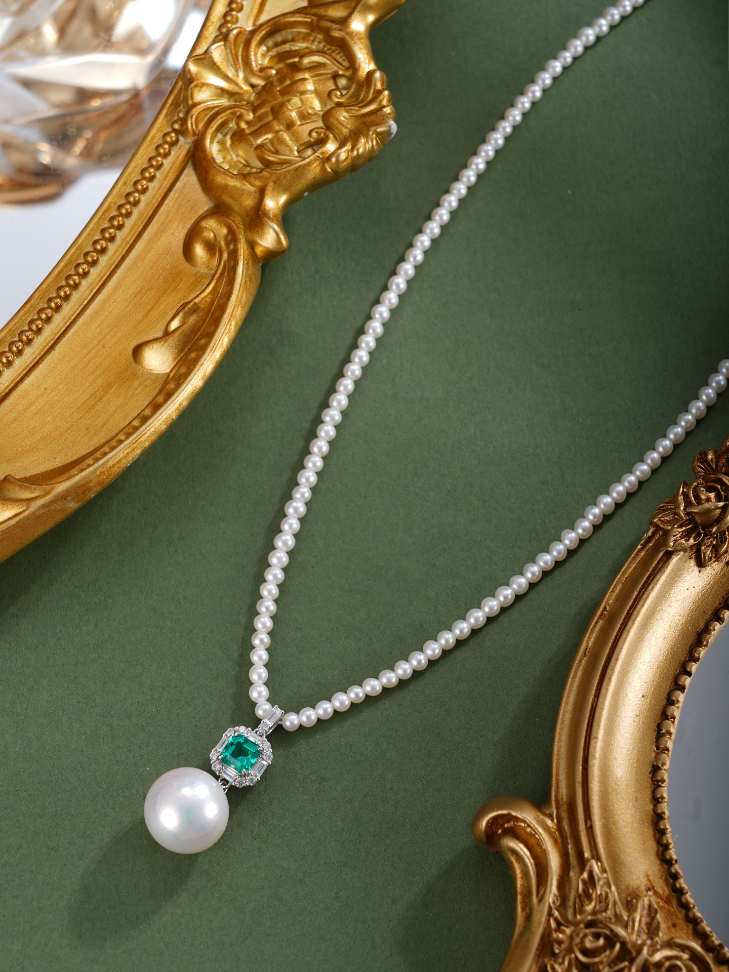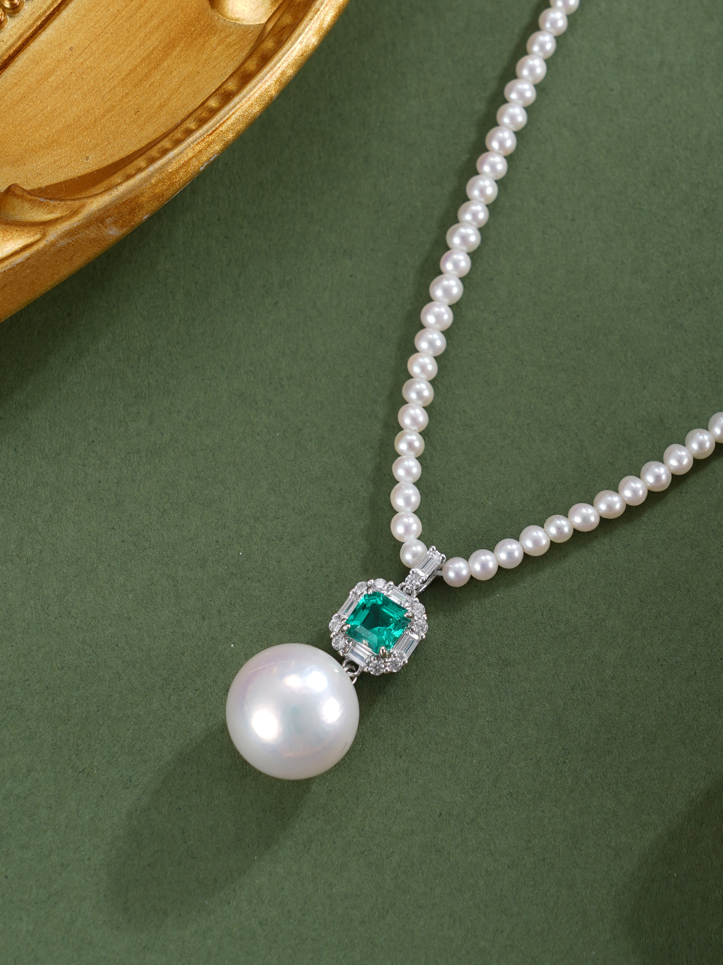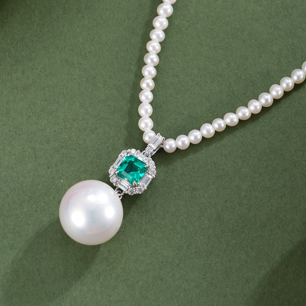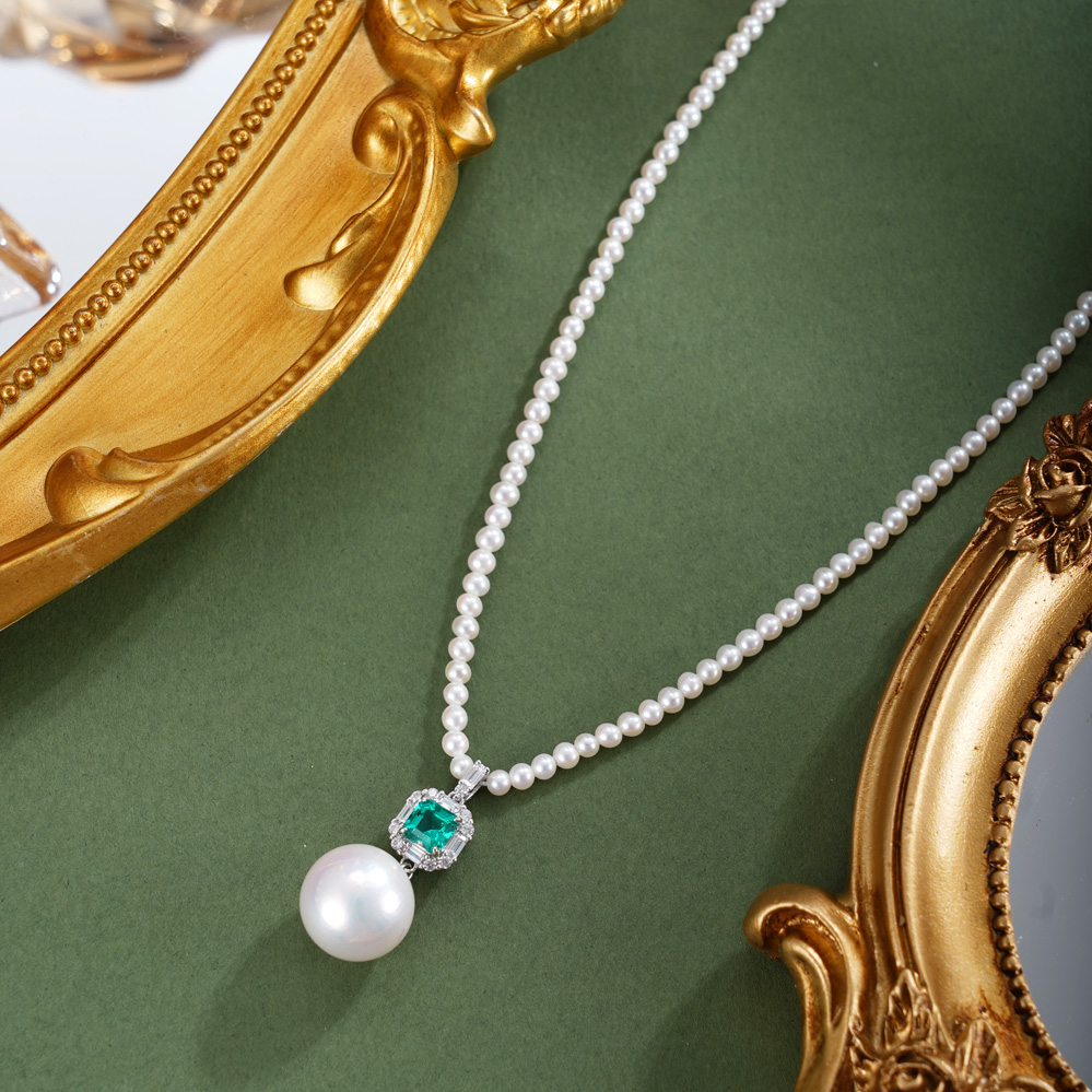 子佩集【澄心静守】银S925珍珠惜王妃项链【ZZXL039】2.8mm小珠12mm大珠绿方块2601