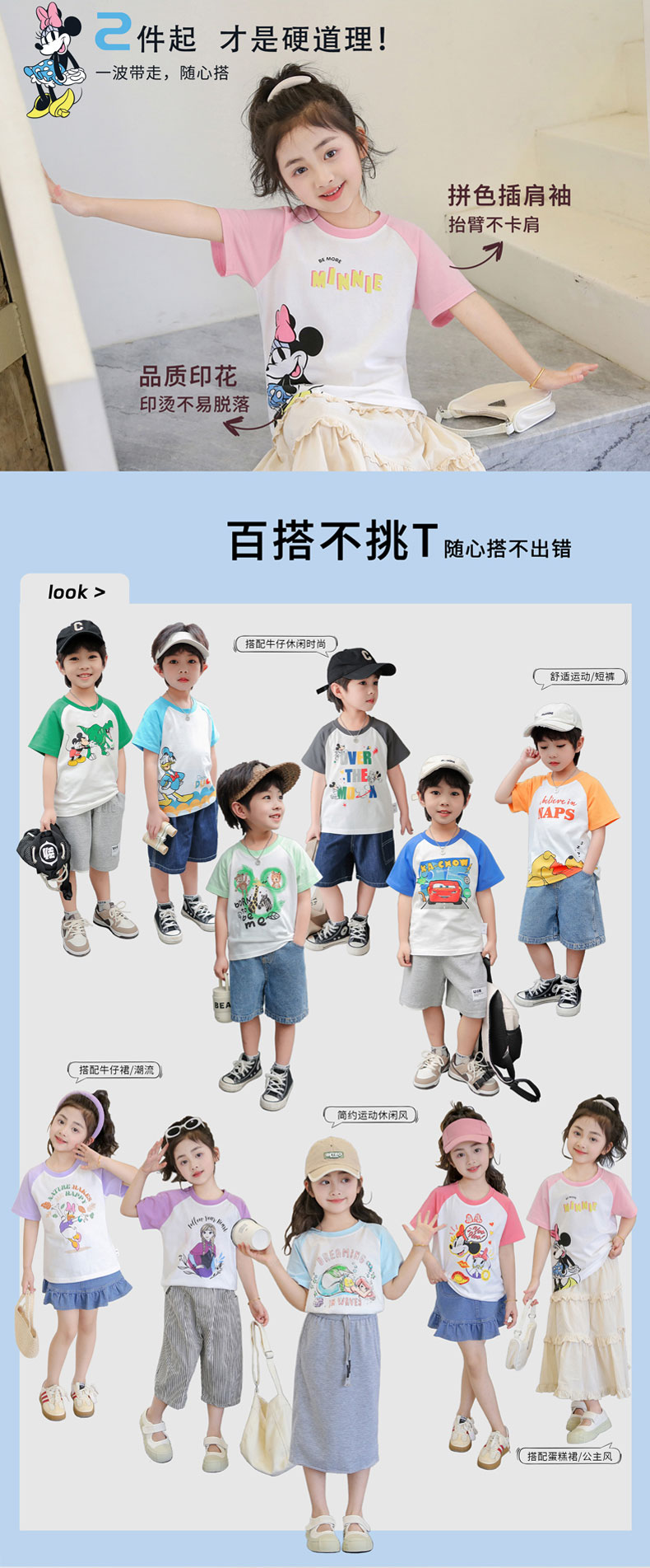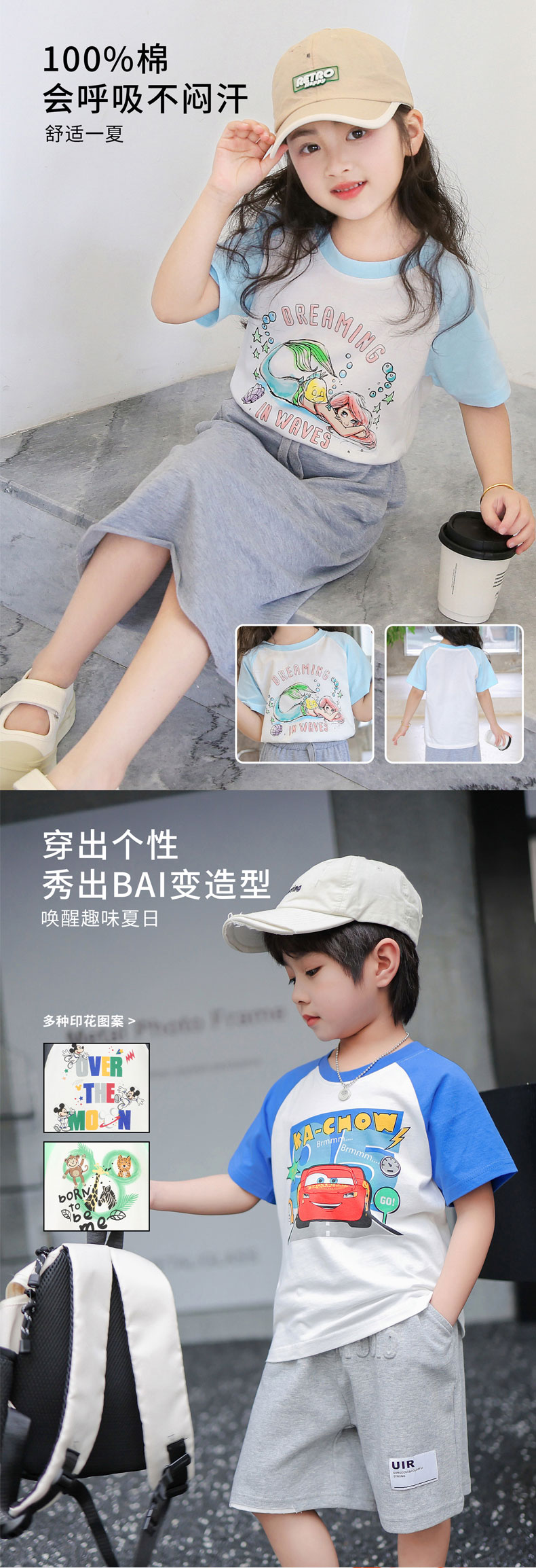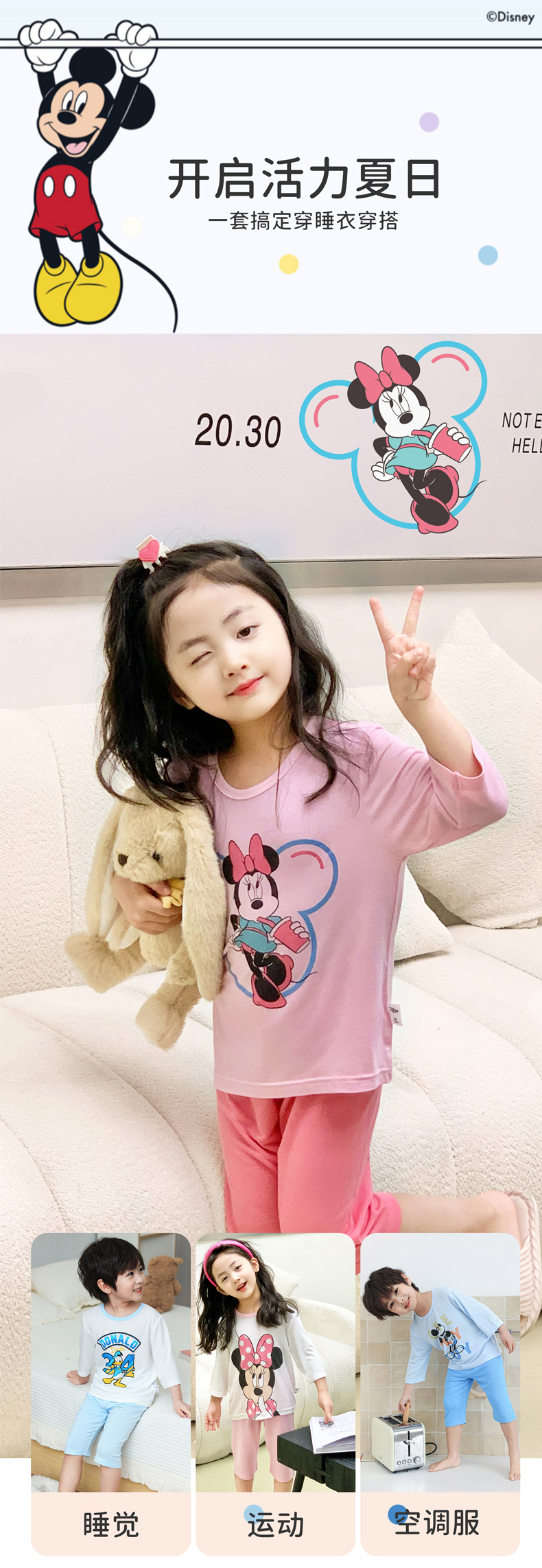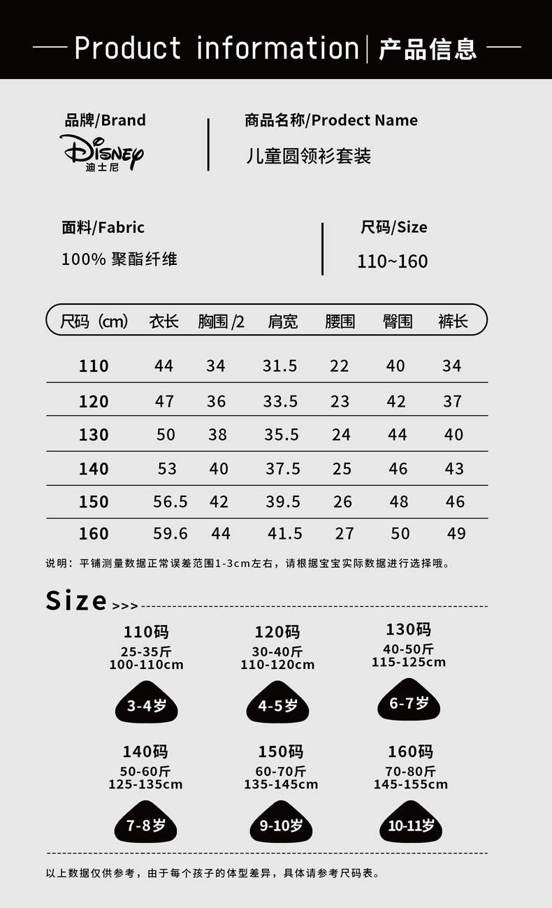 49.9元/3件任选【迪士尼清仓合集】短袖 长袖 速干套装 家居服 男童 女童 春季 夏季
