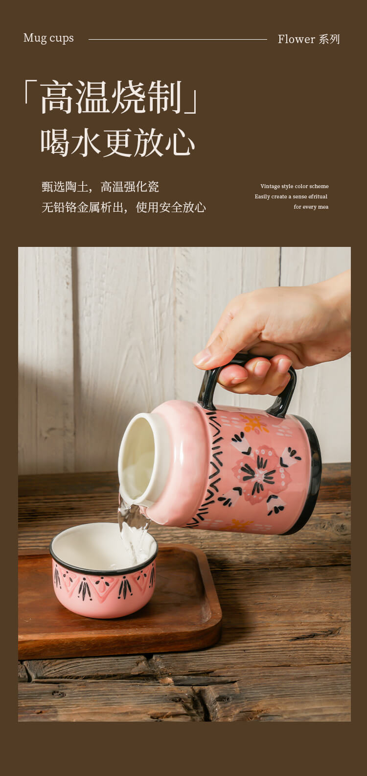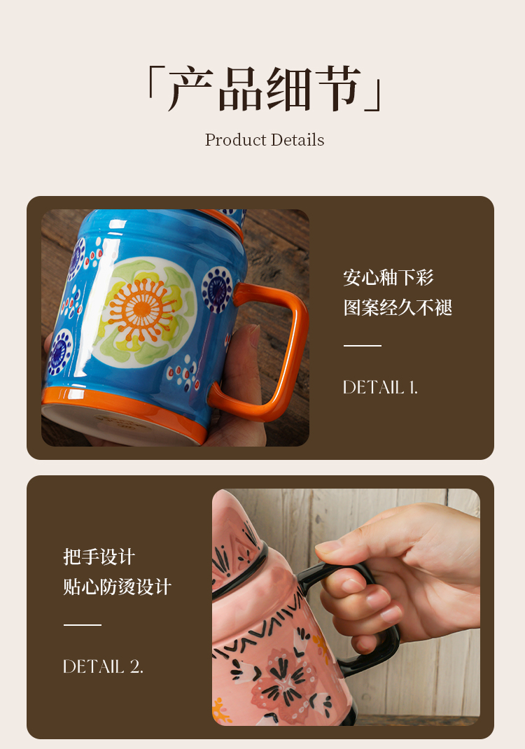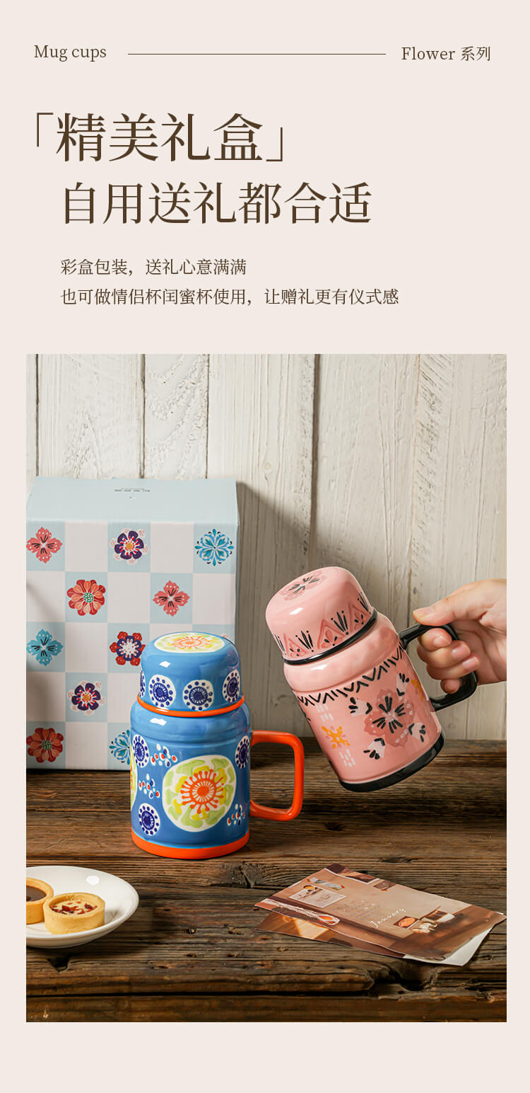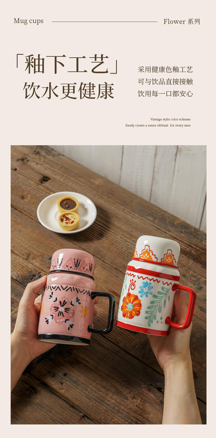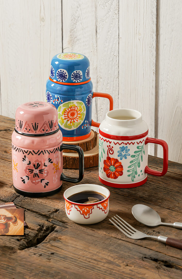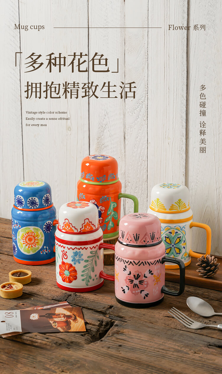 繁花手绘复古水壶杯