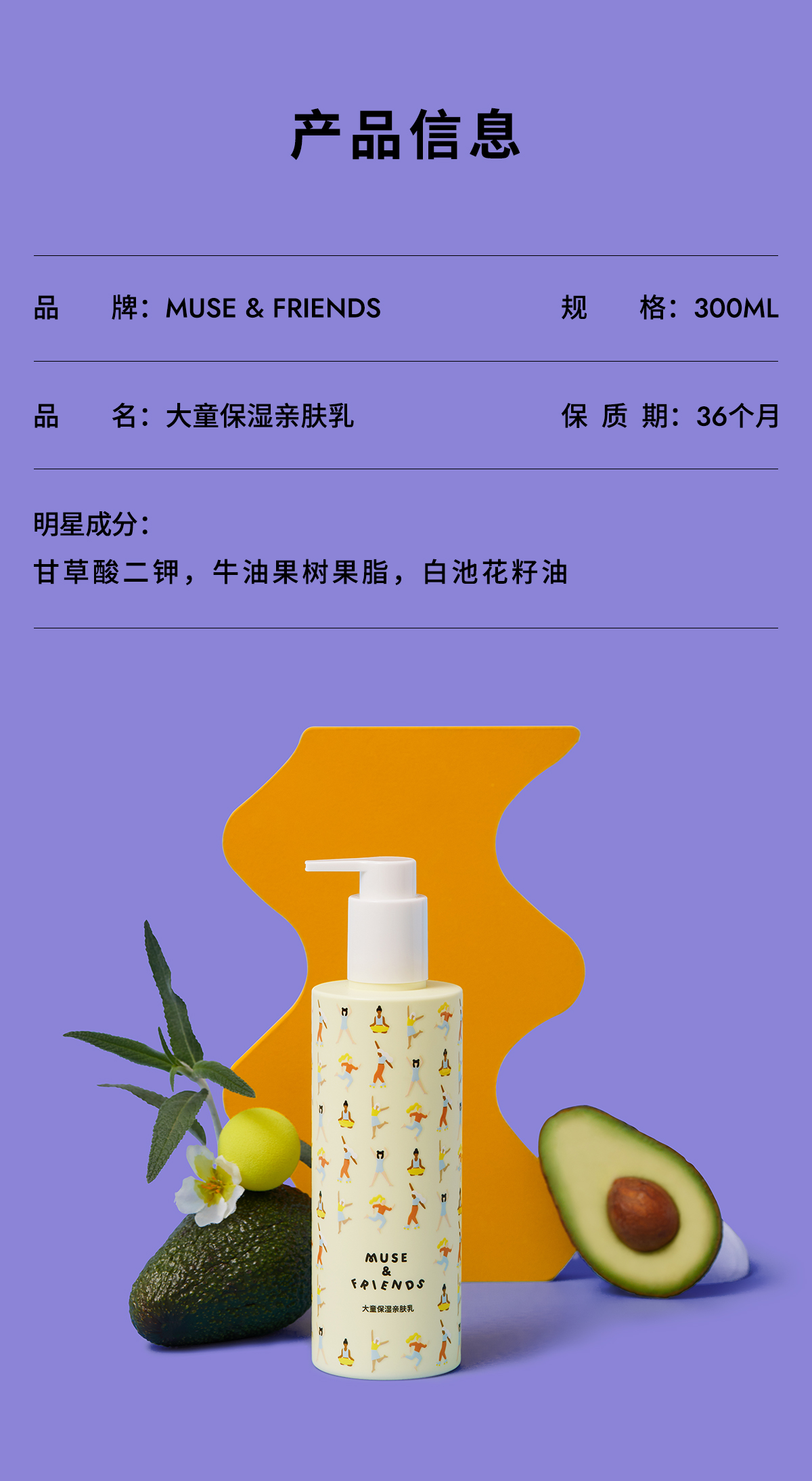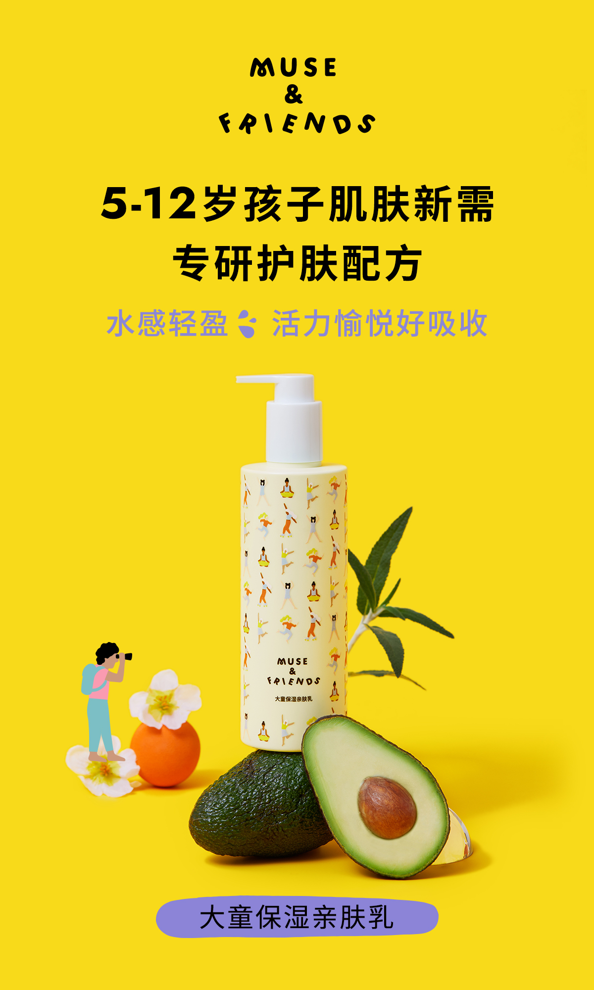 MUSE&FRIENDS大童保湿舒缓亲肤乳轻盈好吸收安全 300ml 5-12岁