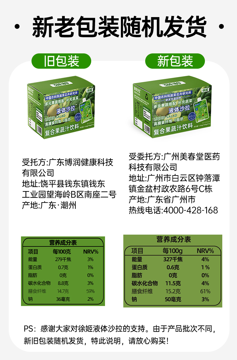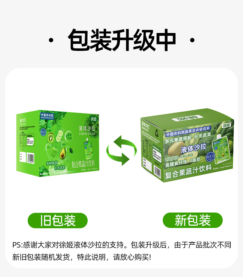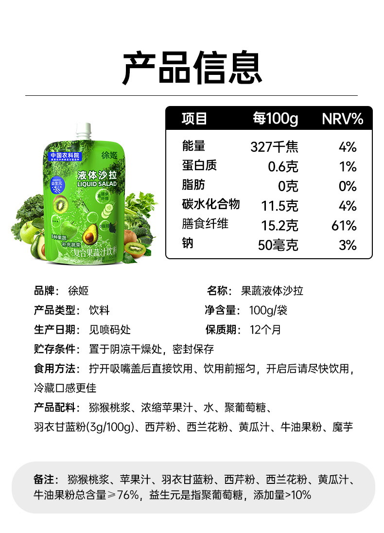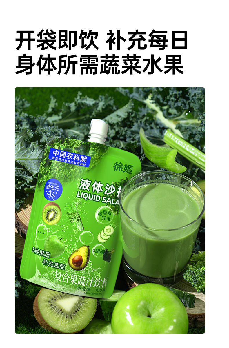 【芊妈专属】徐姬果蔬液体沙拉中国农科院蔬菜所代餐浓缩果蔬汁饮料羽衣甘蓝汁100g*16袋