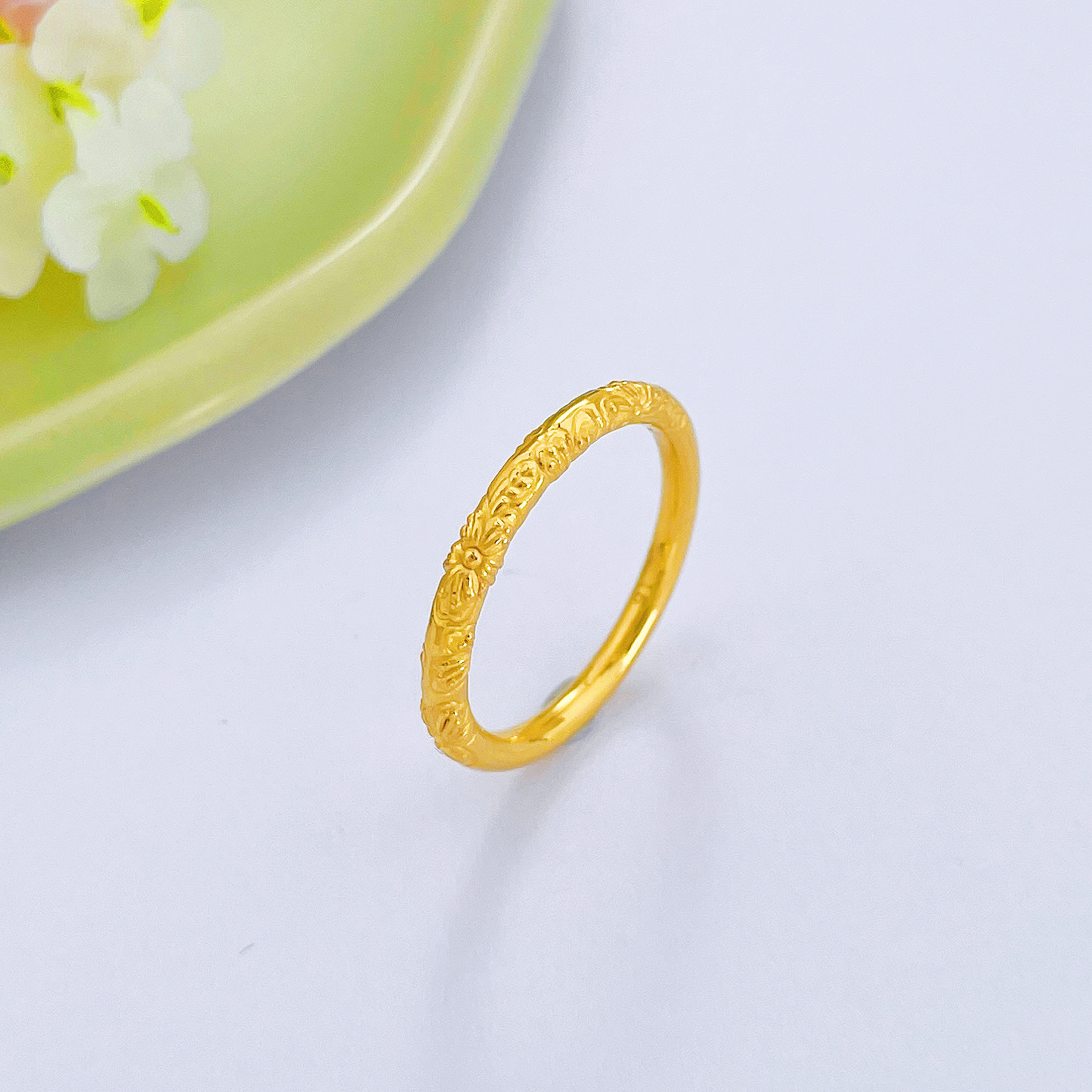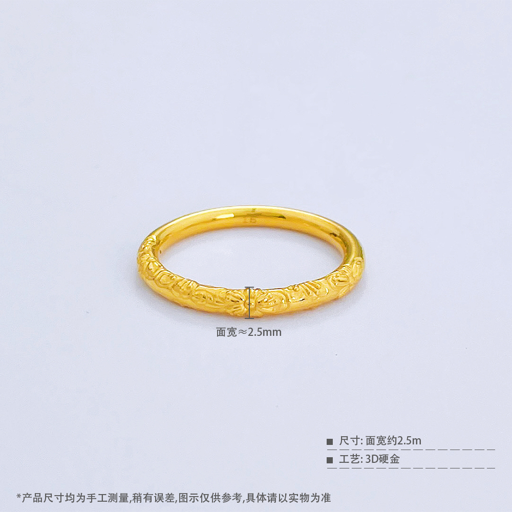 【限时克减150元】足金 3D硬金空心固口紫荆花圈戒樱花圈戒(V3DJZ00003)(预售产品下单后不退款不退货不换货不补差价)