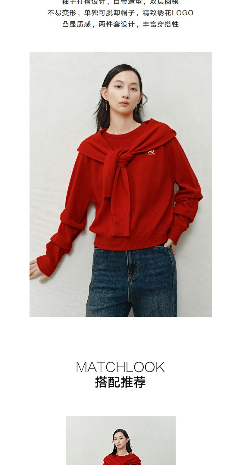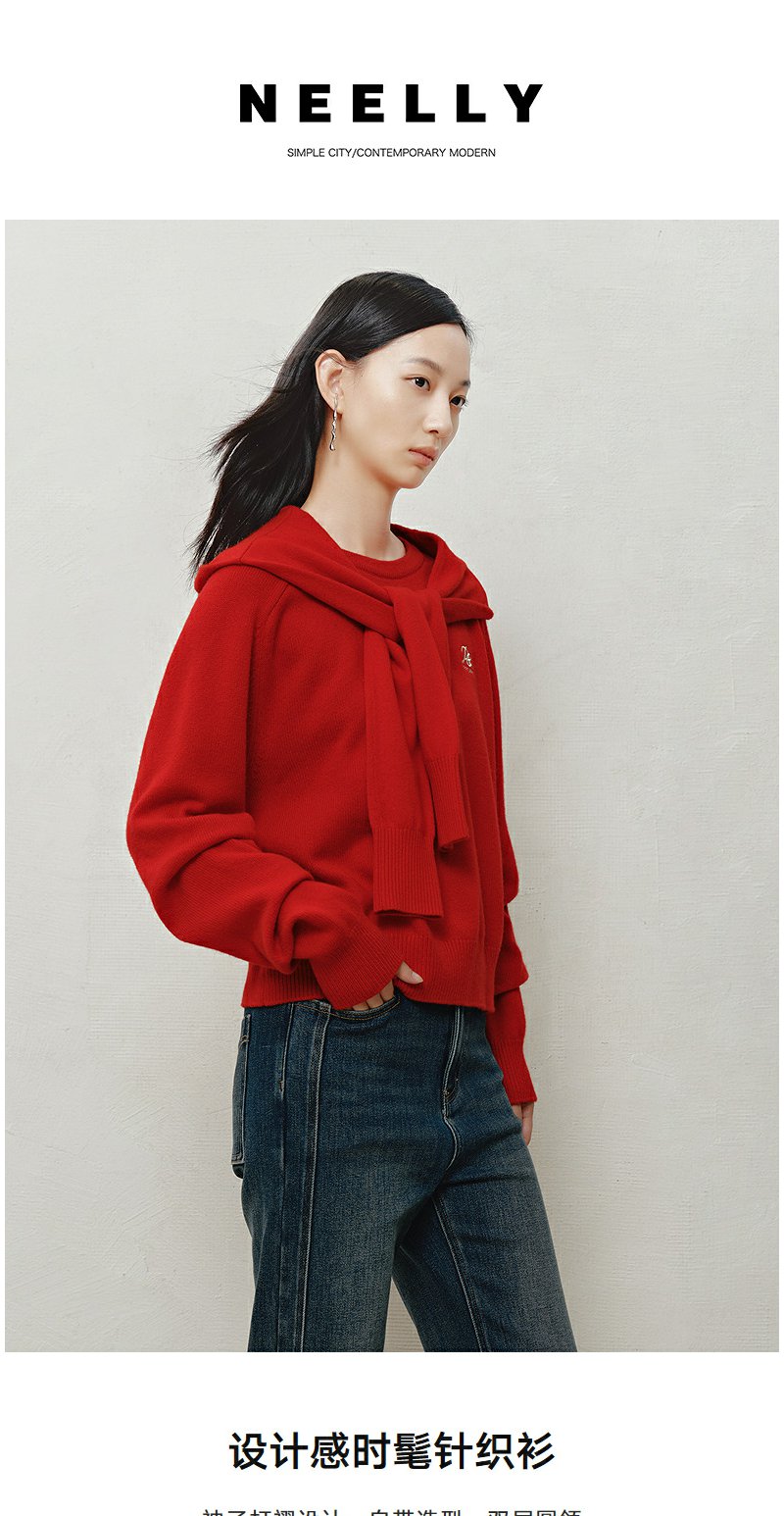 NEELLY纳俪商场同款冬季新款设计感休闲针织衫女亲肤通勤吸睛毛衣N25103A01062