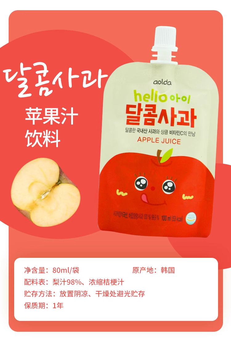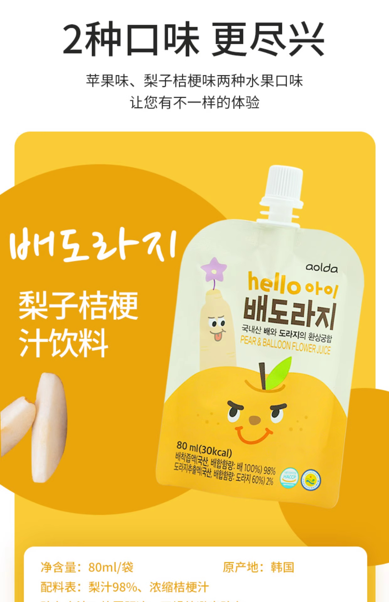 韩国福乐正哈喽小孩果汁甜味苹果汁梨子桔梗汁风味饮料