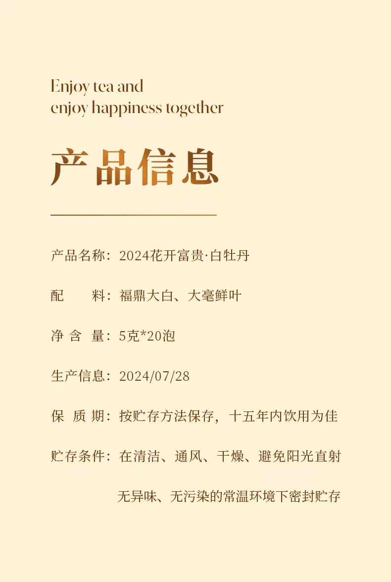 福鼎白茶 | 一叶九鼎 2024年 大洋轻语 花开富贵 白牡丹礼盒100g(5*20泡)