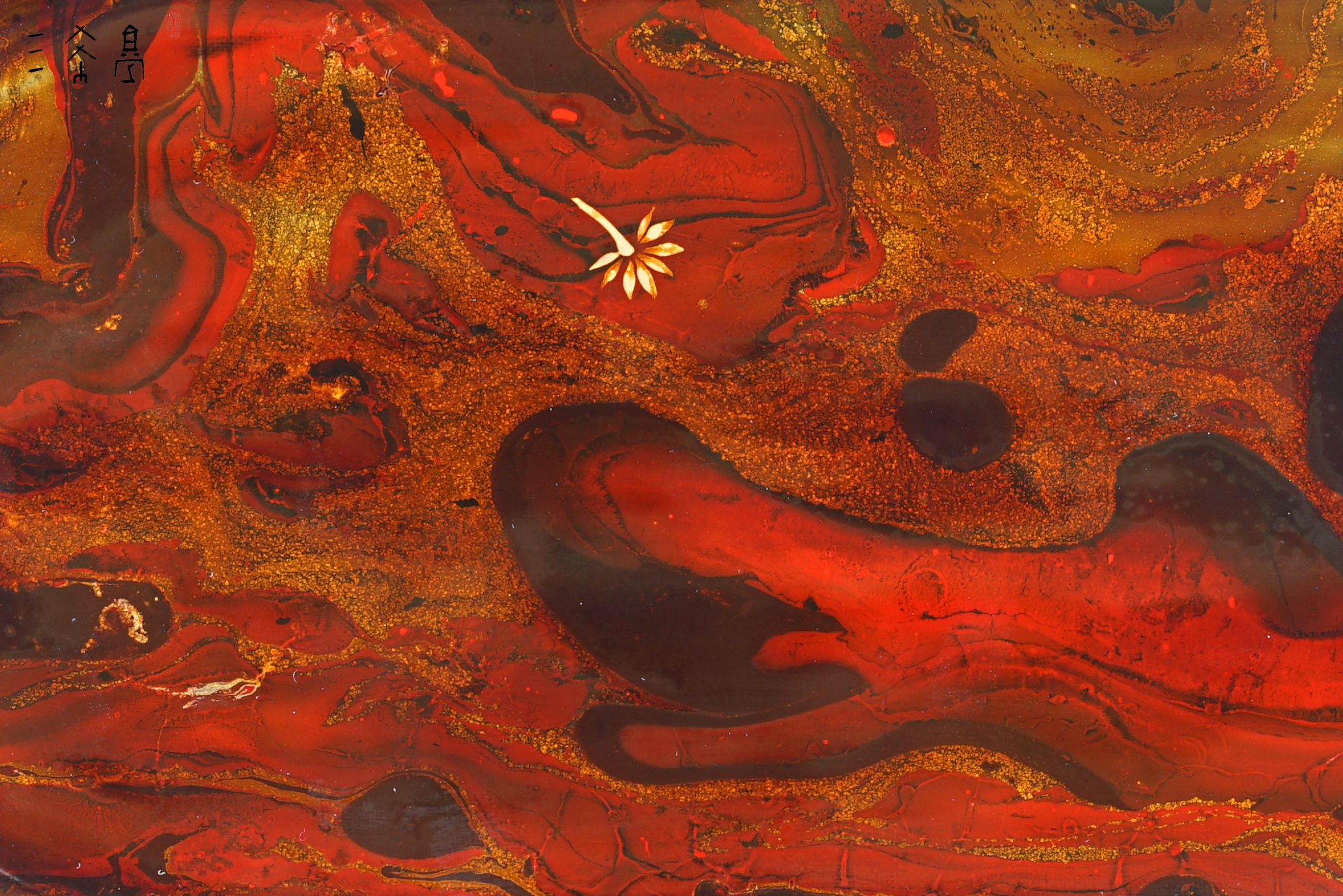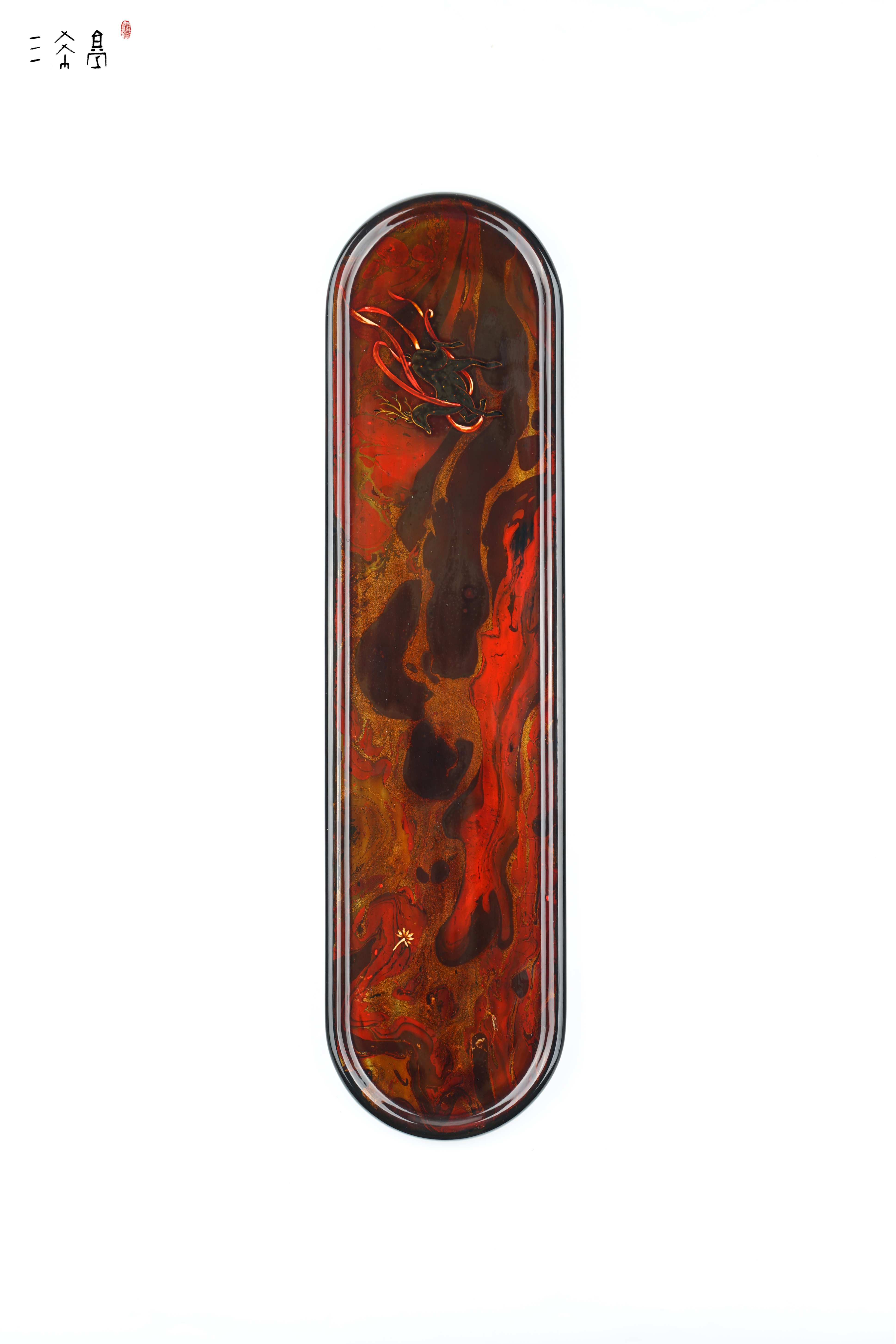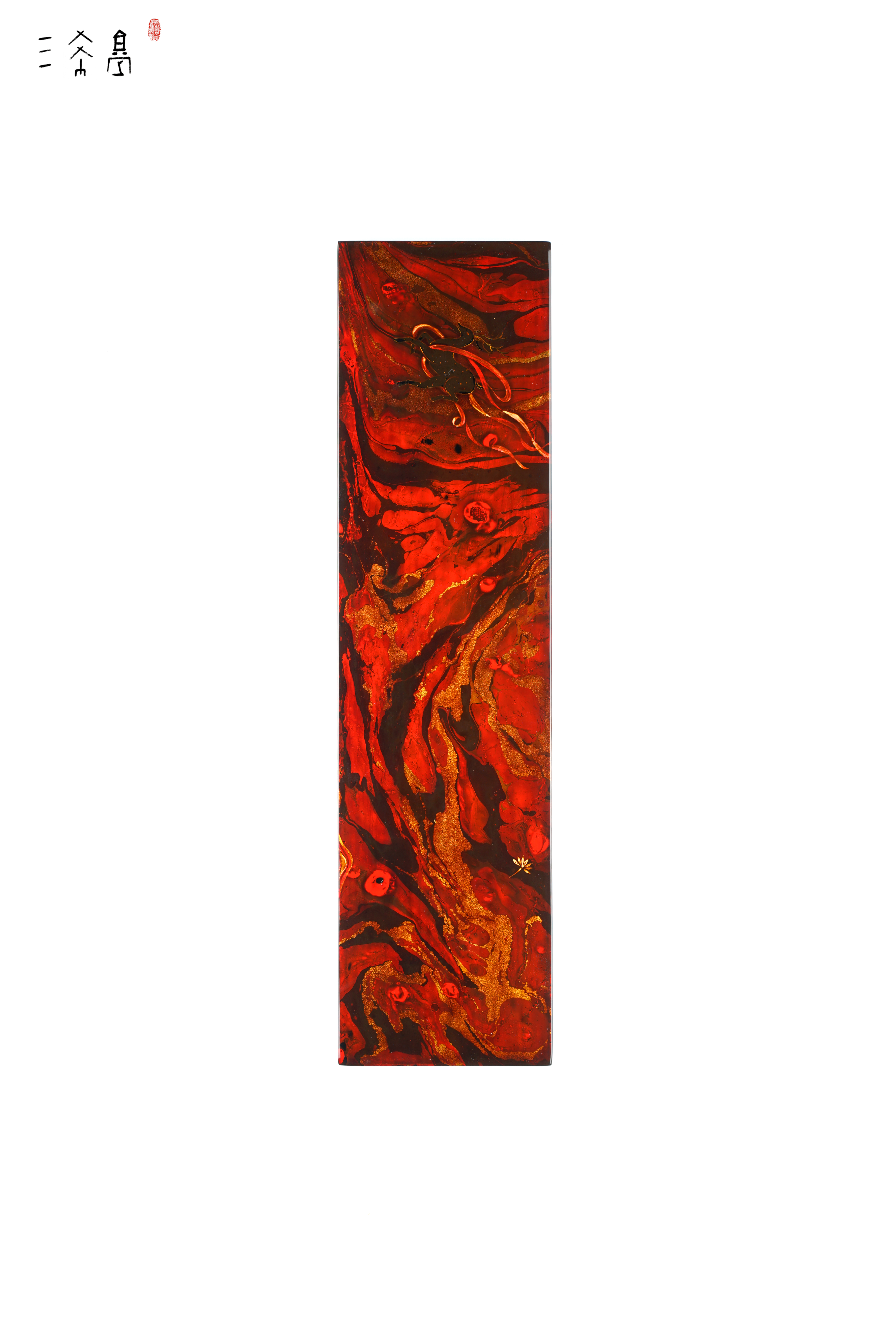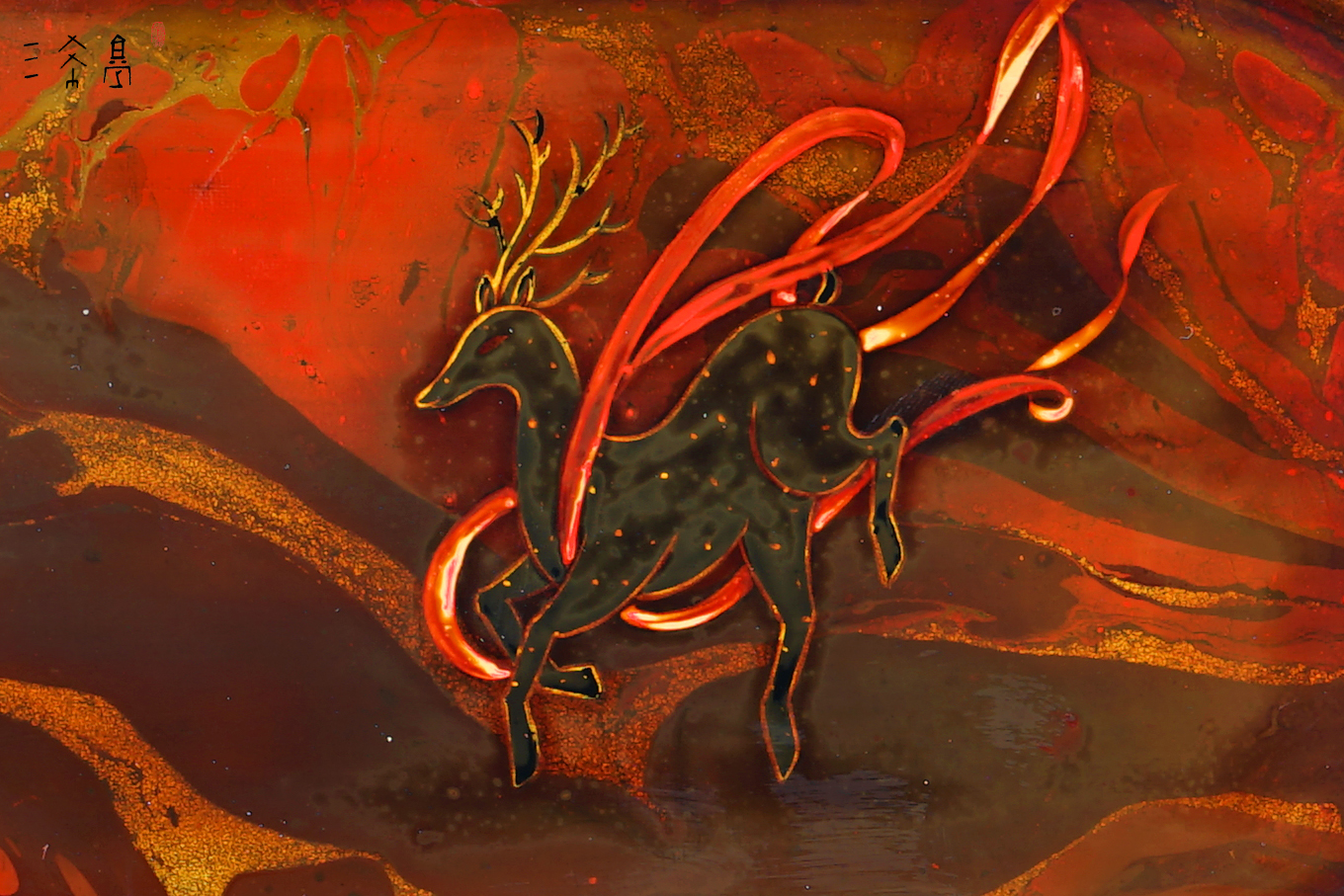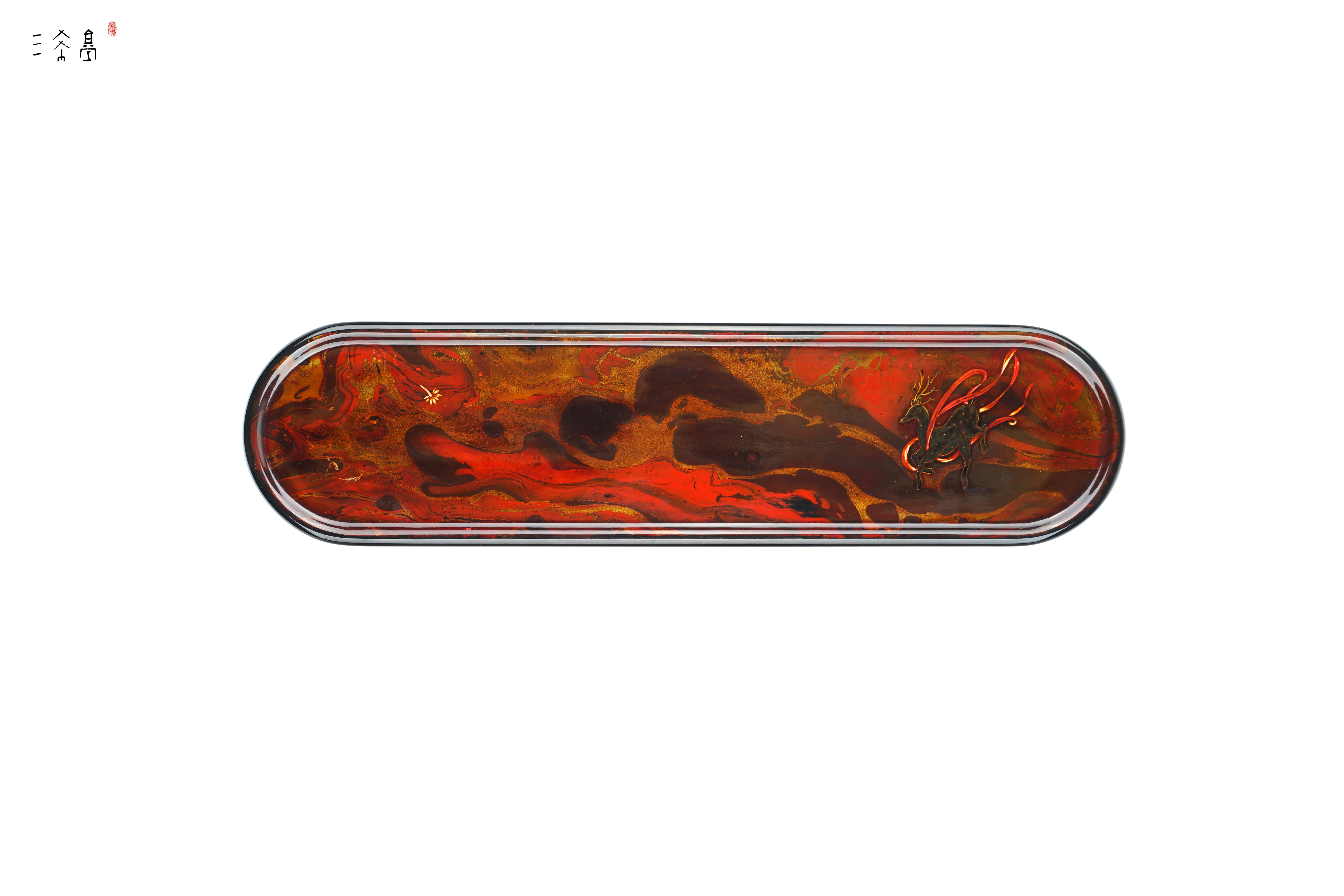 特殊中国红敦煌主题作品,数量很少,纯天然大漆+手绘小鹿,这个红是那种复古红,比较有质感,三希堂制,过年送人合适