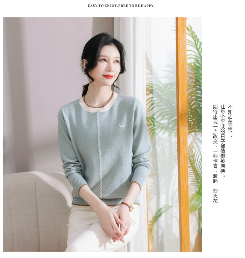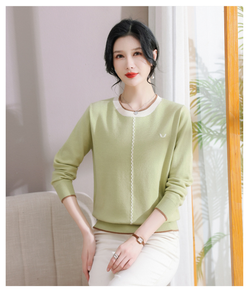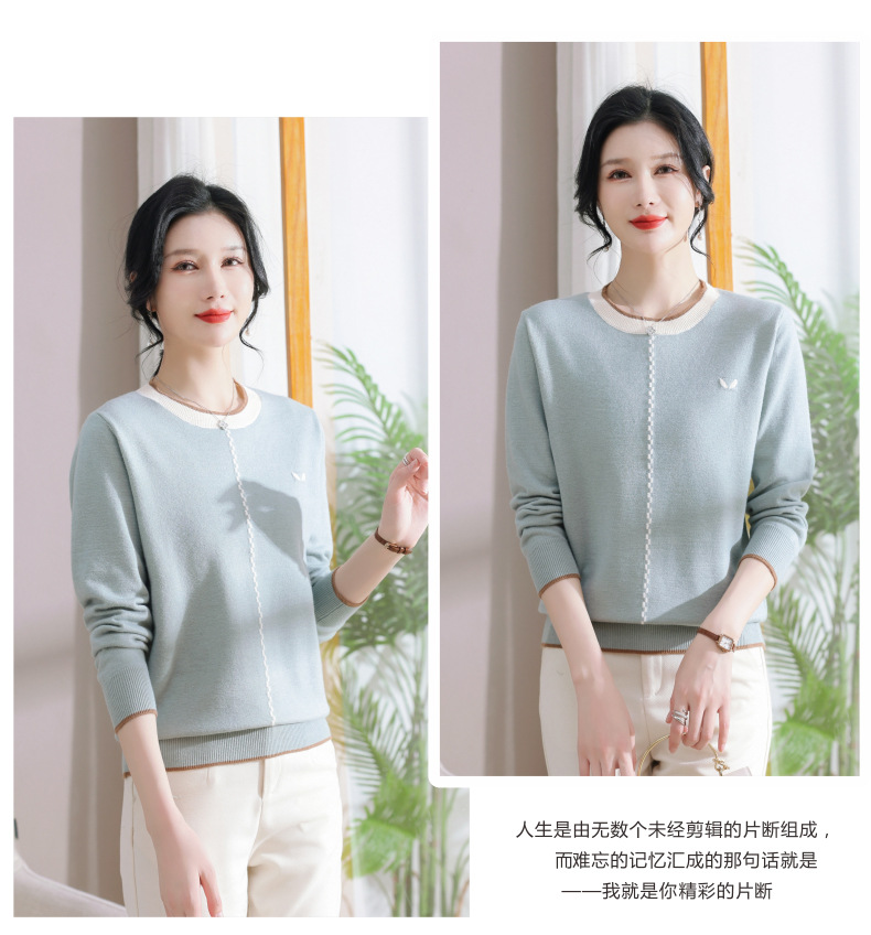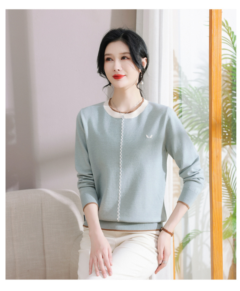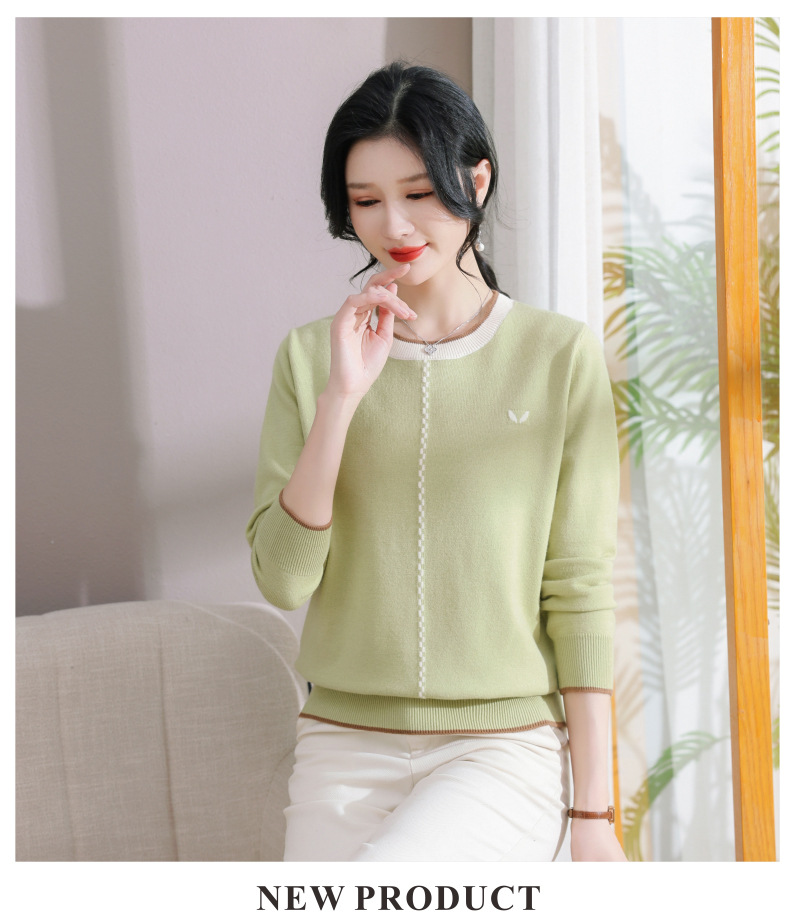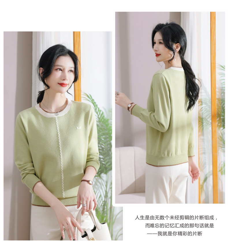 低领红色针织衫上衣春装,2024年新款妈妈薄款长袖t恤打底小衫CC-101-91270