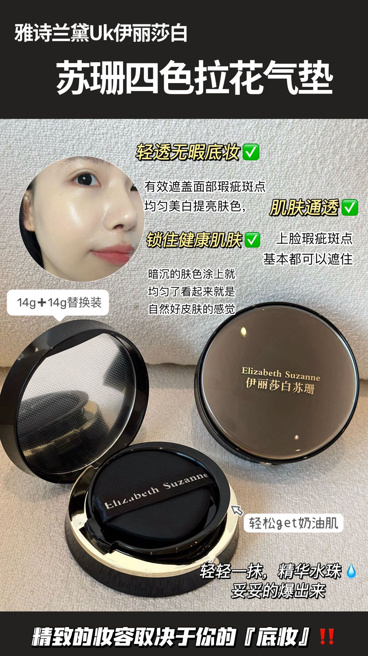 伊丽莎白苏珊四色拉花气垫 14g➕14g替换装 深层水润 完美遮瑕 长效控油