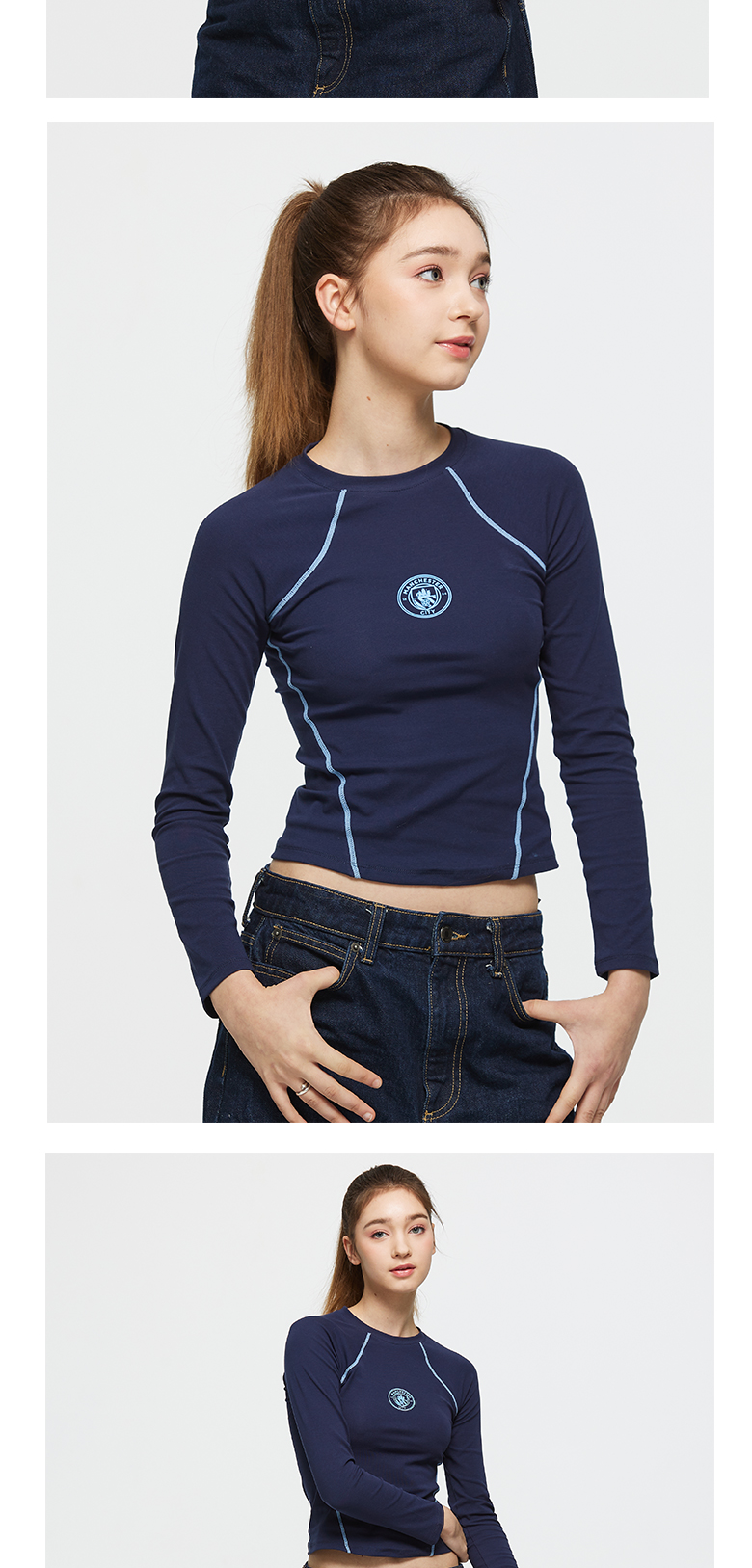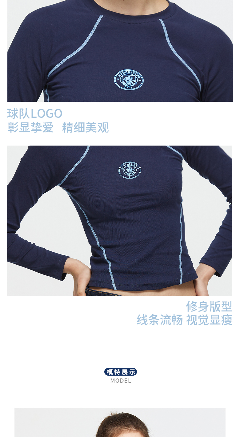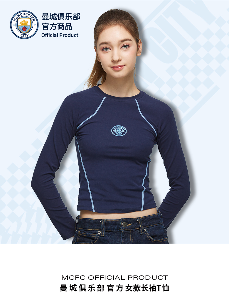 【官方正版】曼城俱乐部 | 深蓝女球迷运动长袖T恤瑜伽健身