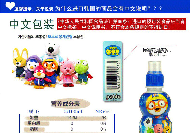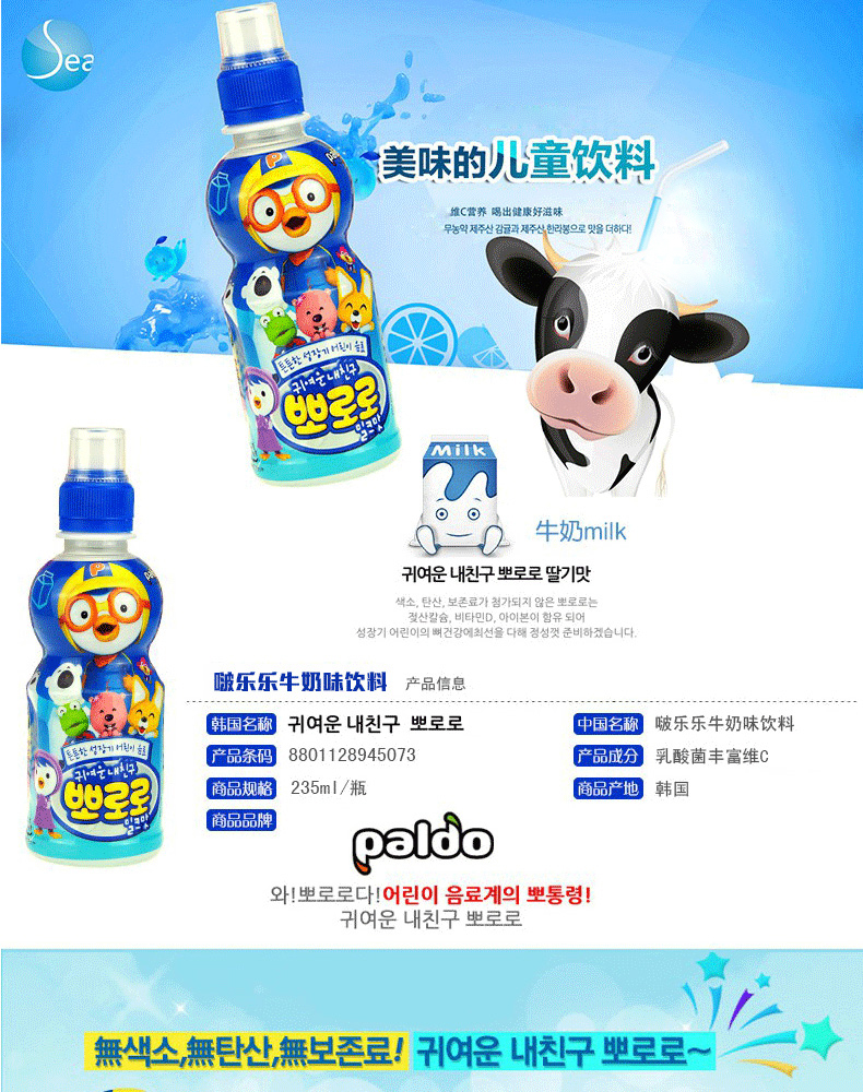 啵乐乐饮料牛奶味235ml