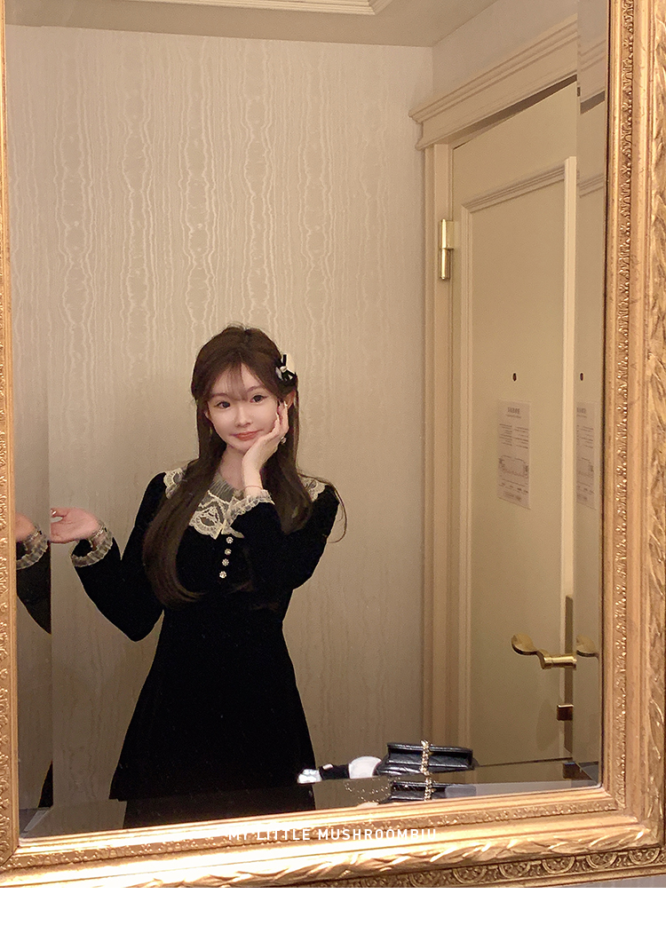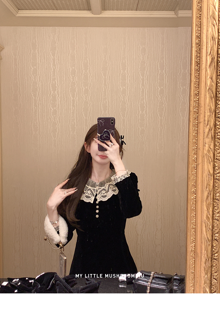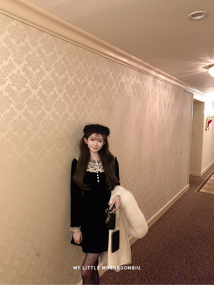 金蘑菇菇 圣诞季需要do*n的娇俏感 新季丝绒裙穿搭