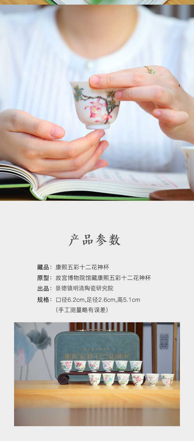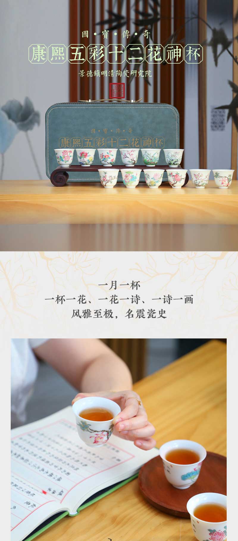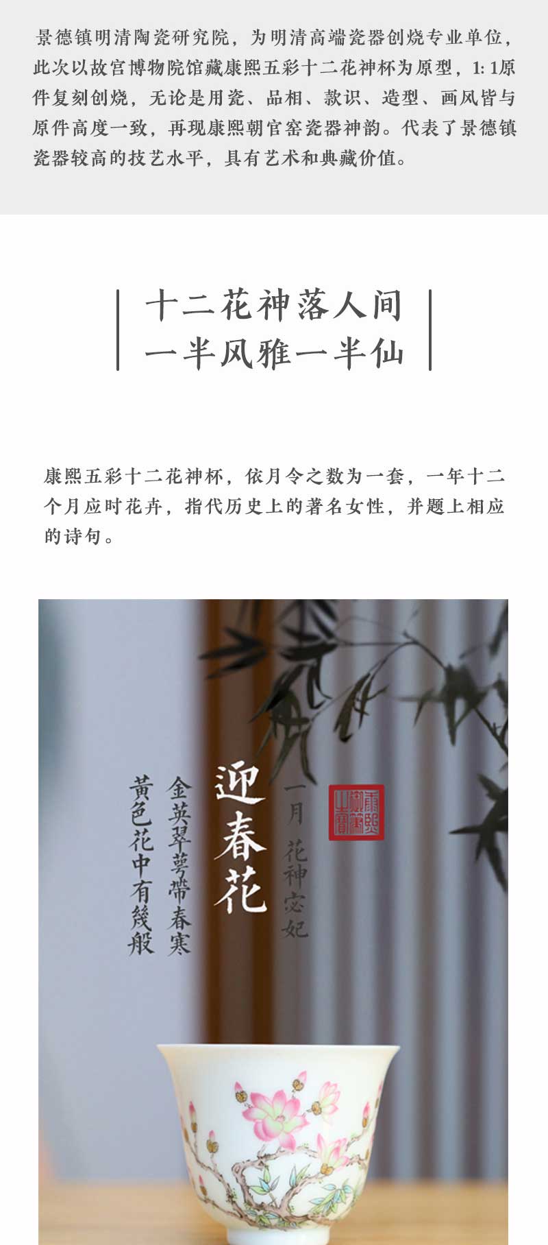 【景德镇明清陶瓷研究院官方出品】康熙五彩十二花神杯