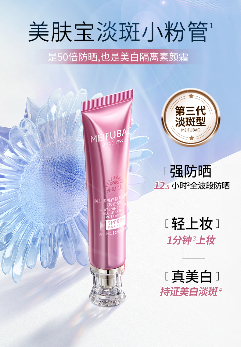 美肤宝美白淡斑防晒 小粉管隔离遮瑕50倍防晒霜防紫外线