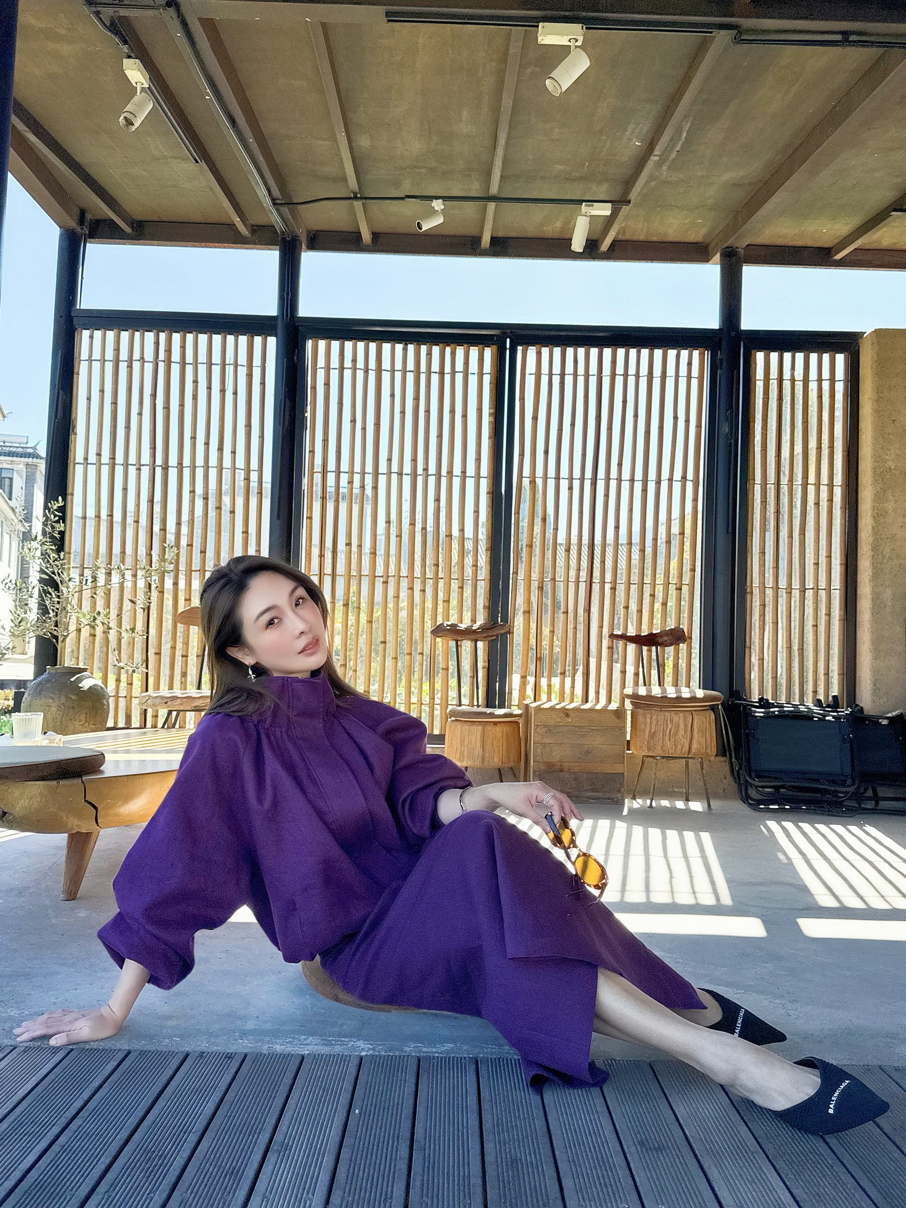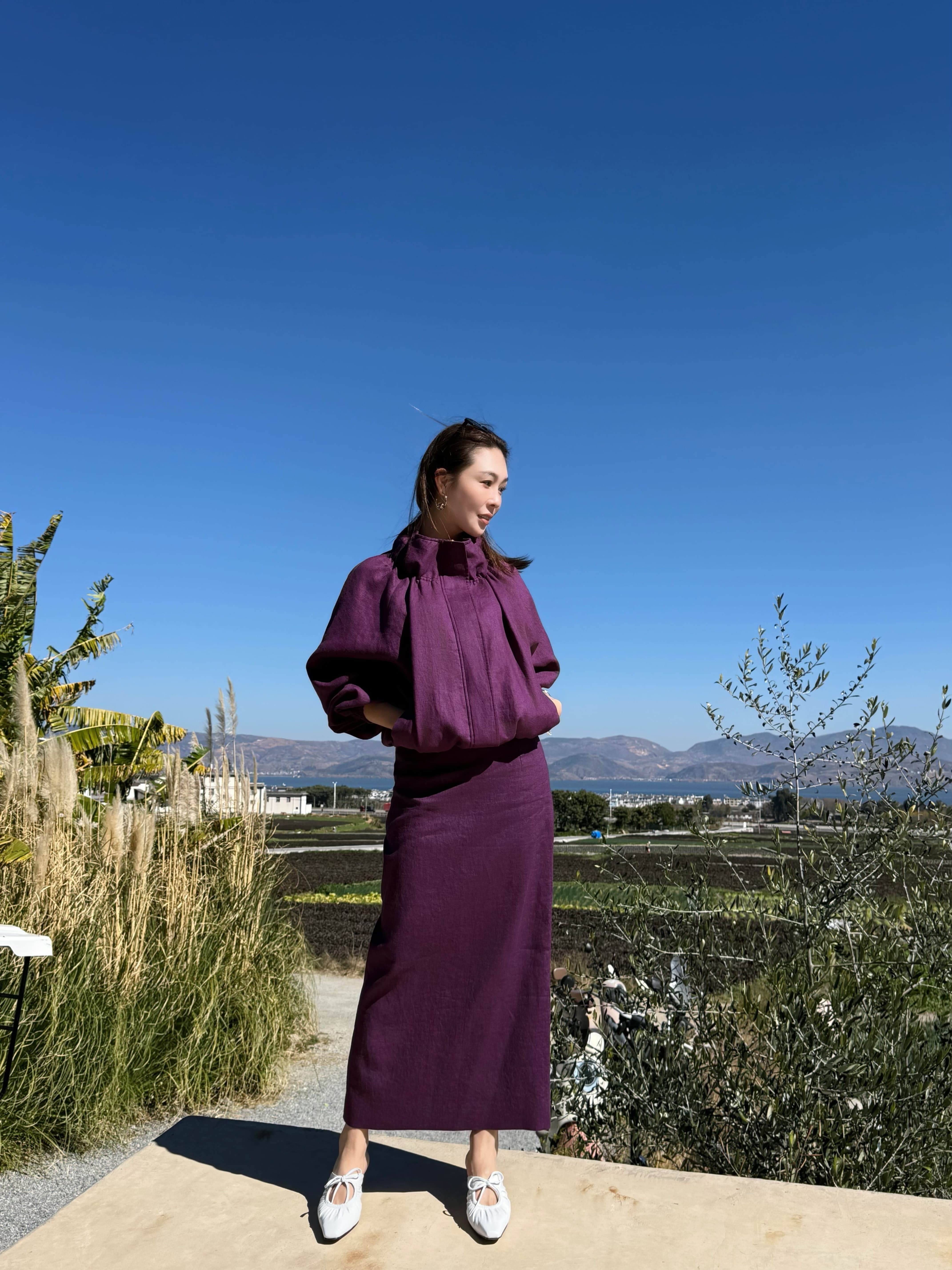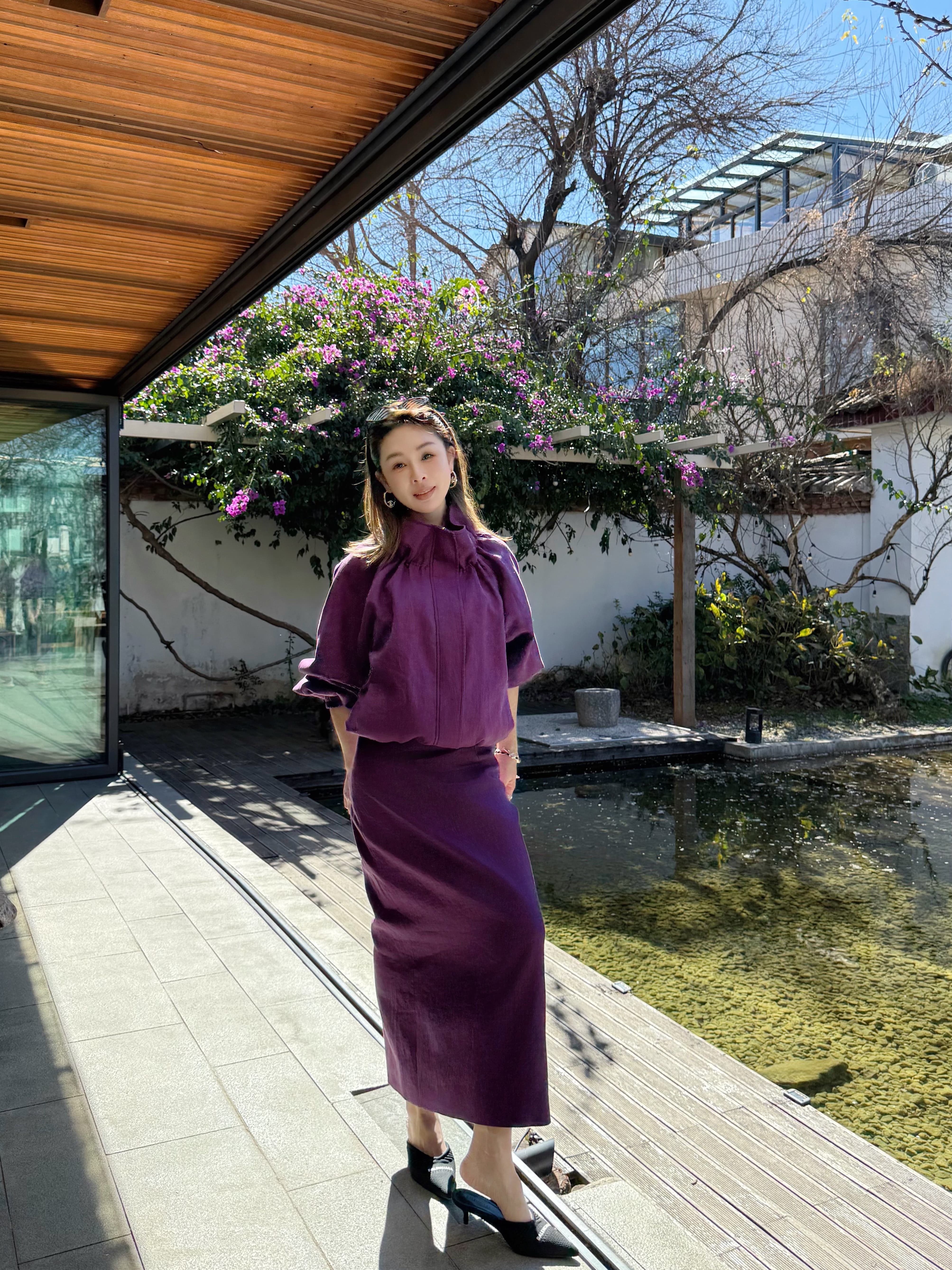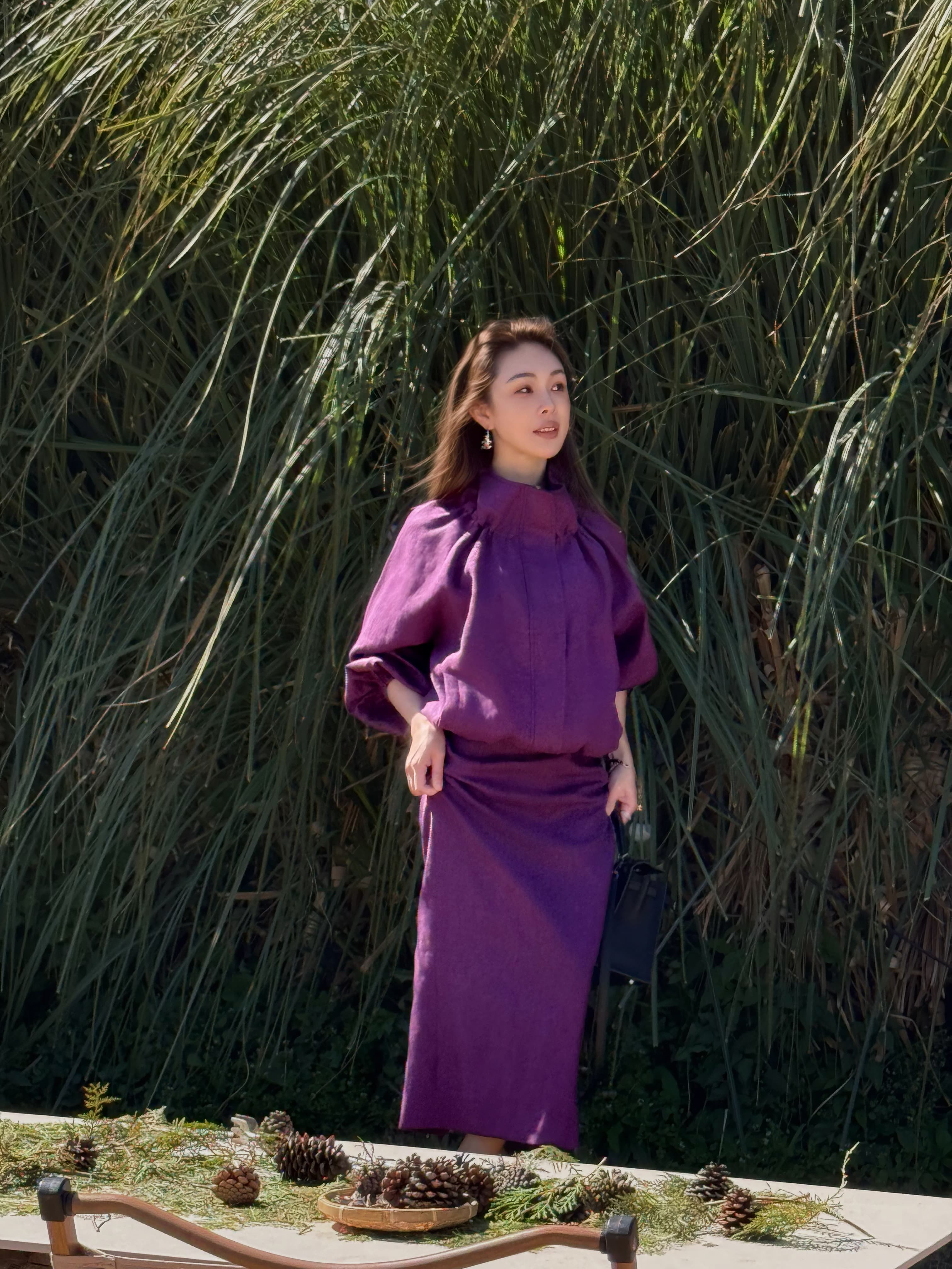 其次上衣的袖型是略微蓬松大气的灯笼袖设计