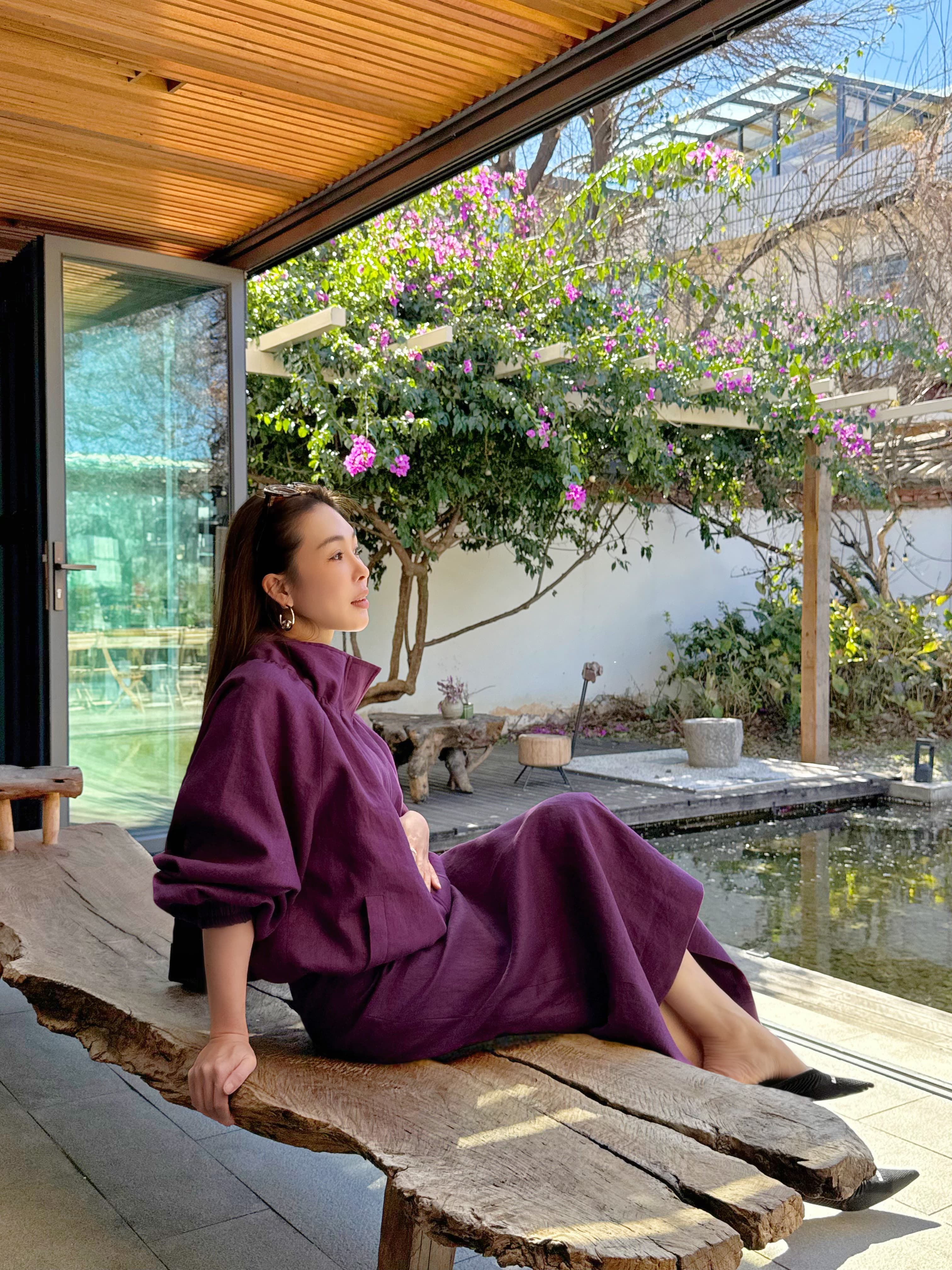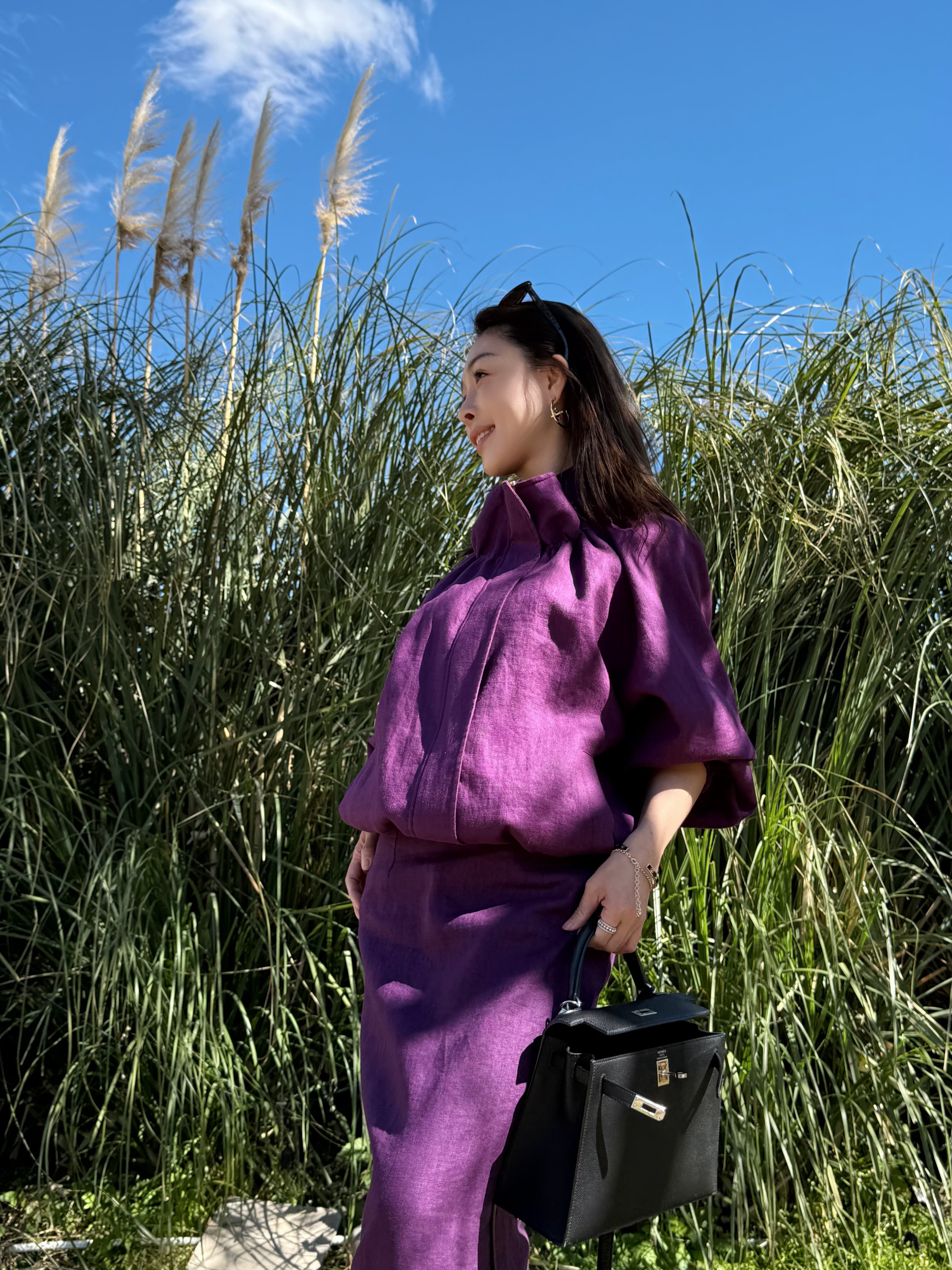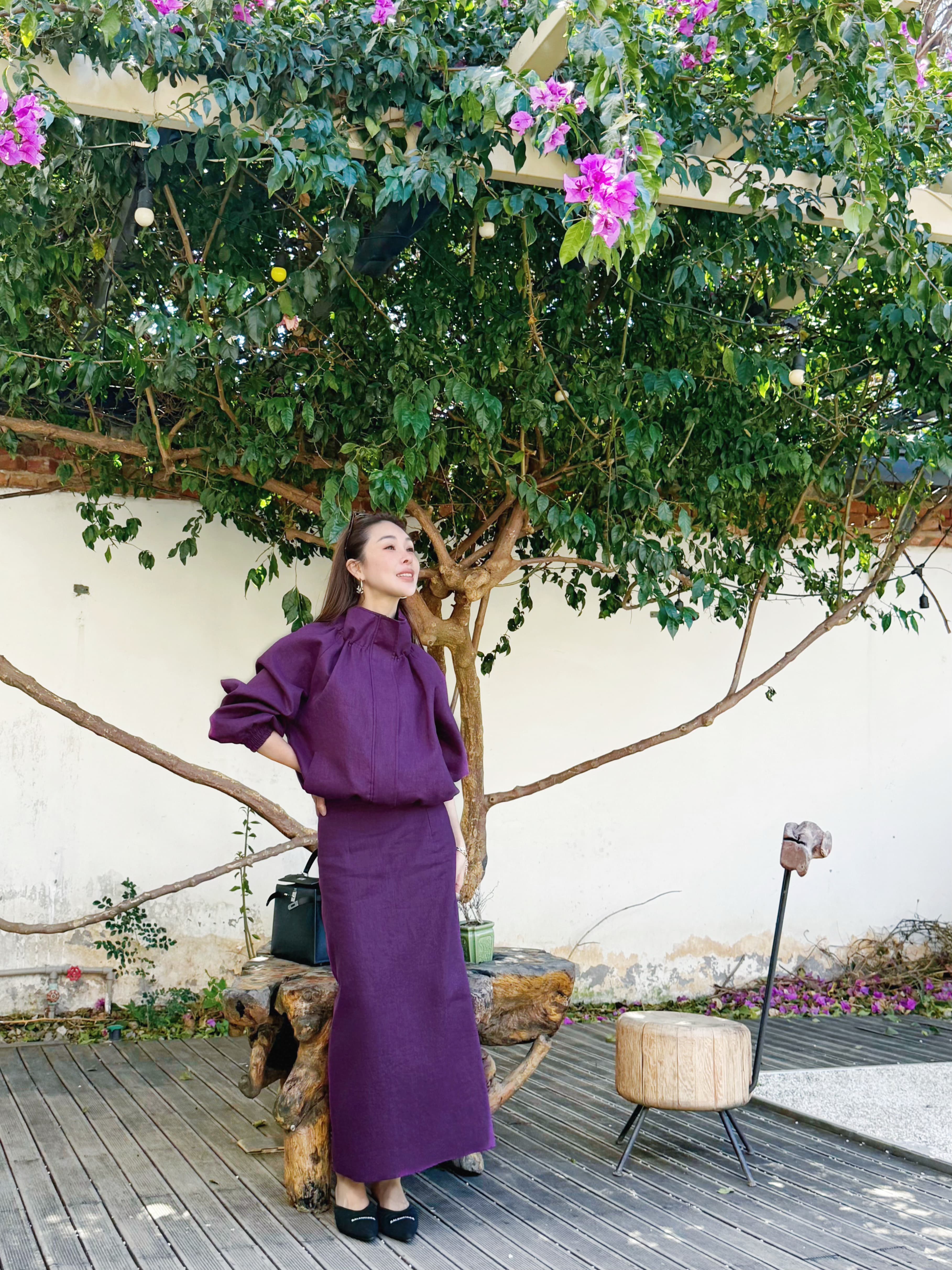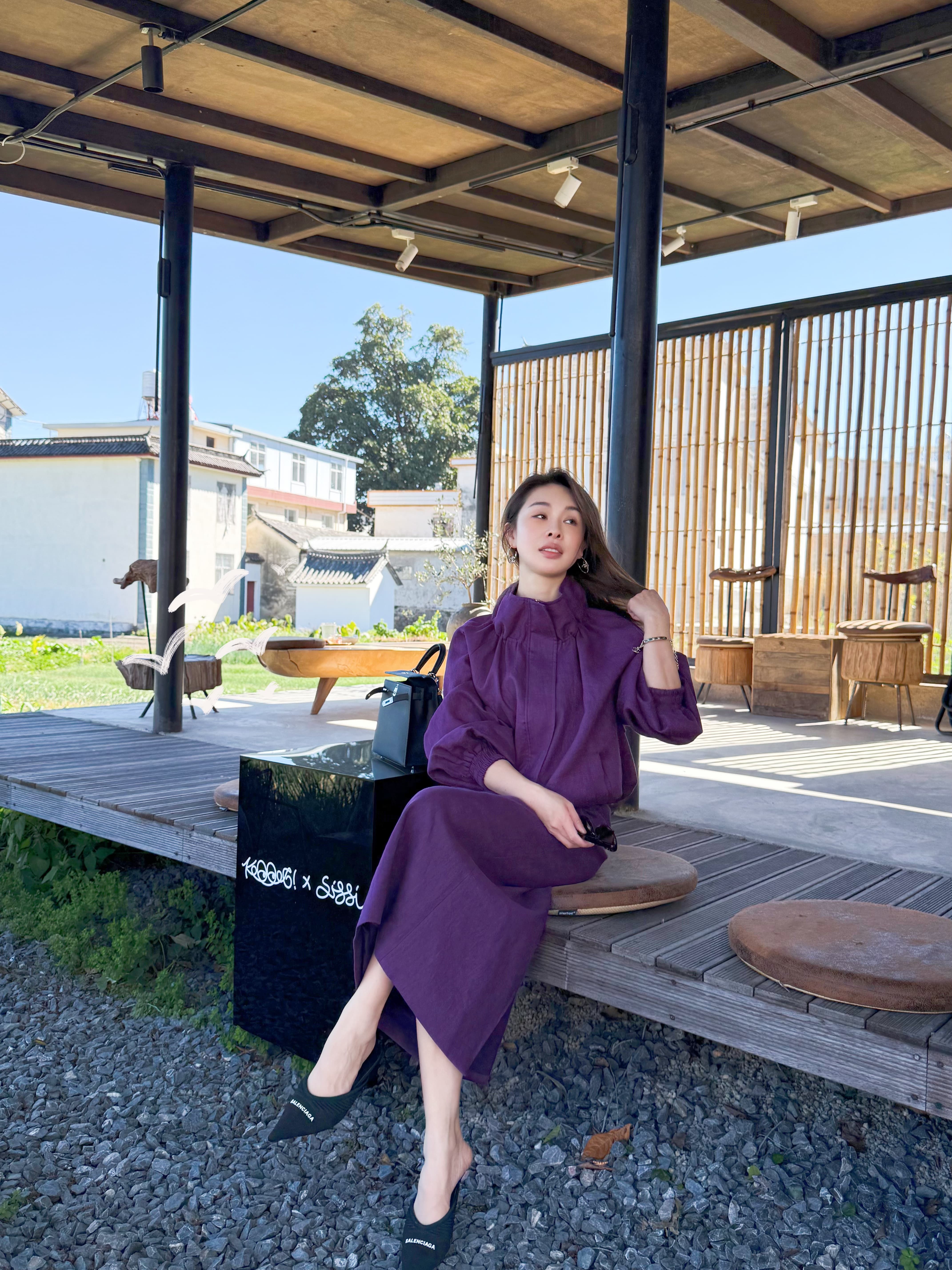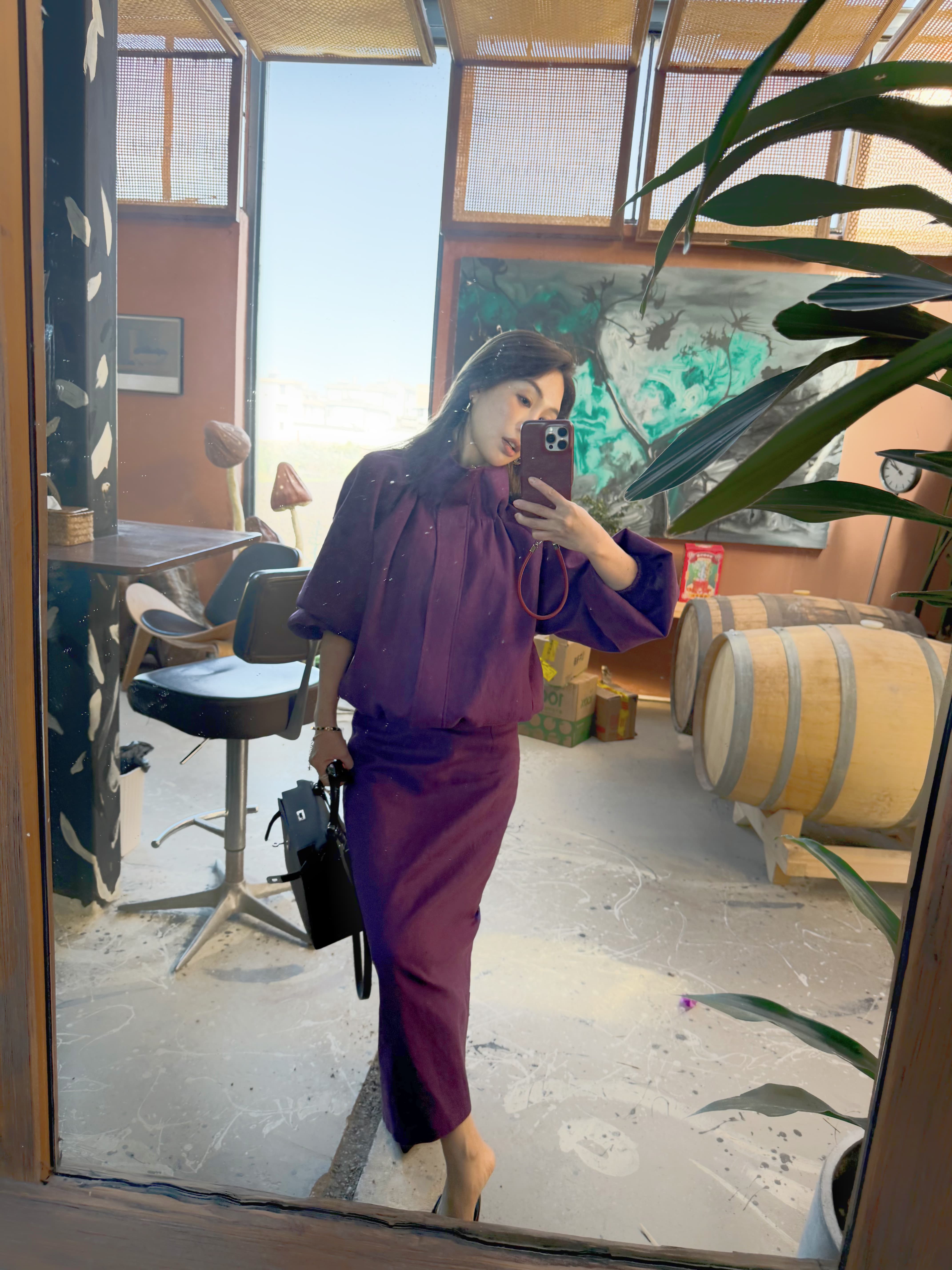 其次上衣的袖型是略微蓬松大气的灯笼袖设计