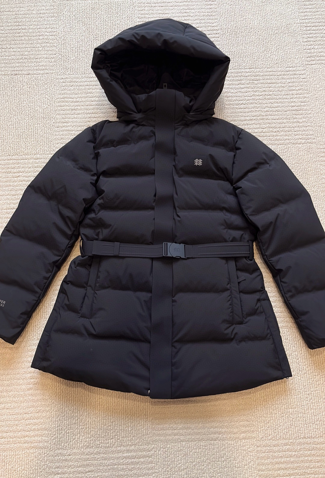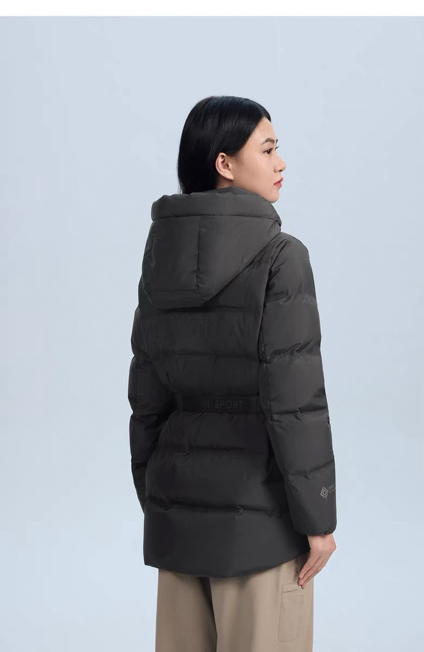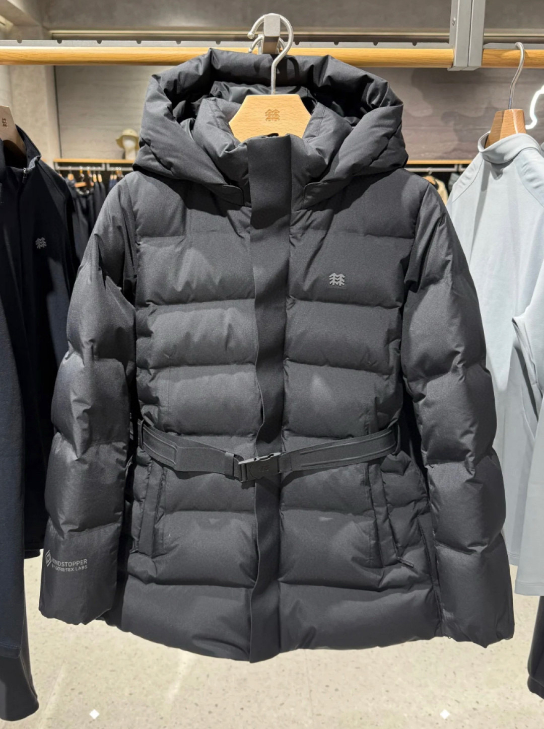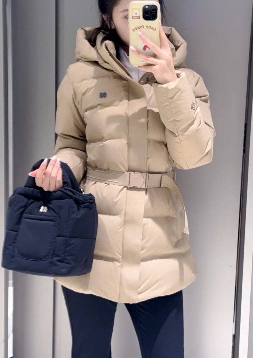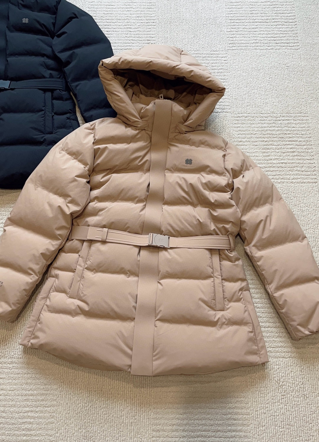 少量补到货 韩国单 纯圆正 两颗树 防风挡雨透气不钻绒 女士腰带连帽鹅绒 羽绒服 可户外可日常 只有黑色