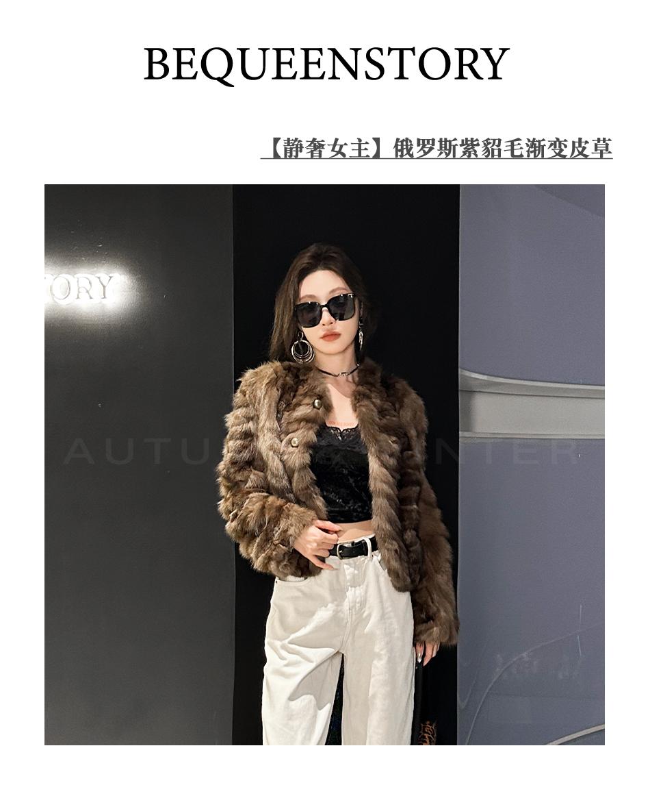 BeQueenStory【静奢女主】肌理感俄罗斯紫貂毛渐变冬季保暖皮草秋冬