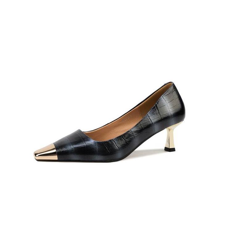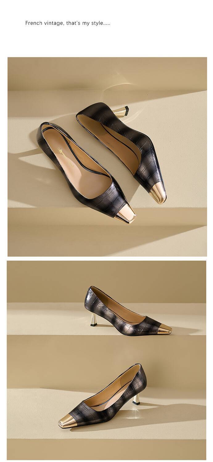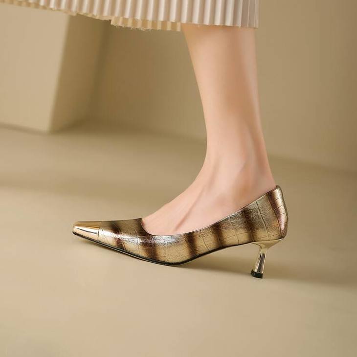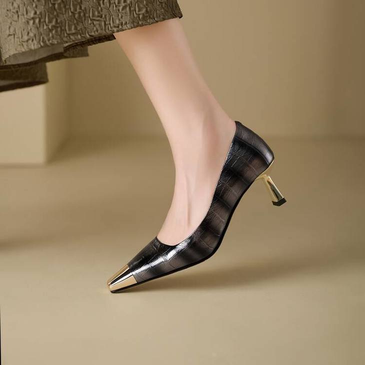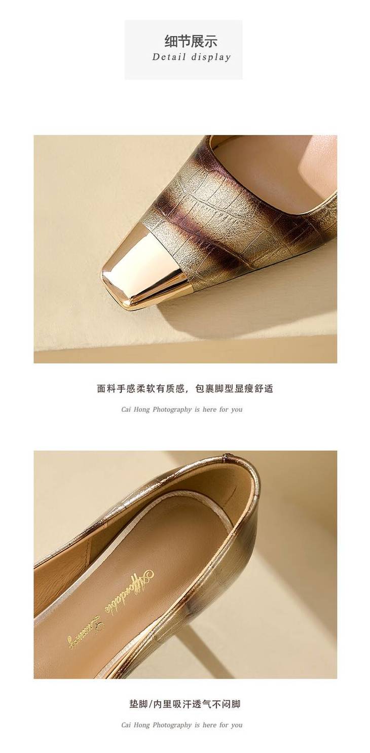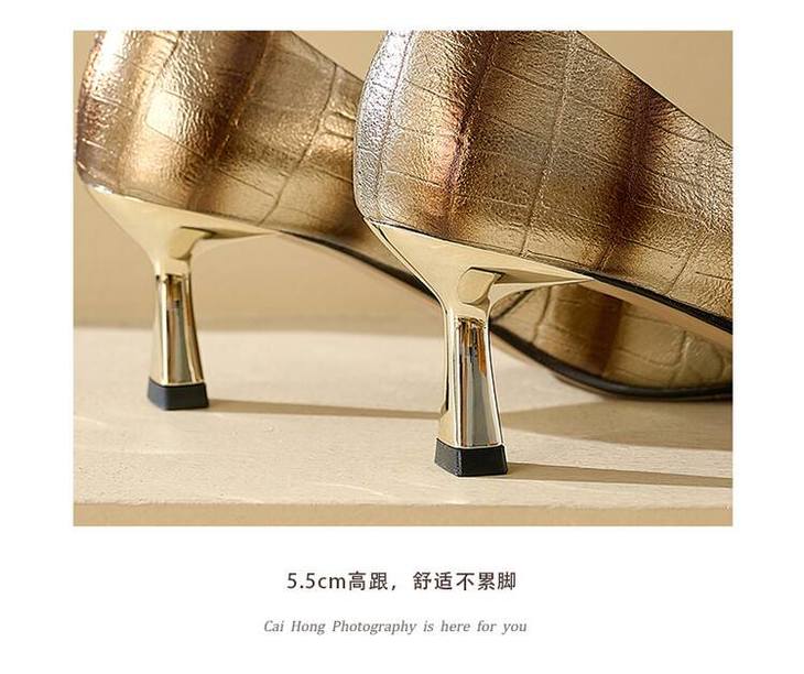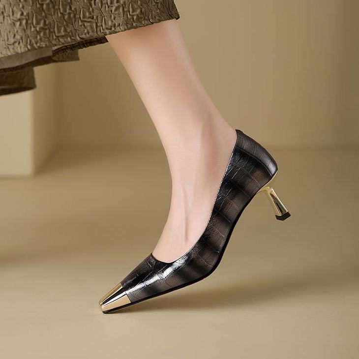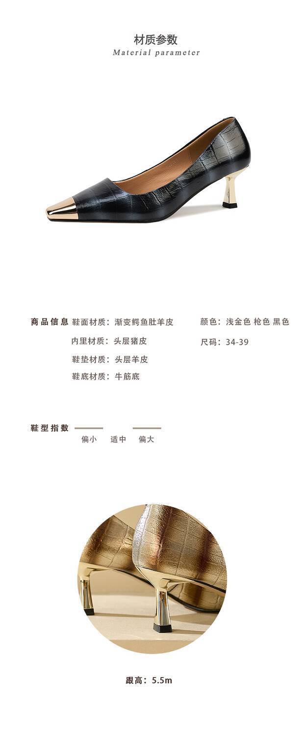 【预售5天】2024新款欧美头层鳄鱼肚头层羊皮性感金属包头气质时尚单鞋QSNX&A663