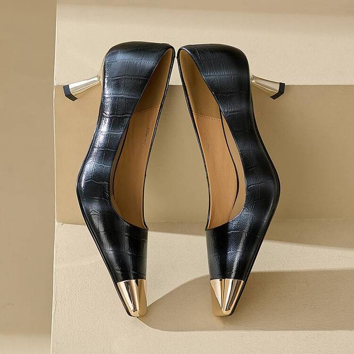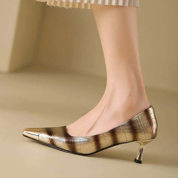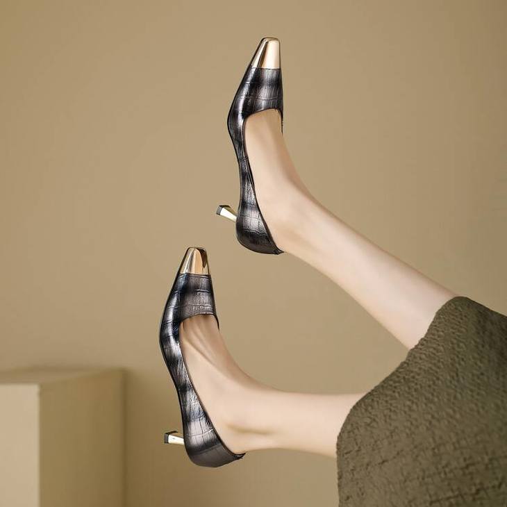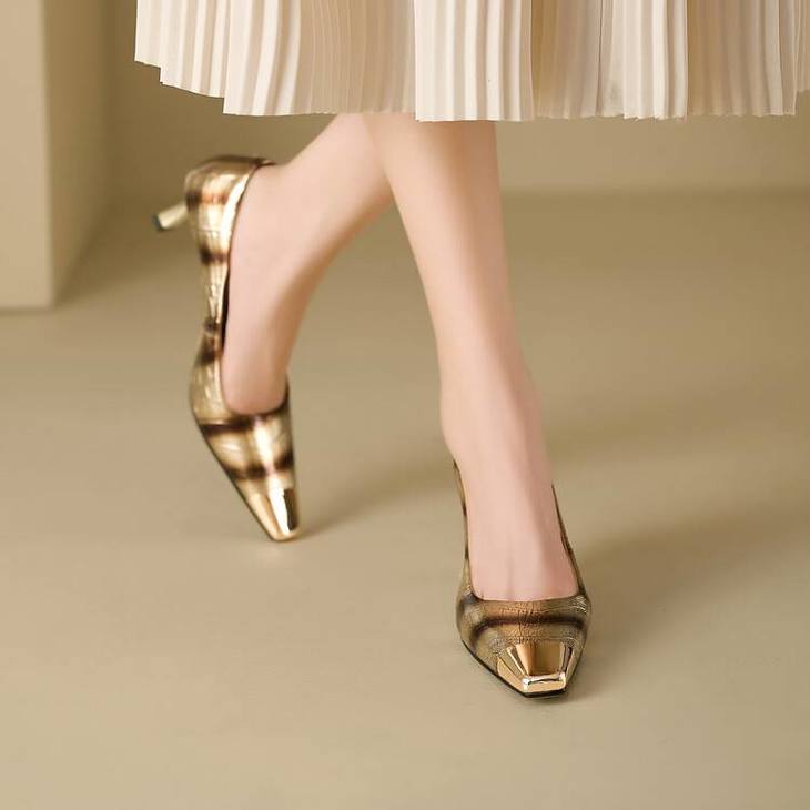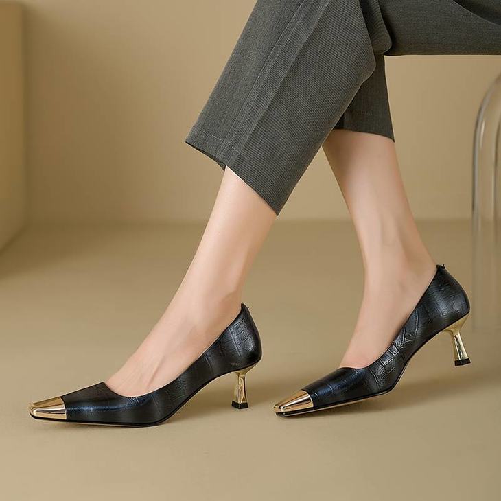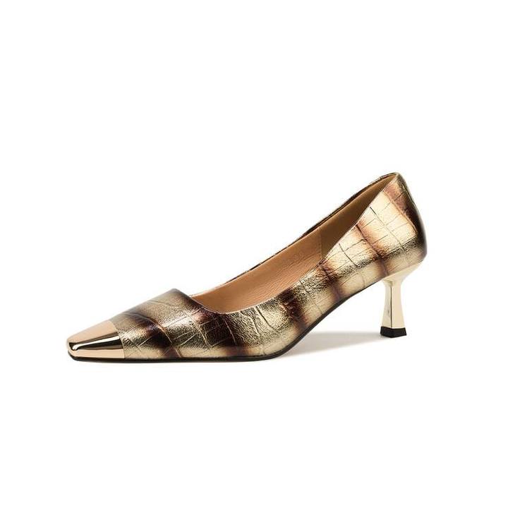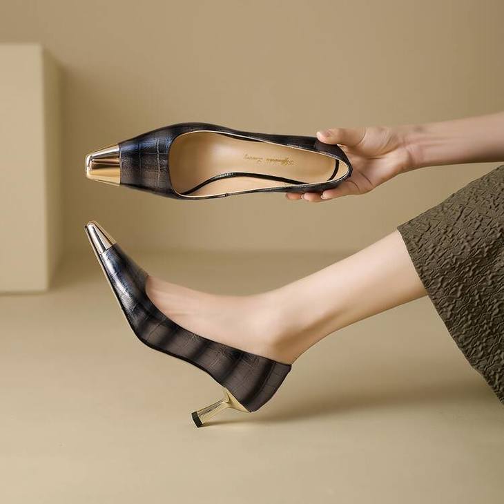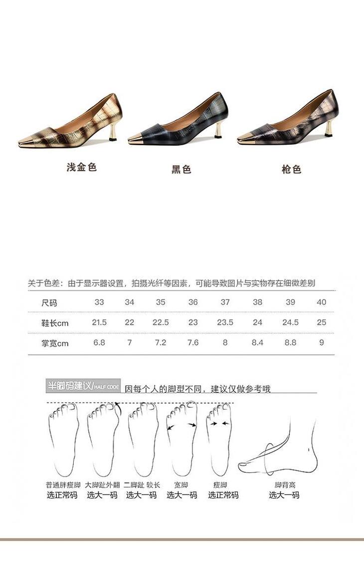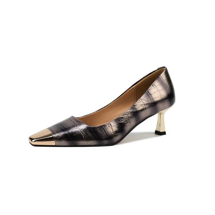 【预售5天】2024新款欧美头层鳄鱼肚头层羊皮性感金属包头气质时尚单鞋QSNX&A663