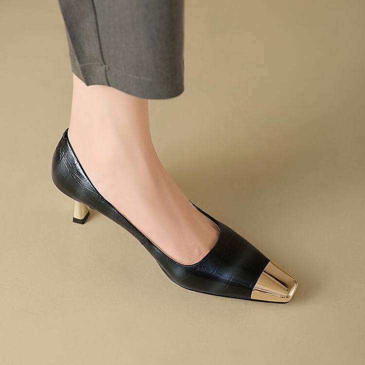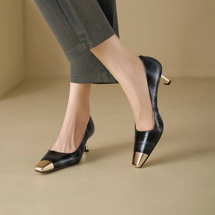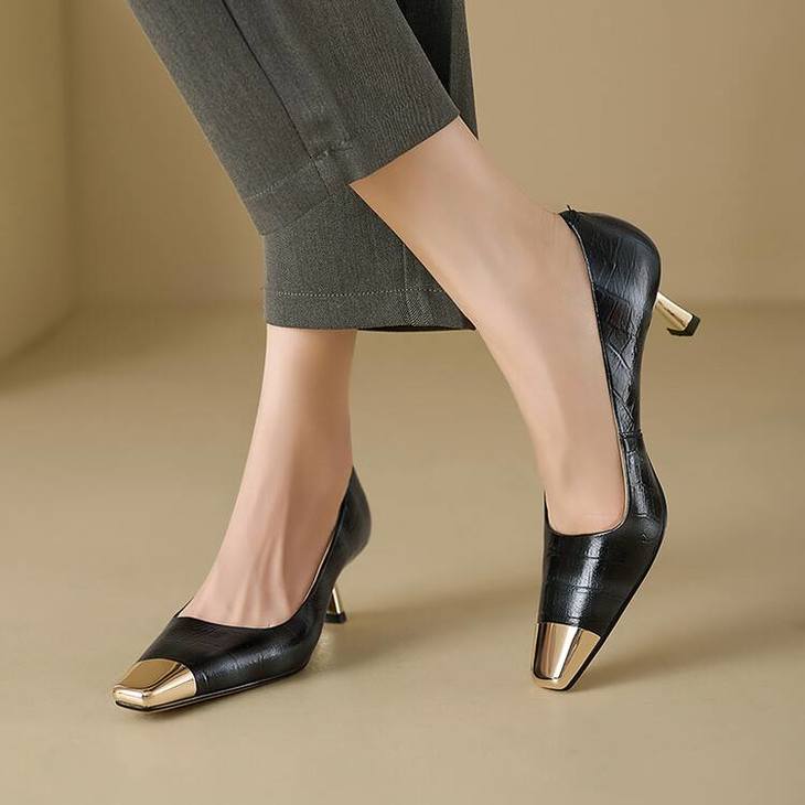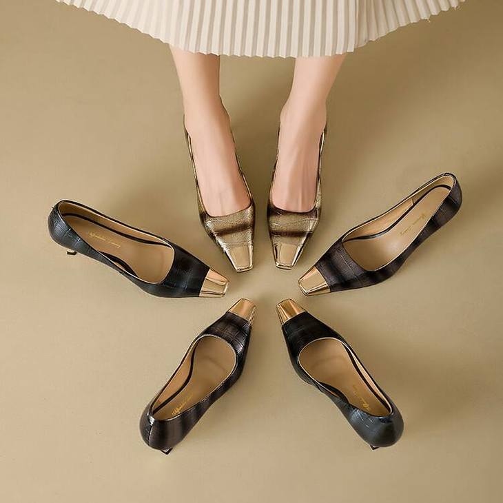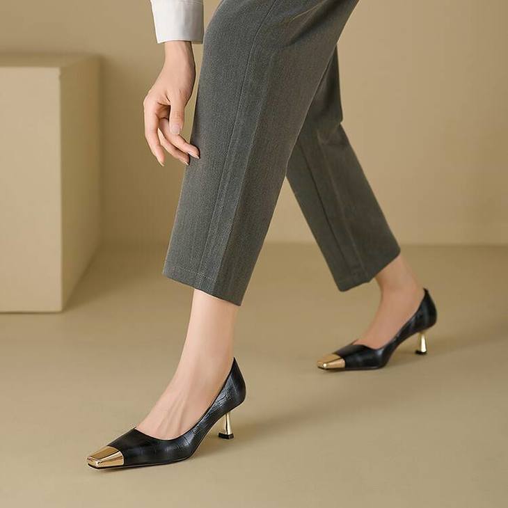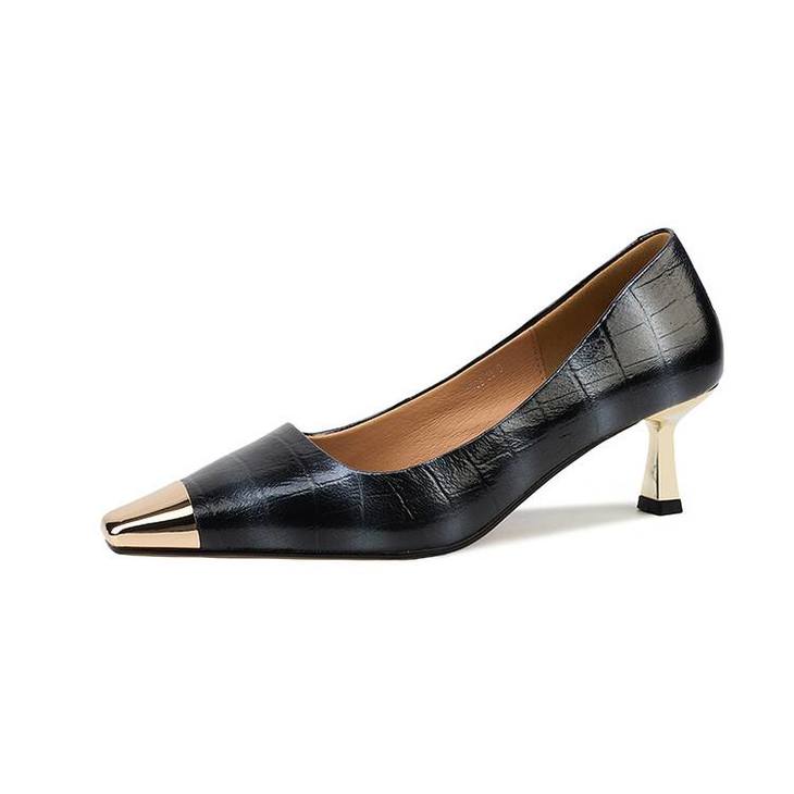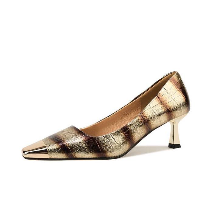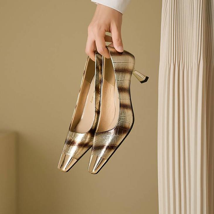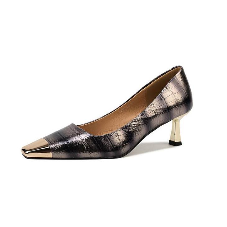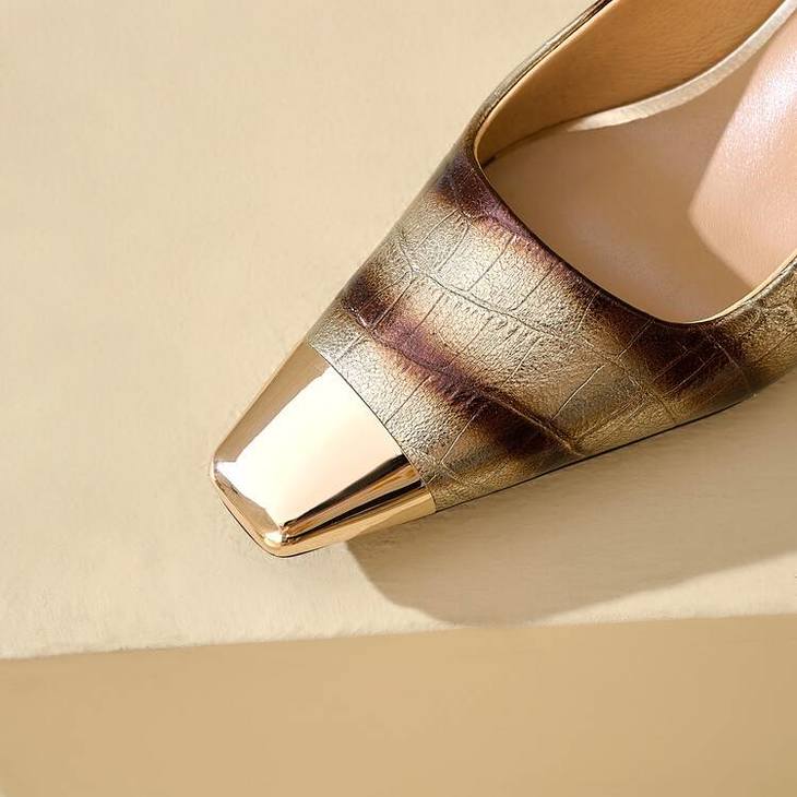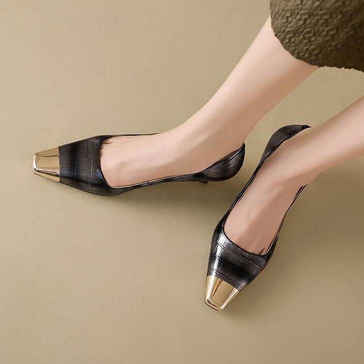 【预售5天】2024新款欧美头层鳄鱼肚头层羊皮性感金属包头气质时尚单鞋QSNX&A663