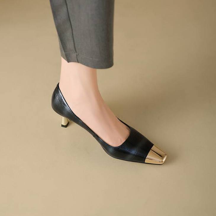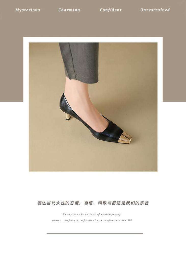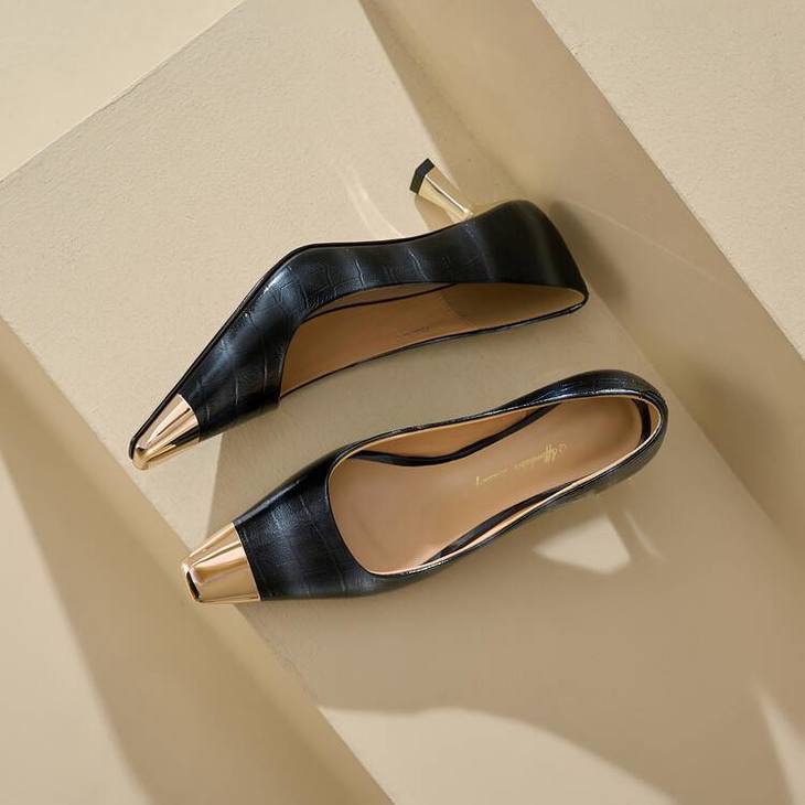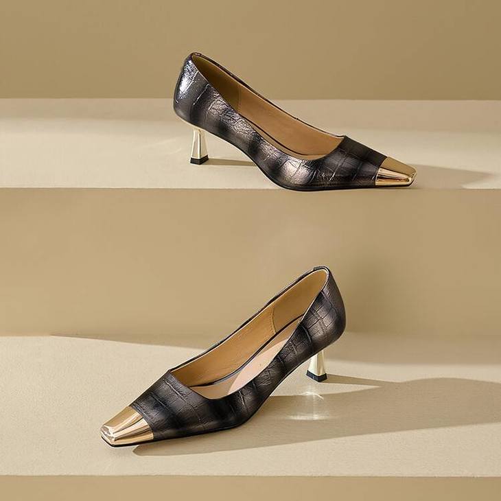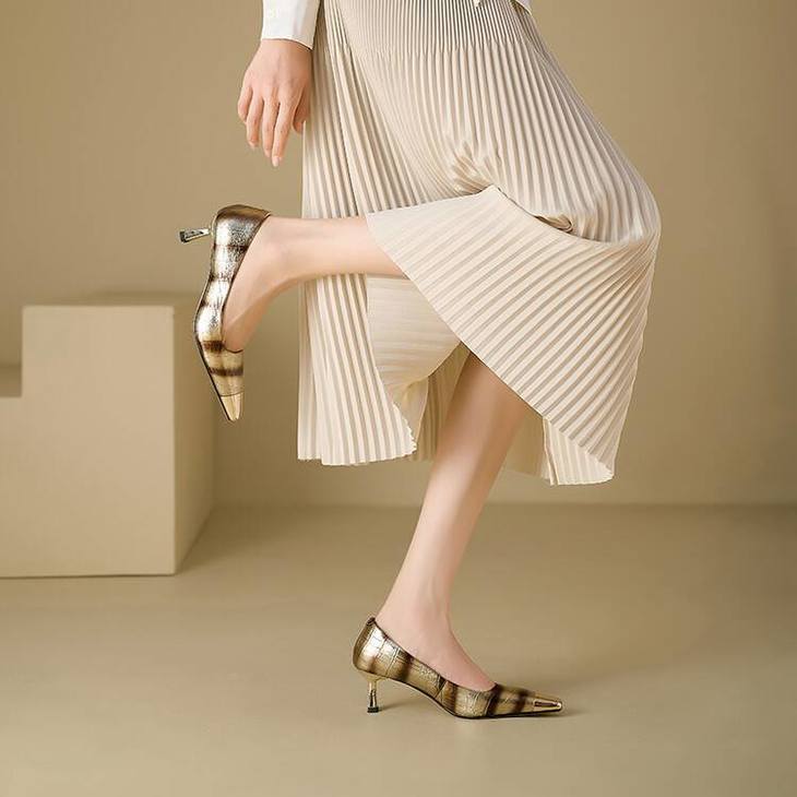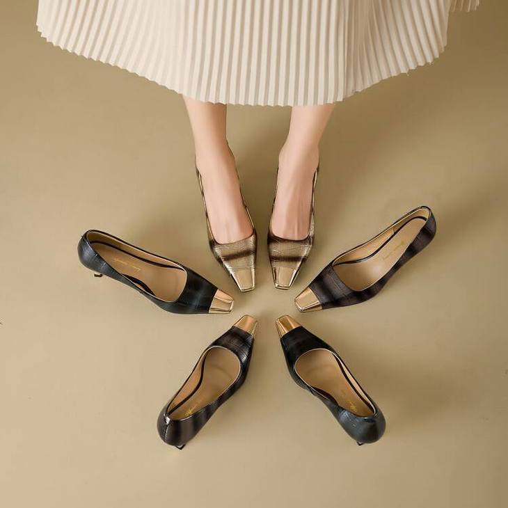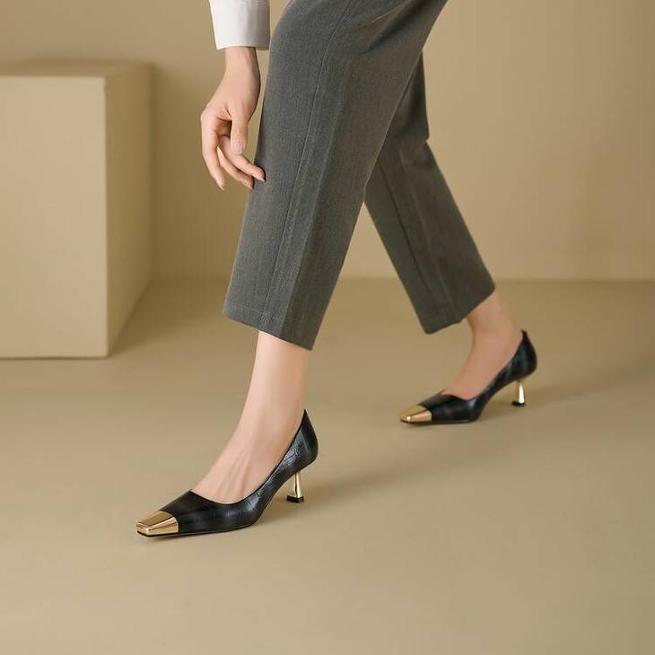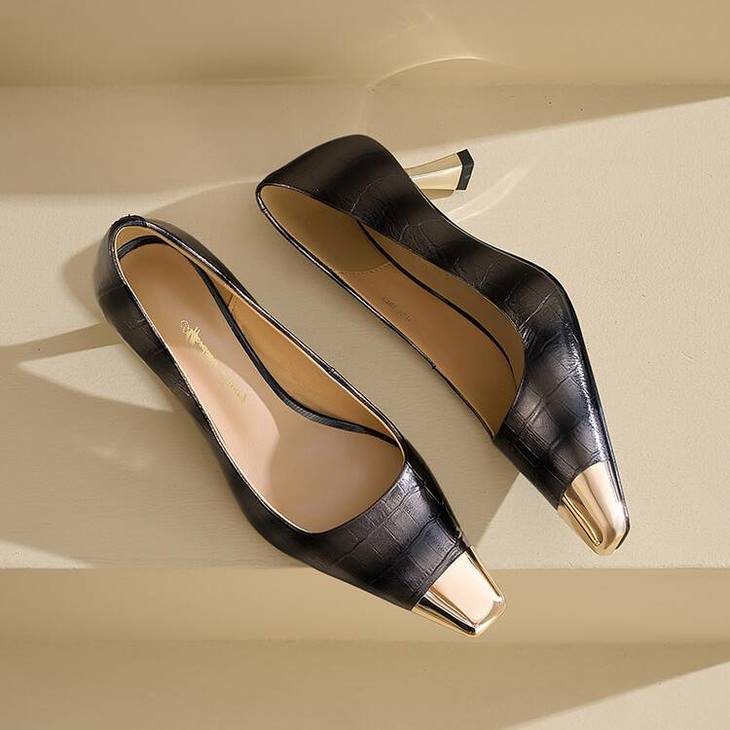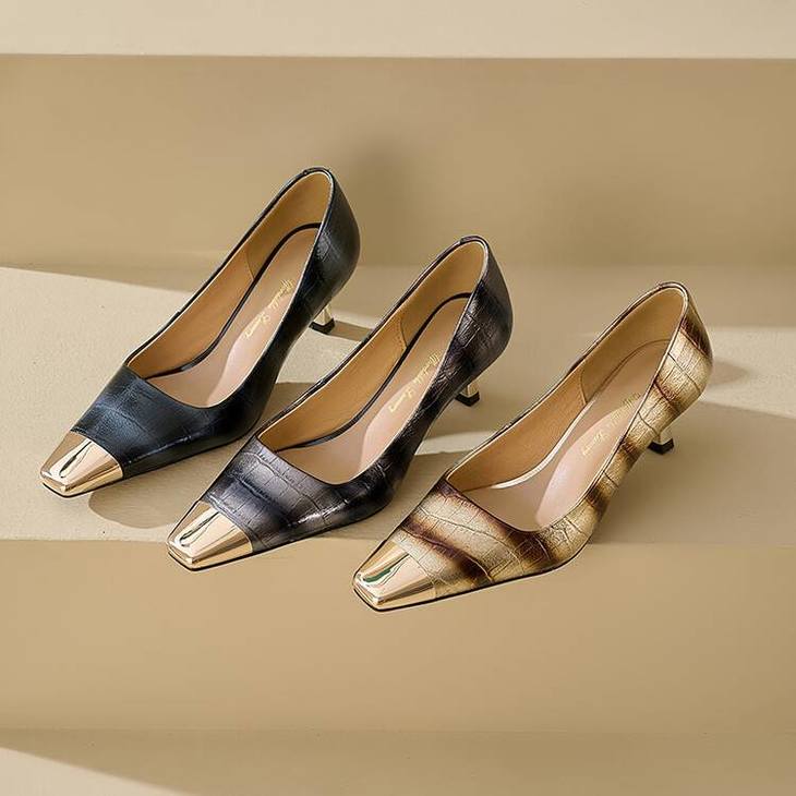 【预售5天】2024新款欧美头层鳄鱼肚头层羊皮性感金属包头气质时尚单鞋QSNX&A663