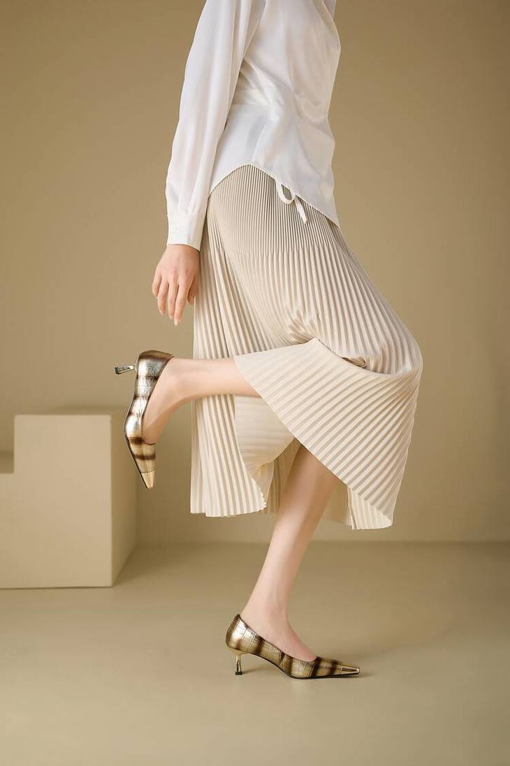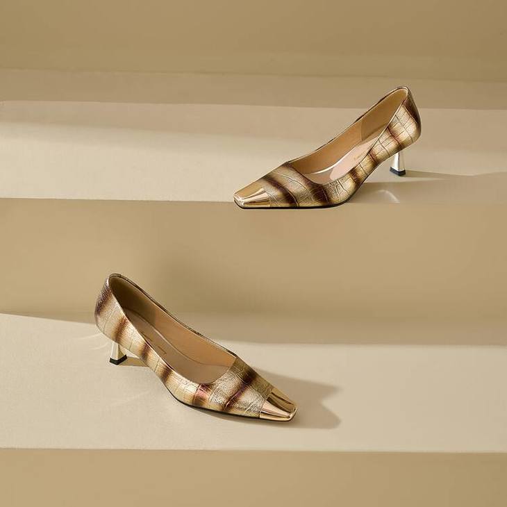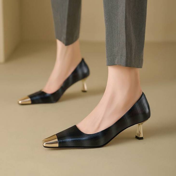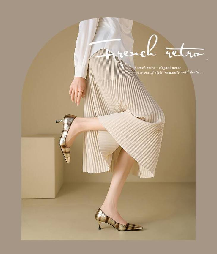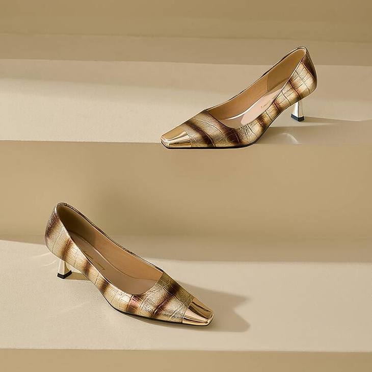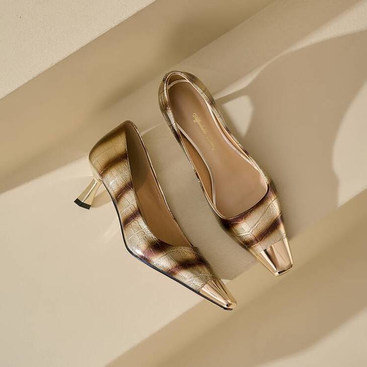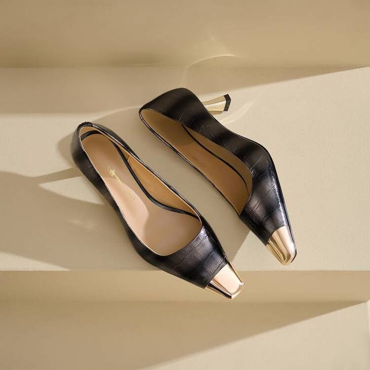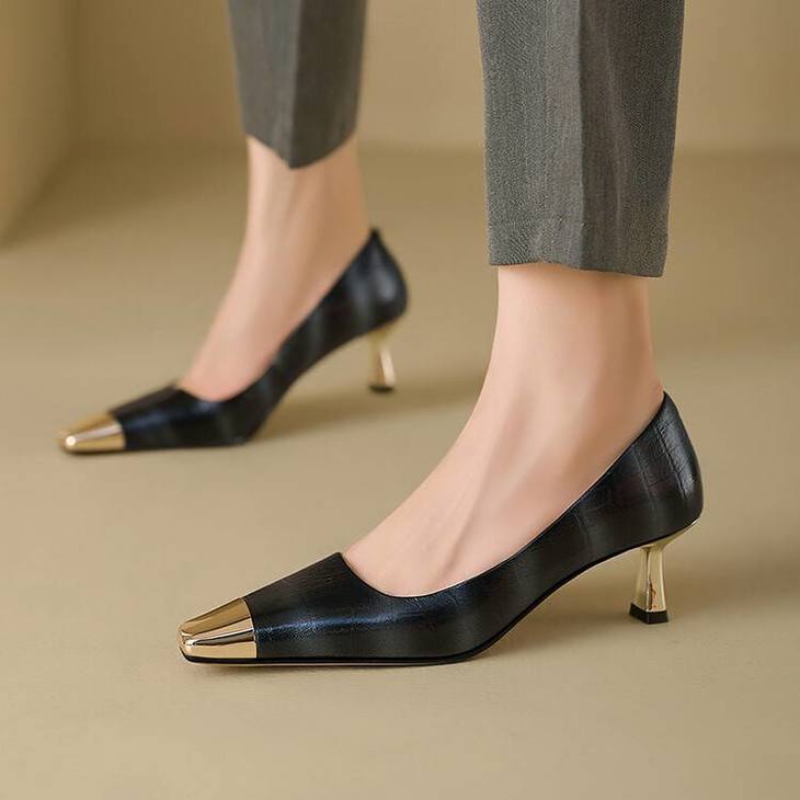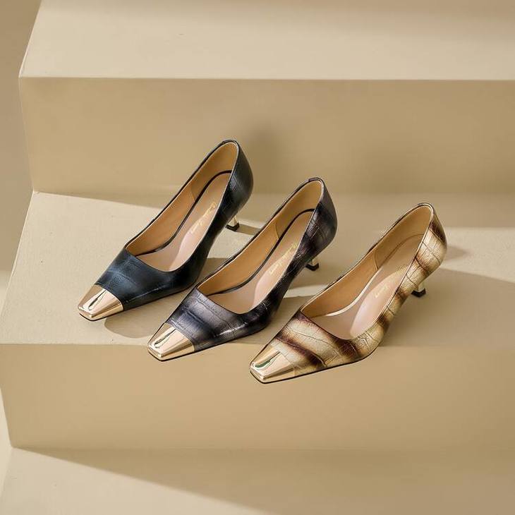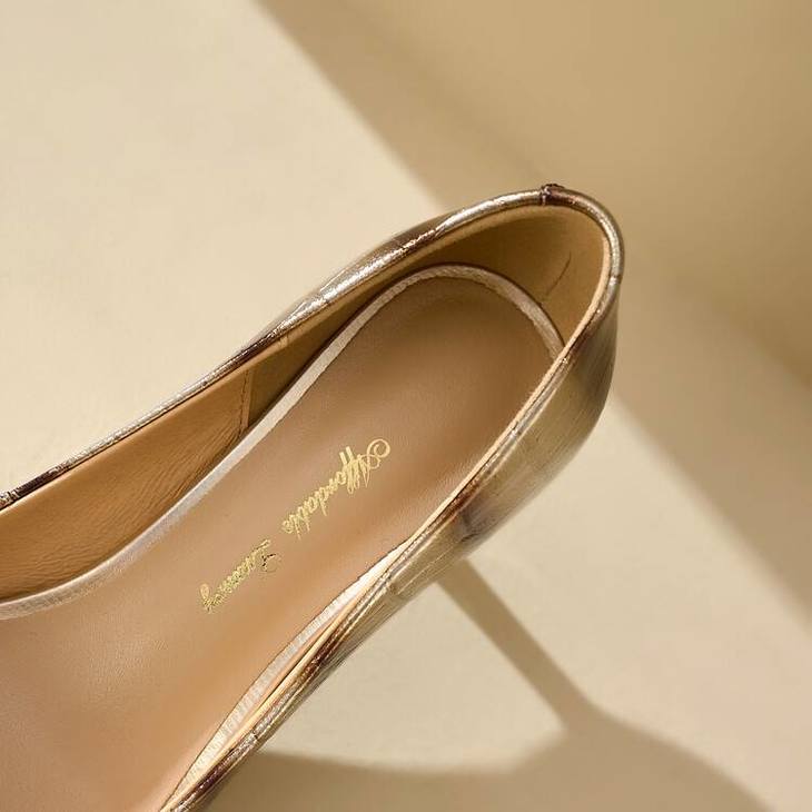 【预售5天】2024新款欧美头层鳄鱼肚头层羊皮性感金属包头气质时尚单鞋QSNX&A663
