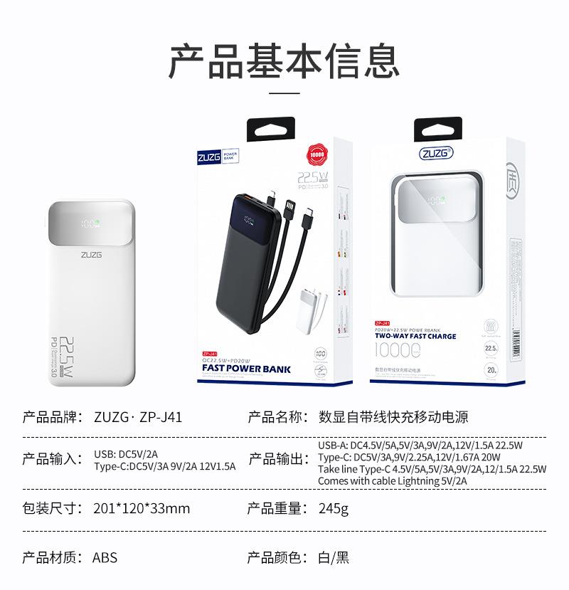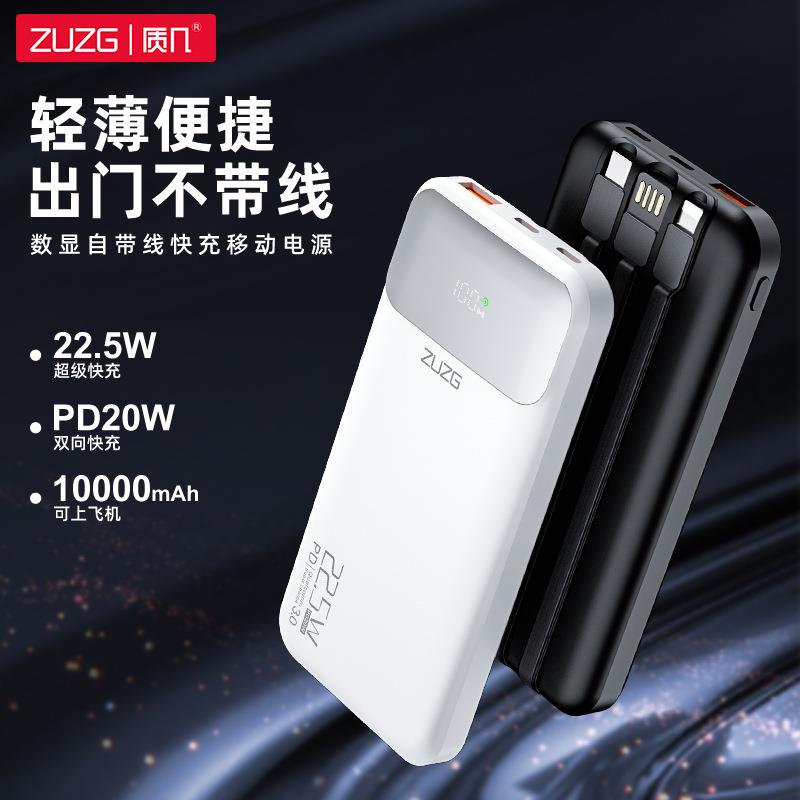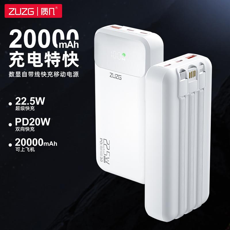 10000毫安便携自带线充电宝 超大容量22.5w快充20000毫安移动电源