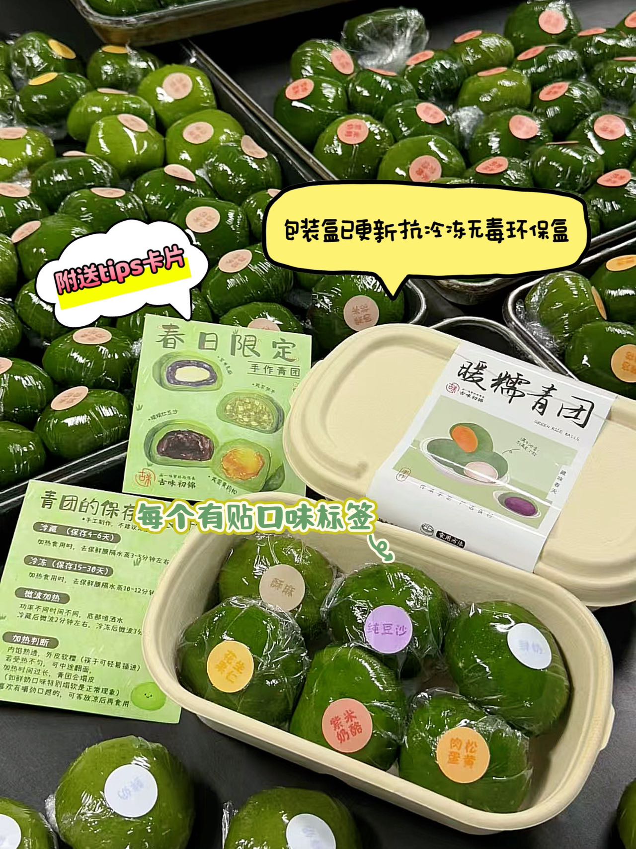 蒸款青团的保存及食用小贴士: