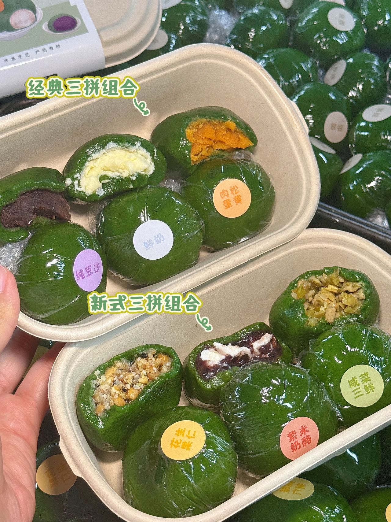 【口味】手磨豆沙、 酥麻、鲜奶、紫米肉松、紫米奶酪、 咸菜二鲜、肉松蛋黄、花生芝麻