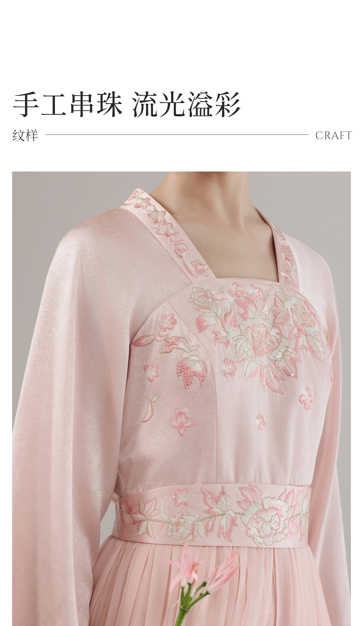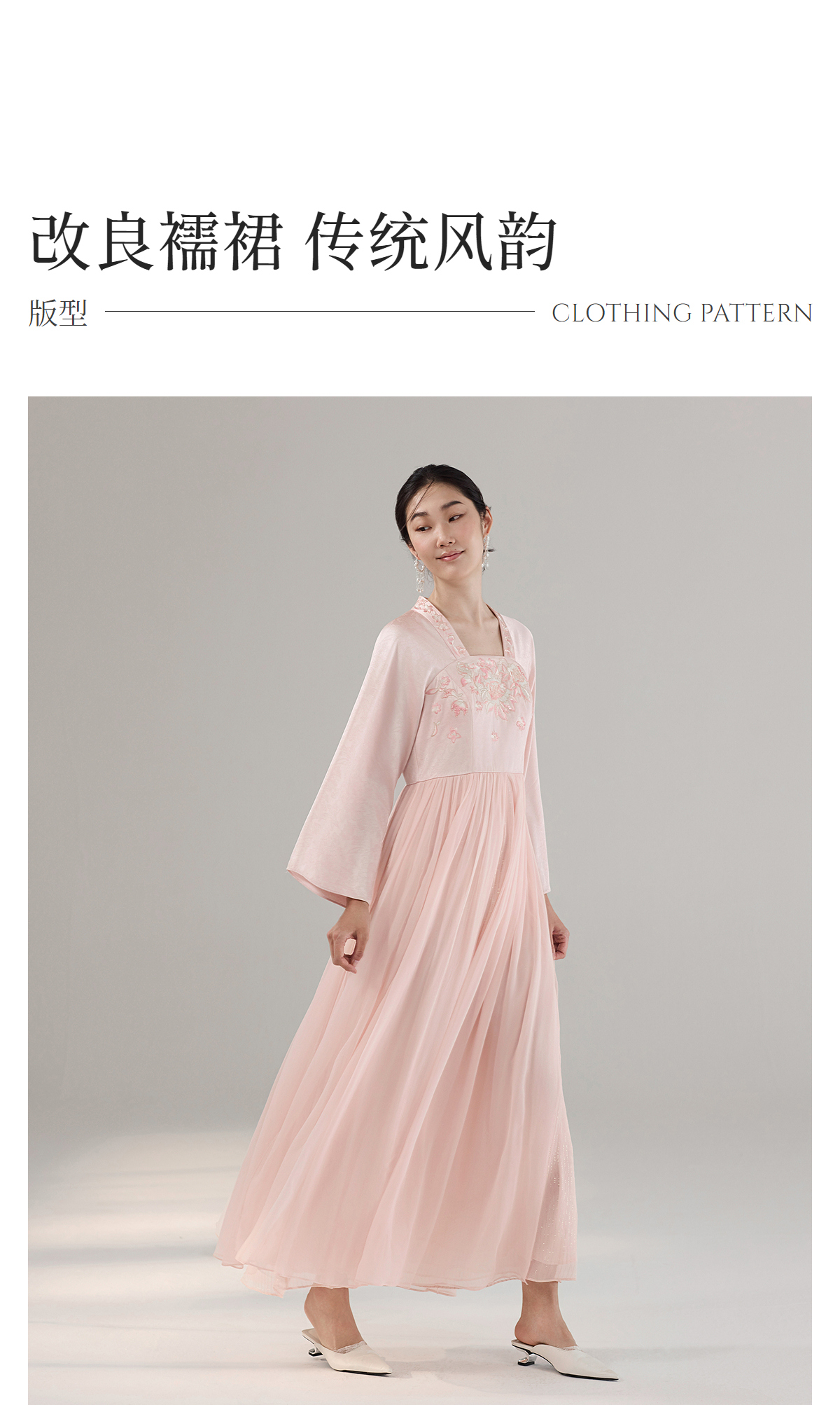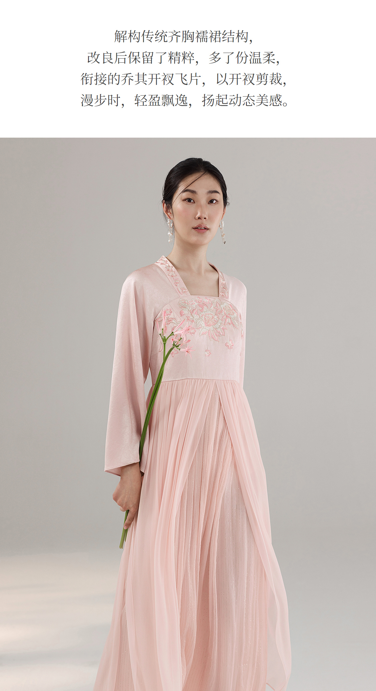 【林栖设计小店】【手工串珠】生活在左绣花连衣裙拼飞片2025秋季新款国风改良襦裙T1953333