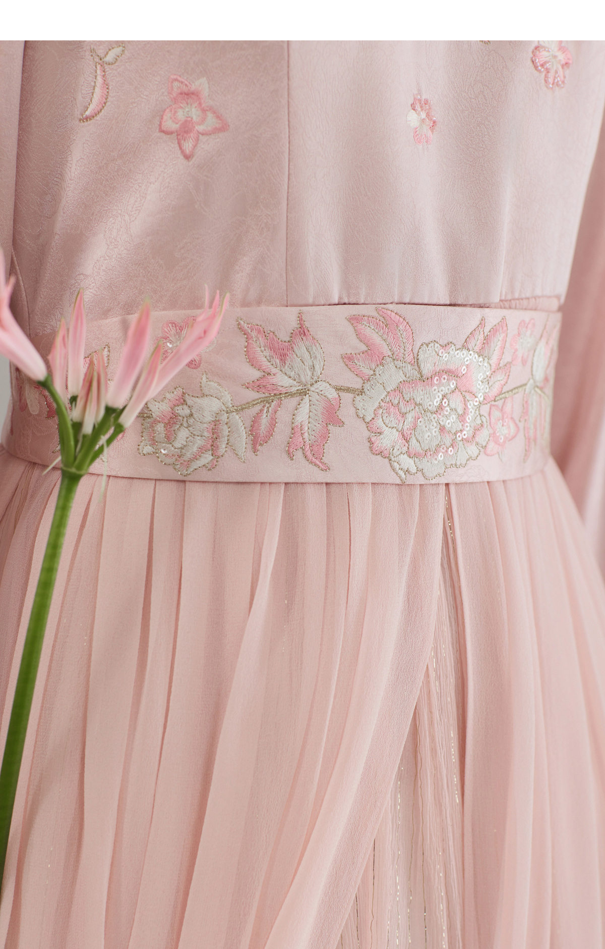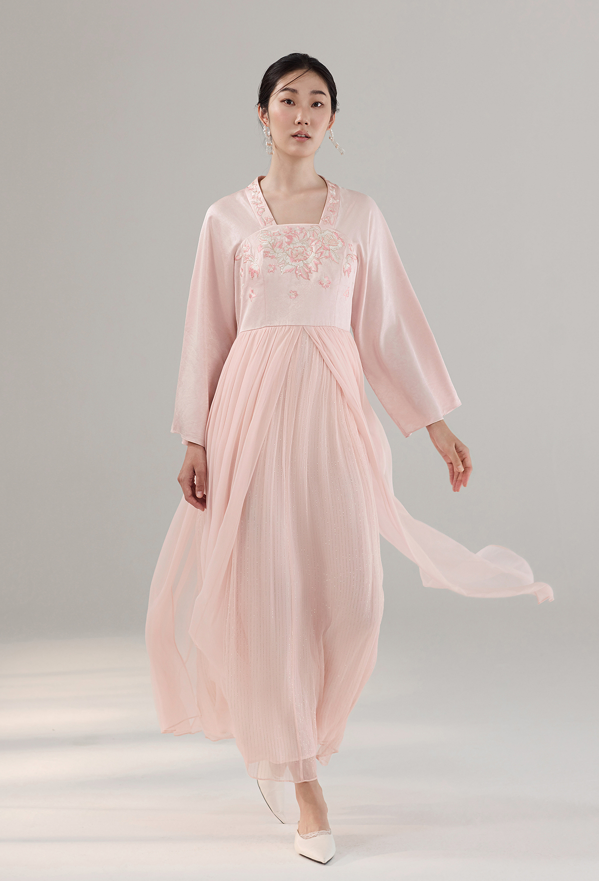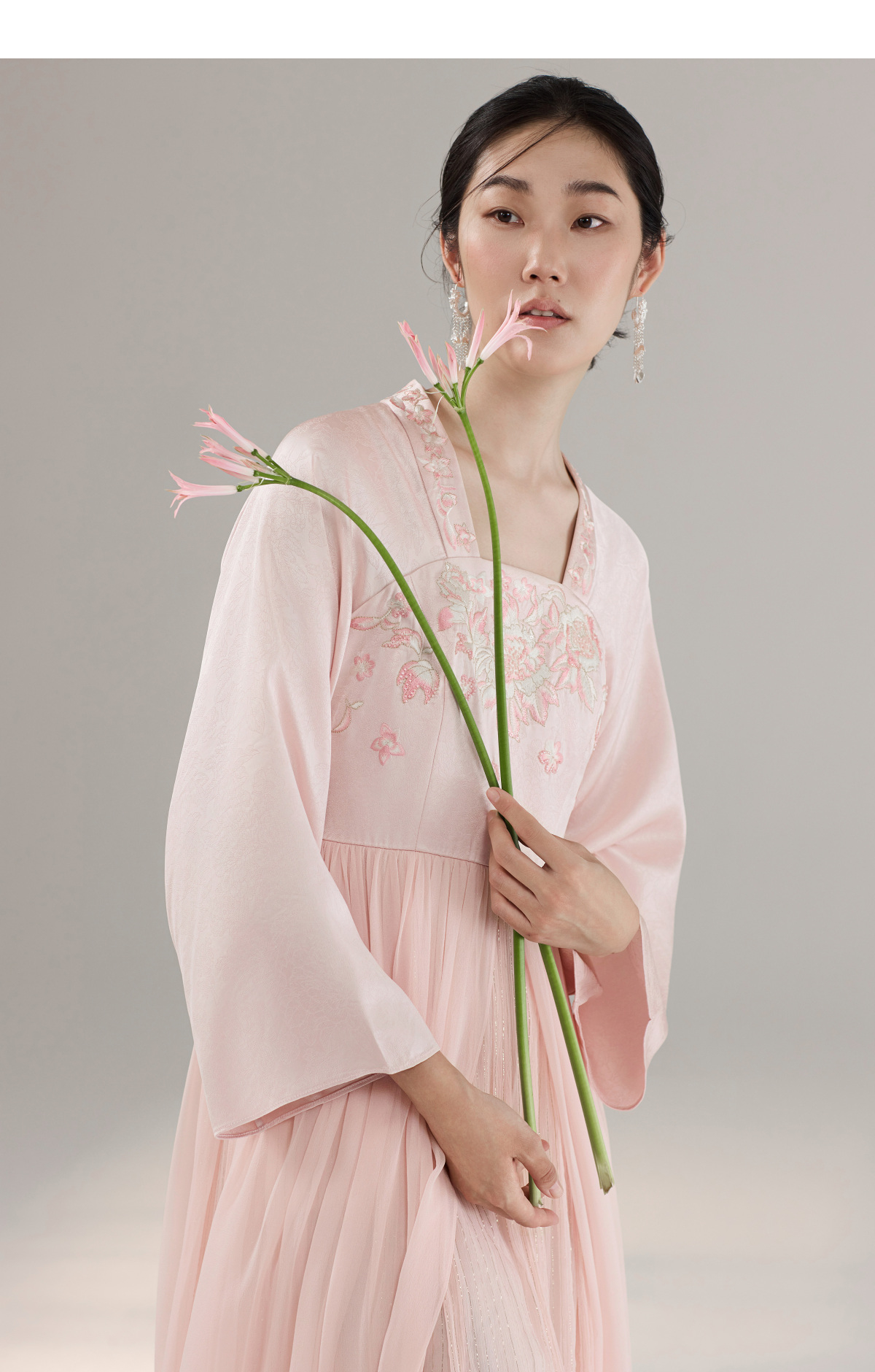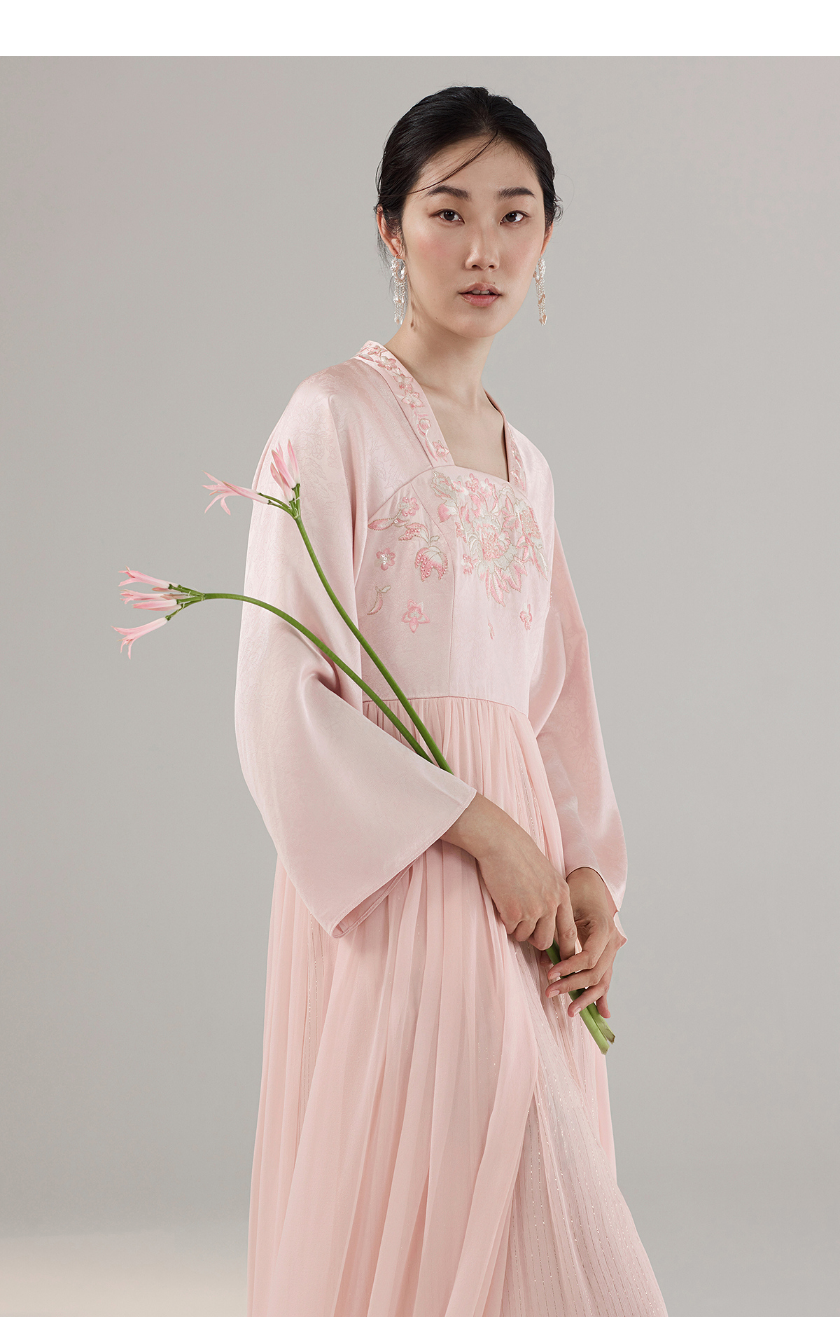 【林栖设计小店】【手工串珠】生活在左绣花连衣裙拼飞片2025秋季新款国风改良襦裙T1953333