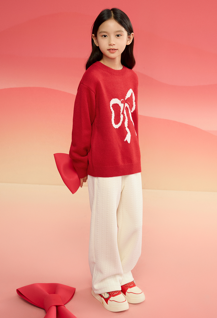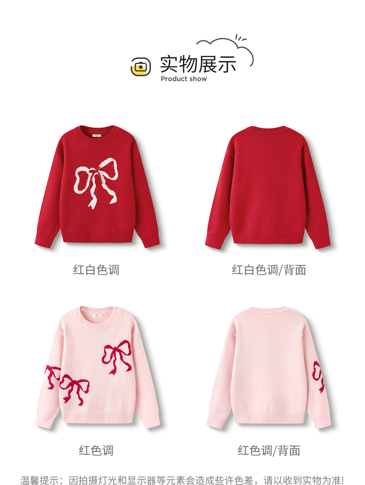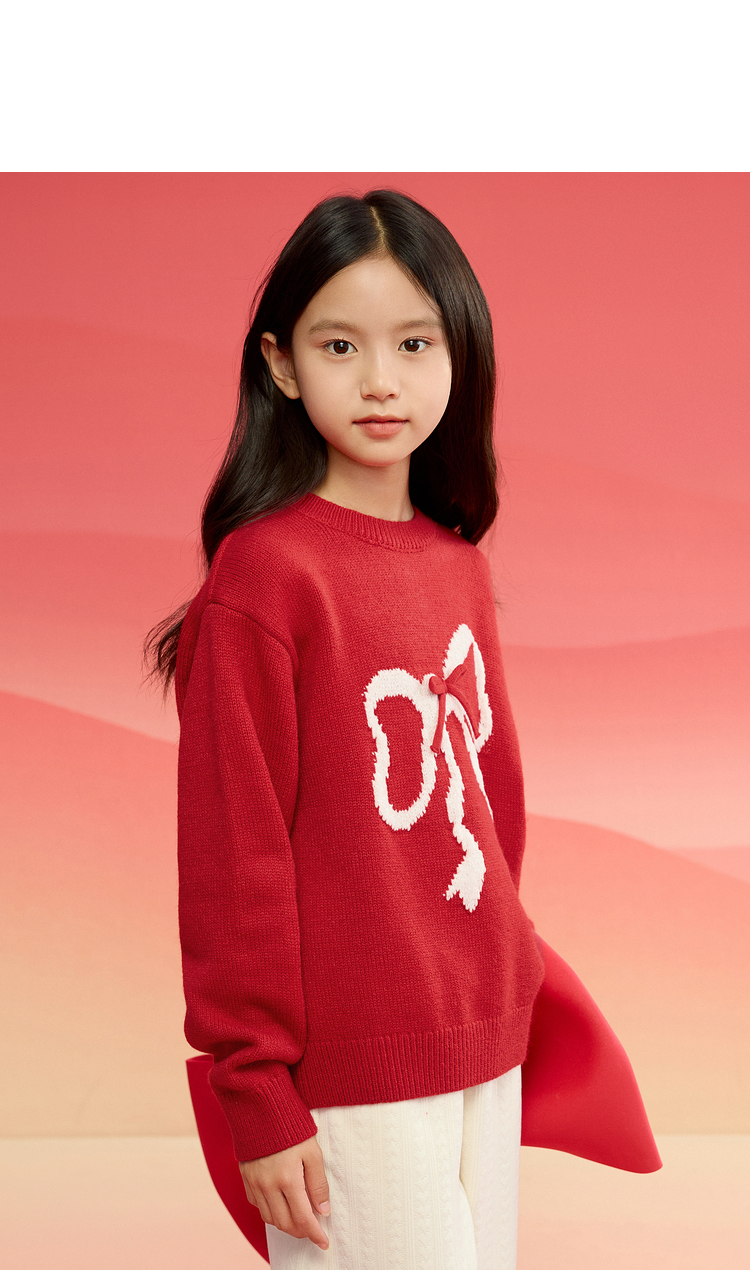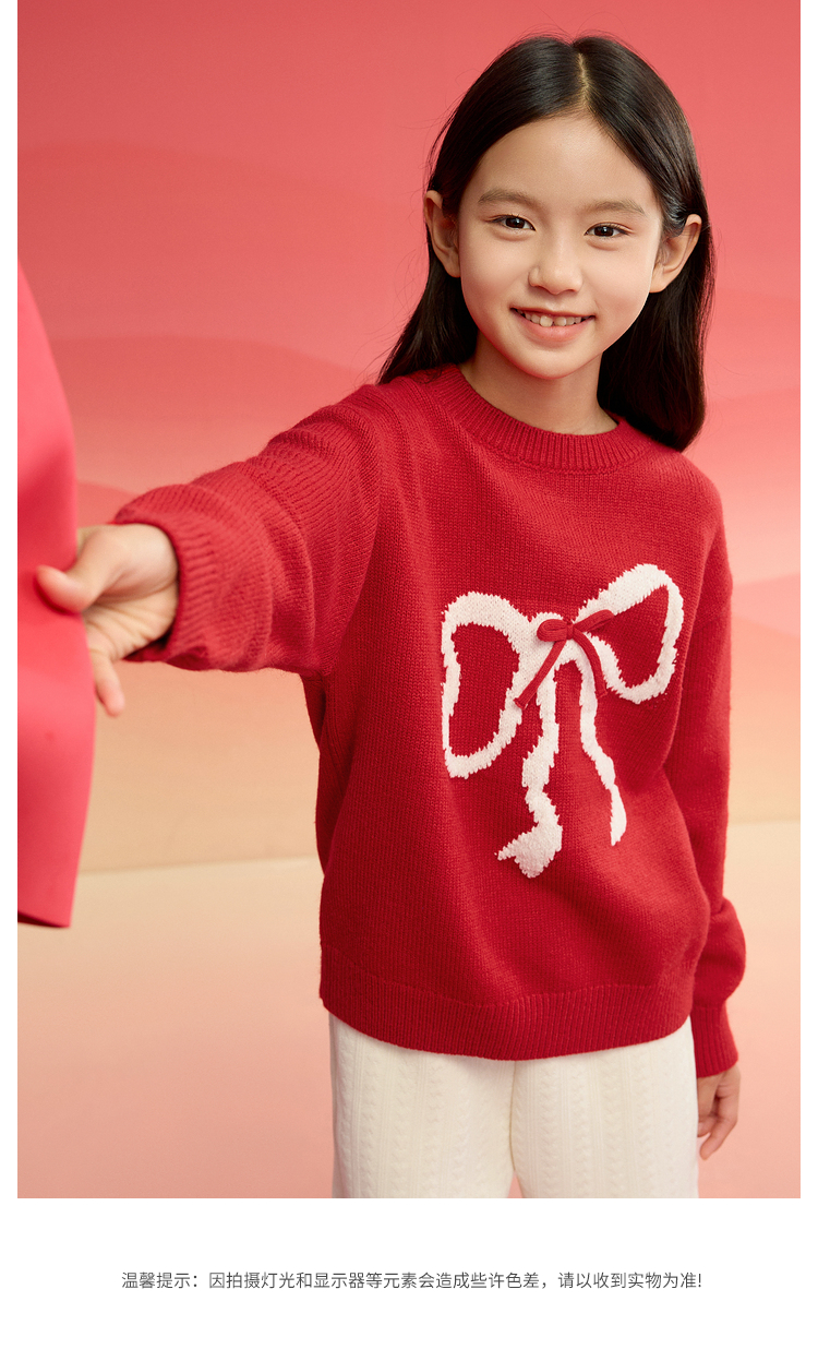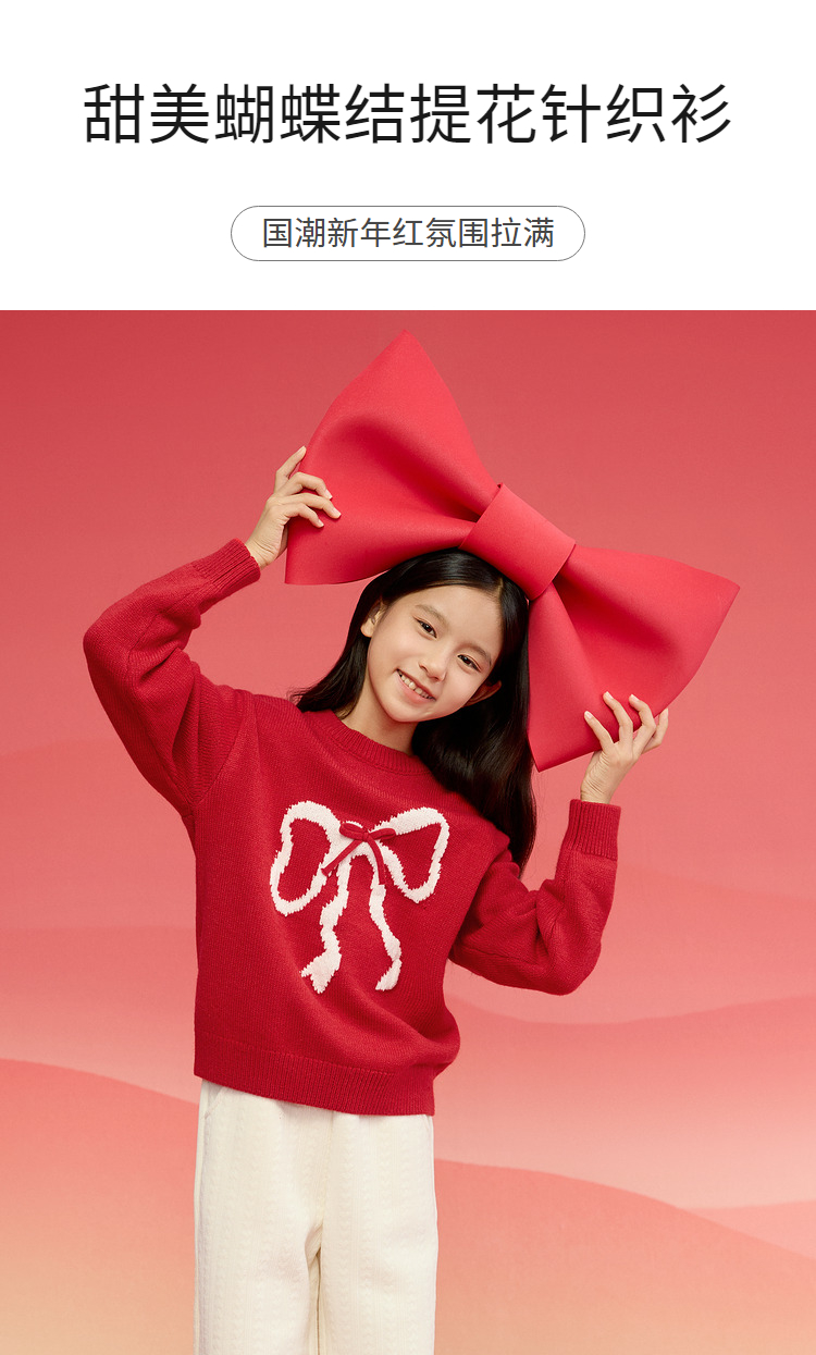 【品牌优选】巴拉巴拉童装女童毛衣儿童毛衫2025新款春装新年红色洋气针织衫潮