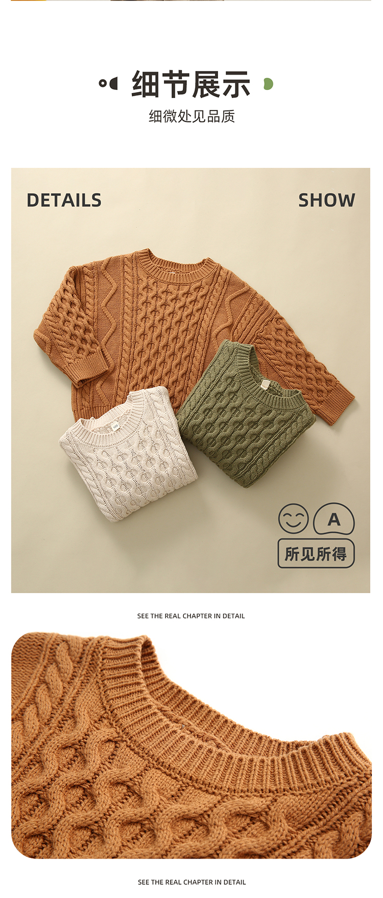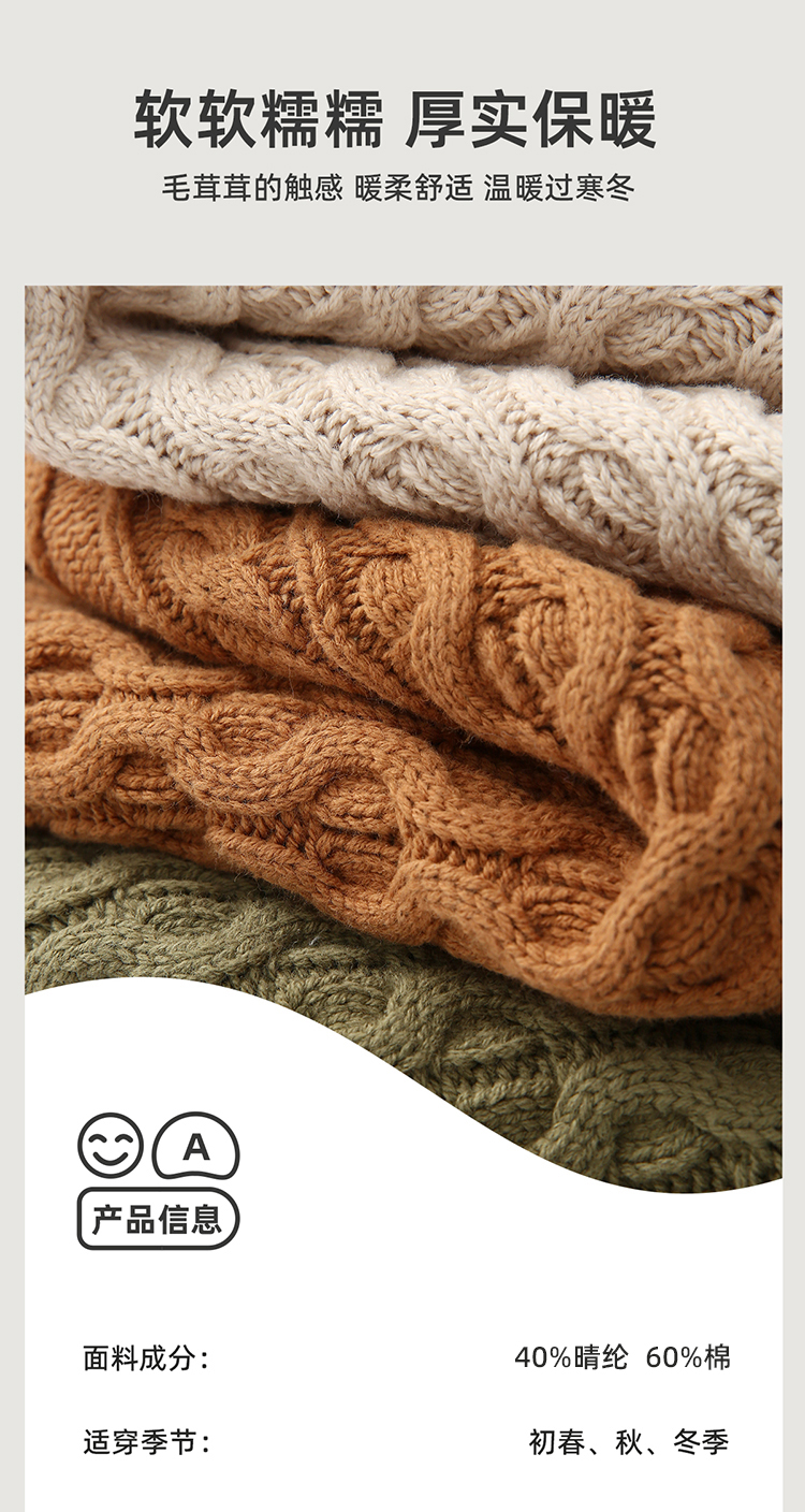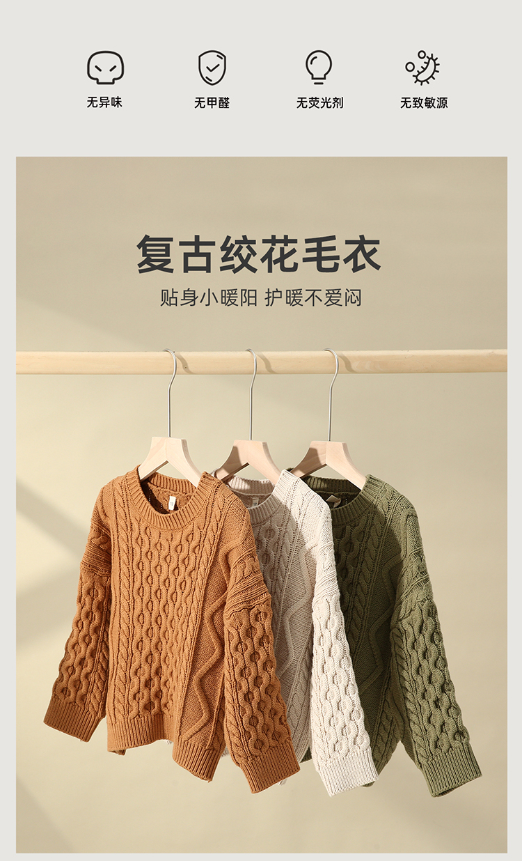 【久穿不易变形 复古文艺】圆领绞花毛衣PQMY2234