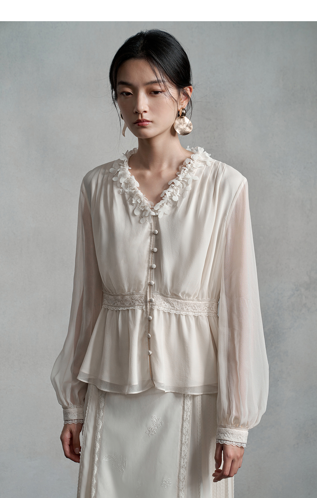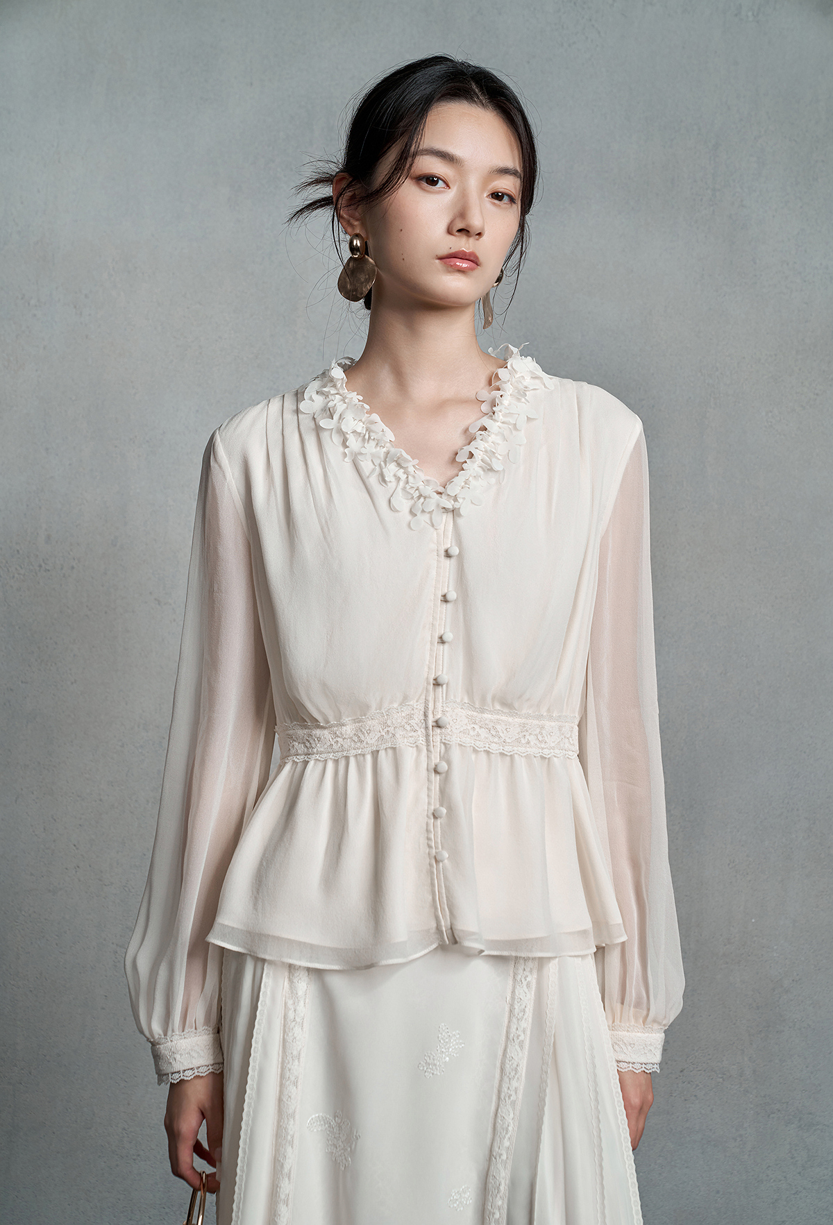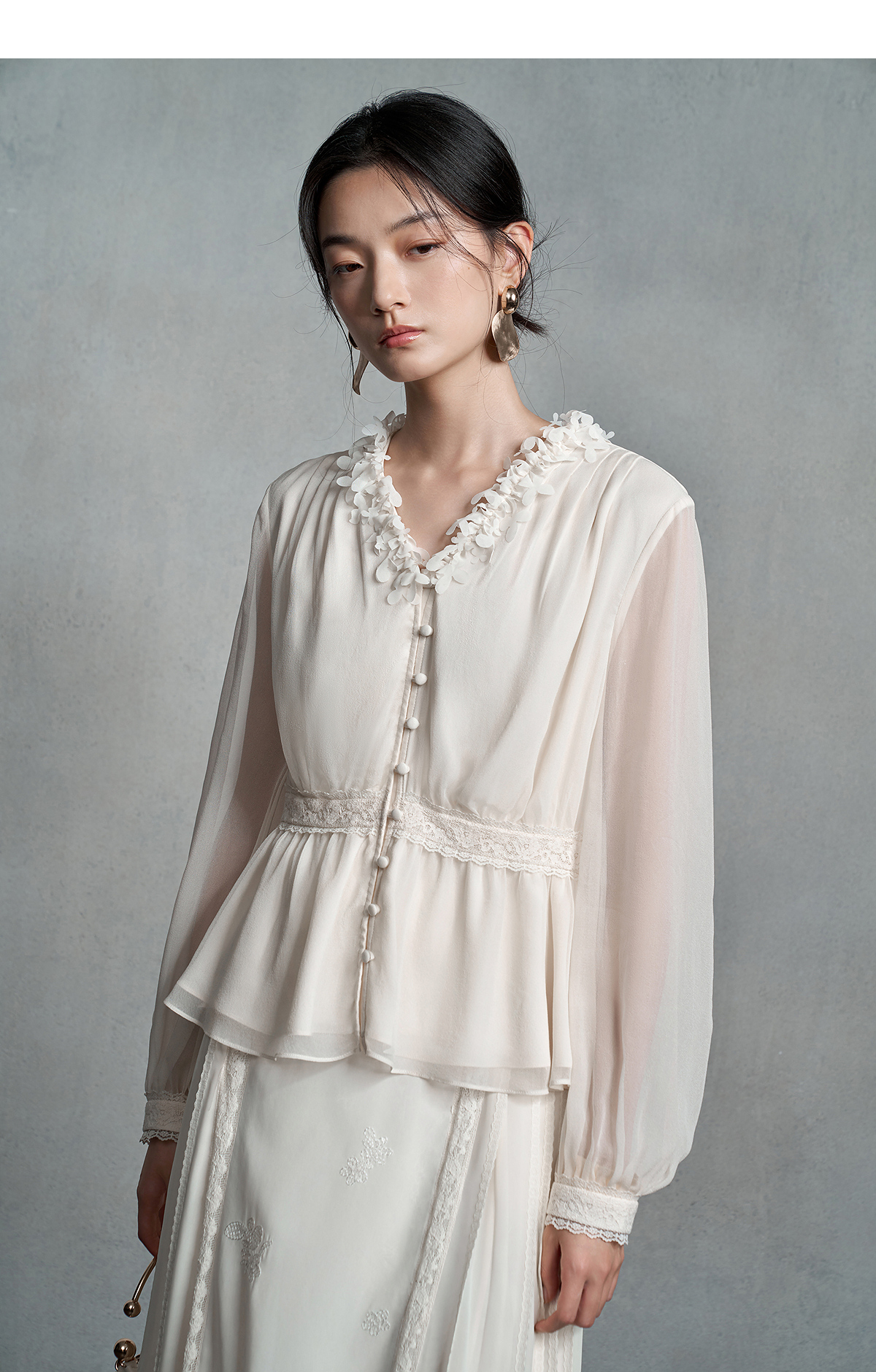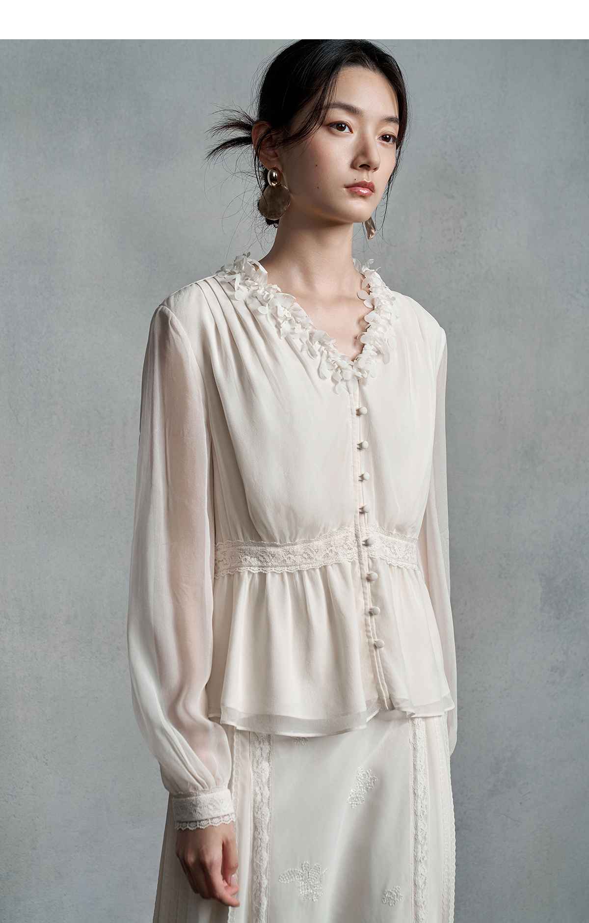 【林栖设计小店】真丝衫拼蕾丝花边优雅气质修身显瘦2025秋季新款上衣女1953048