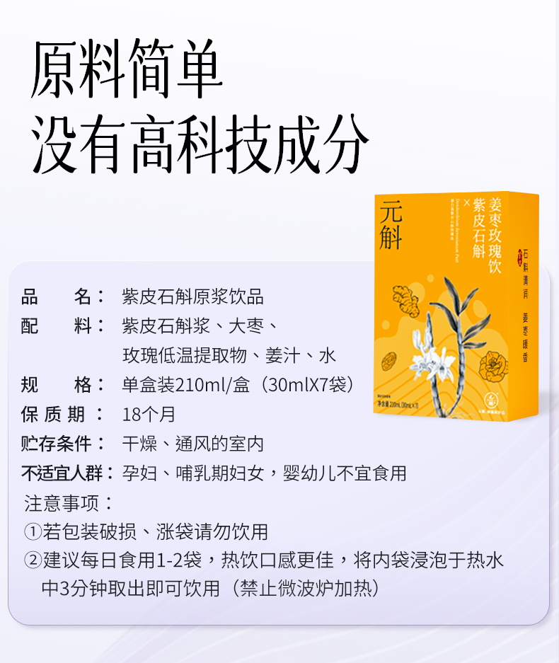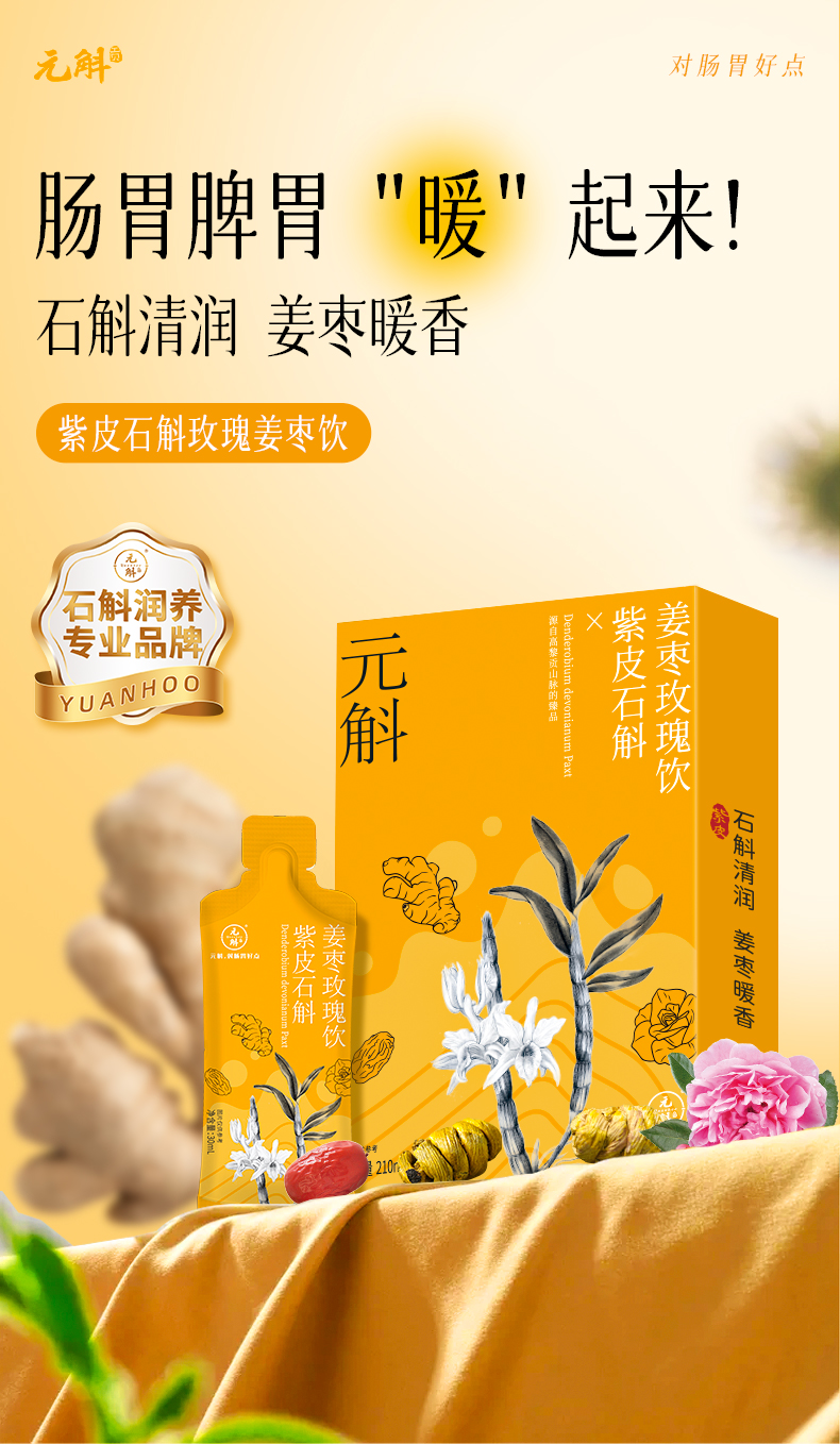 ⁴近效清仓199元/30条【元斛石斛玫瑰姜枣饮】30ml*2条*15盒 效期至26年8月 YC04-CR-SH
