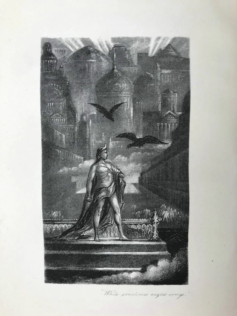 约19世纪后期 济慈诗集 5幅版画插图 漆布精装32开