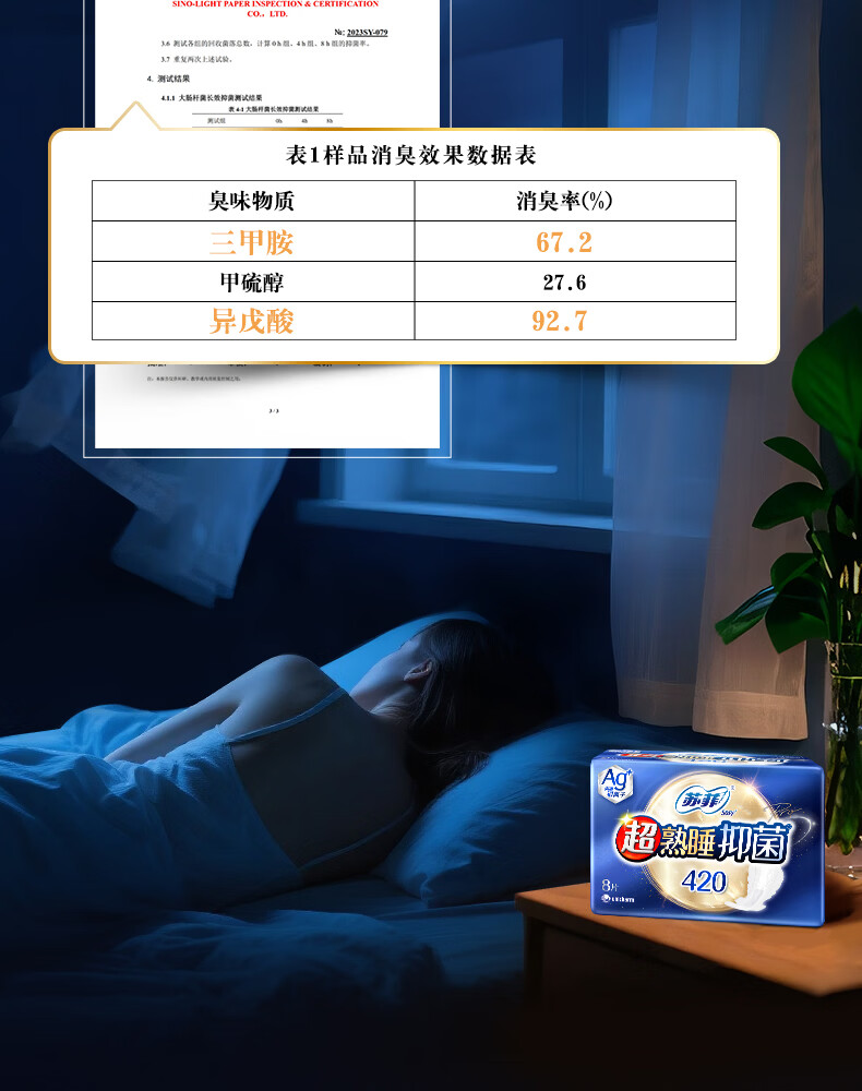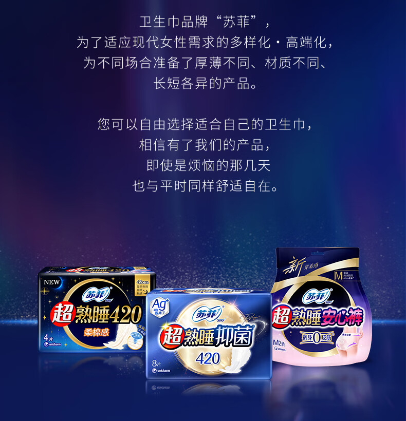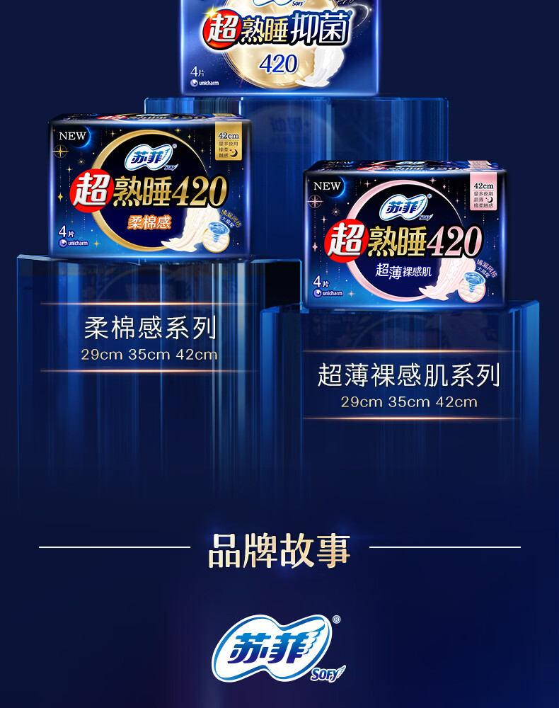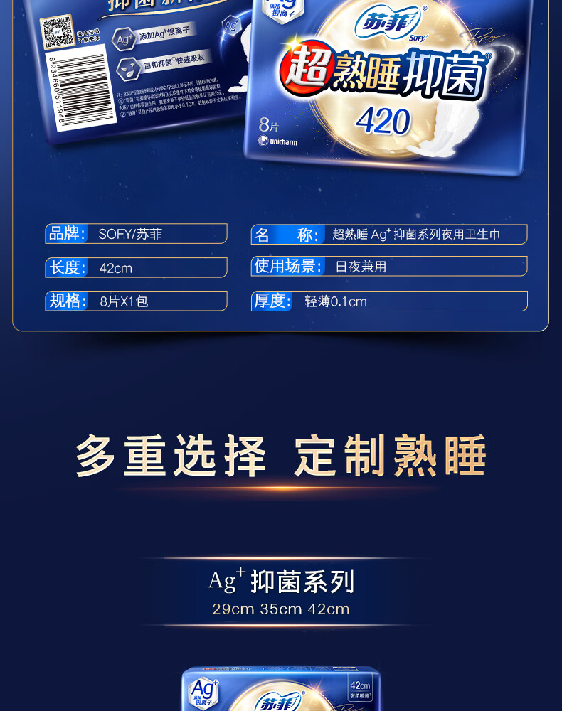 苏菲 42cm超熟睡抑菌系列极薄夜用卫生巾 8片/包