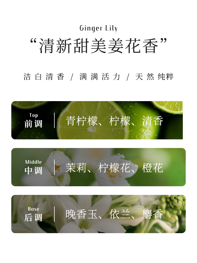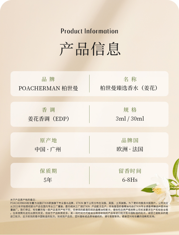 柏世曼姜花香水 天然花香调植物香氛淡雅温柔女士香水持久留香