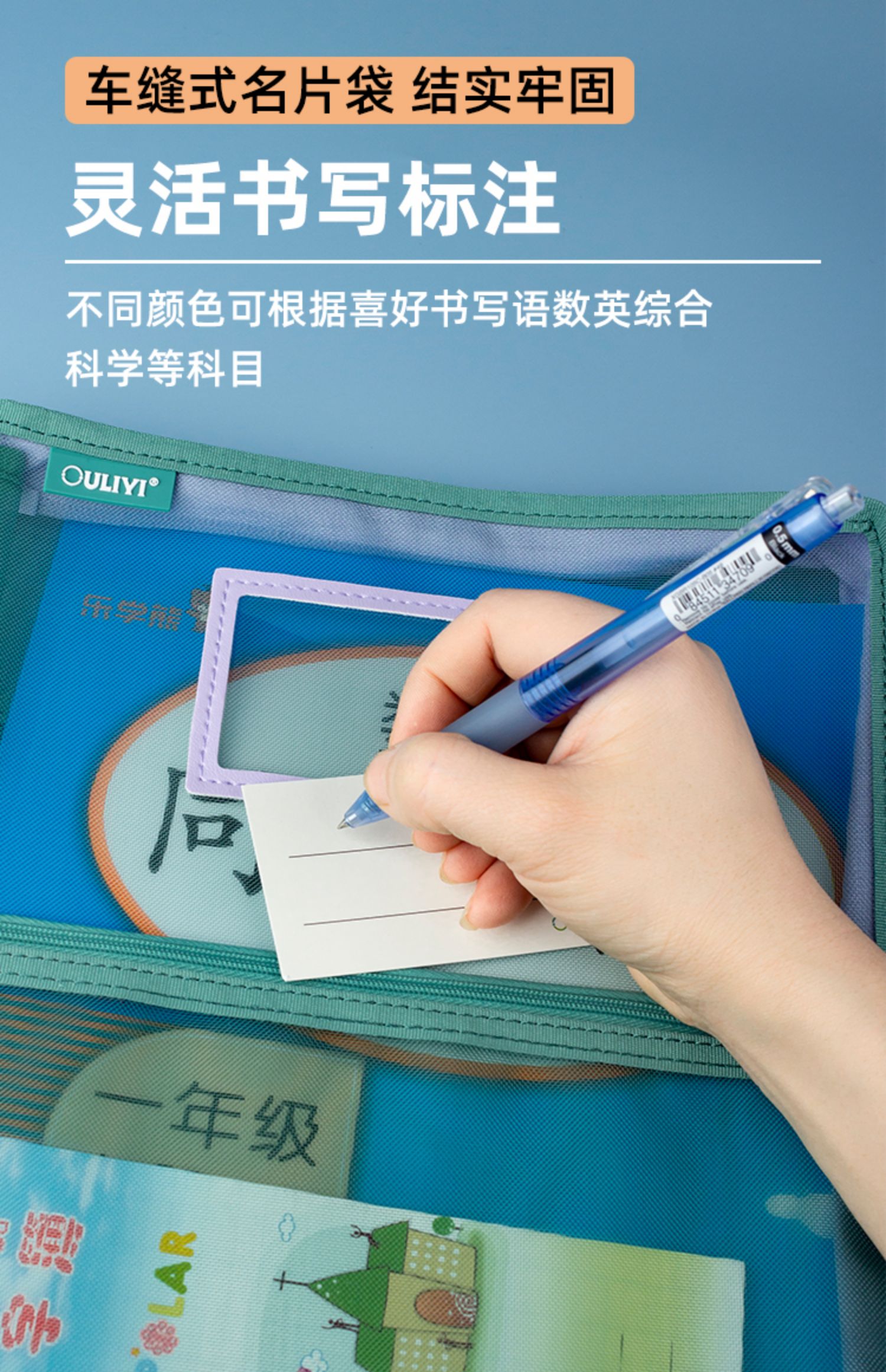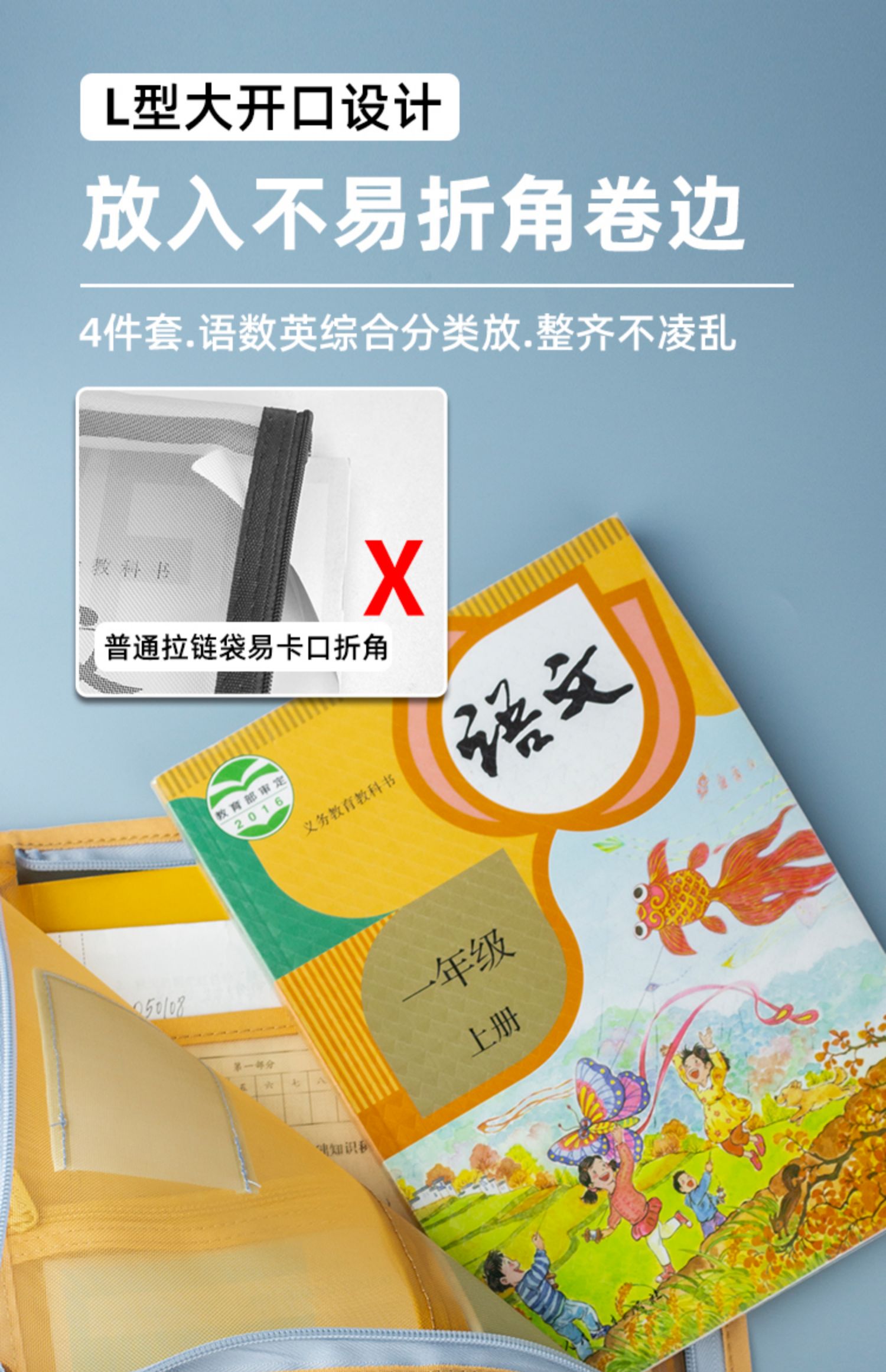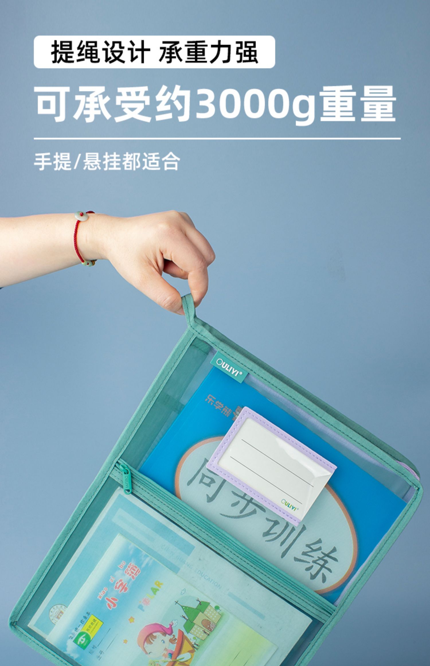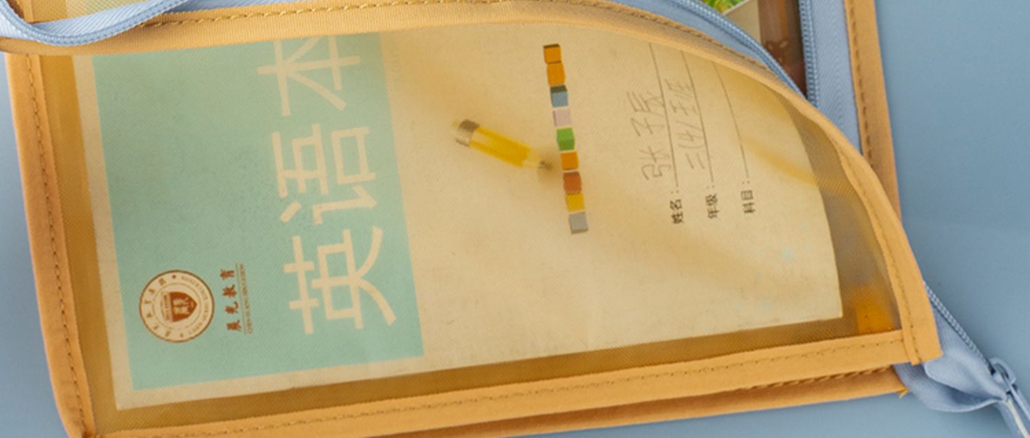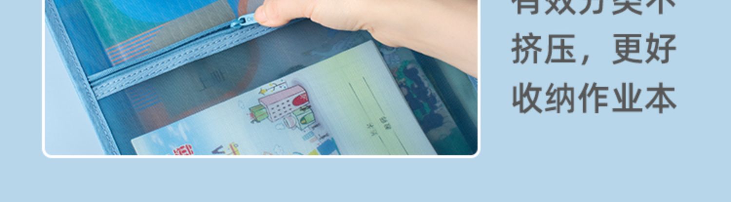 欧力益科目分类袋小学生学科收纳袋课本试卷文件袋拉链式A4透明高颜值资料袋L型三层书袋大容量手提包